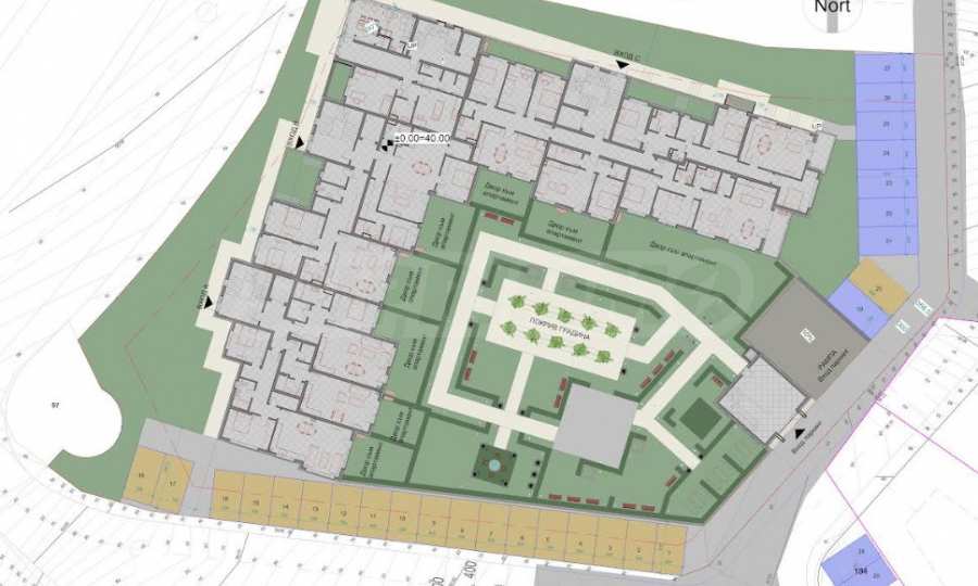 Сградата е проектирана от три входа с отделни стълбища и асансьори.