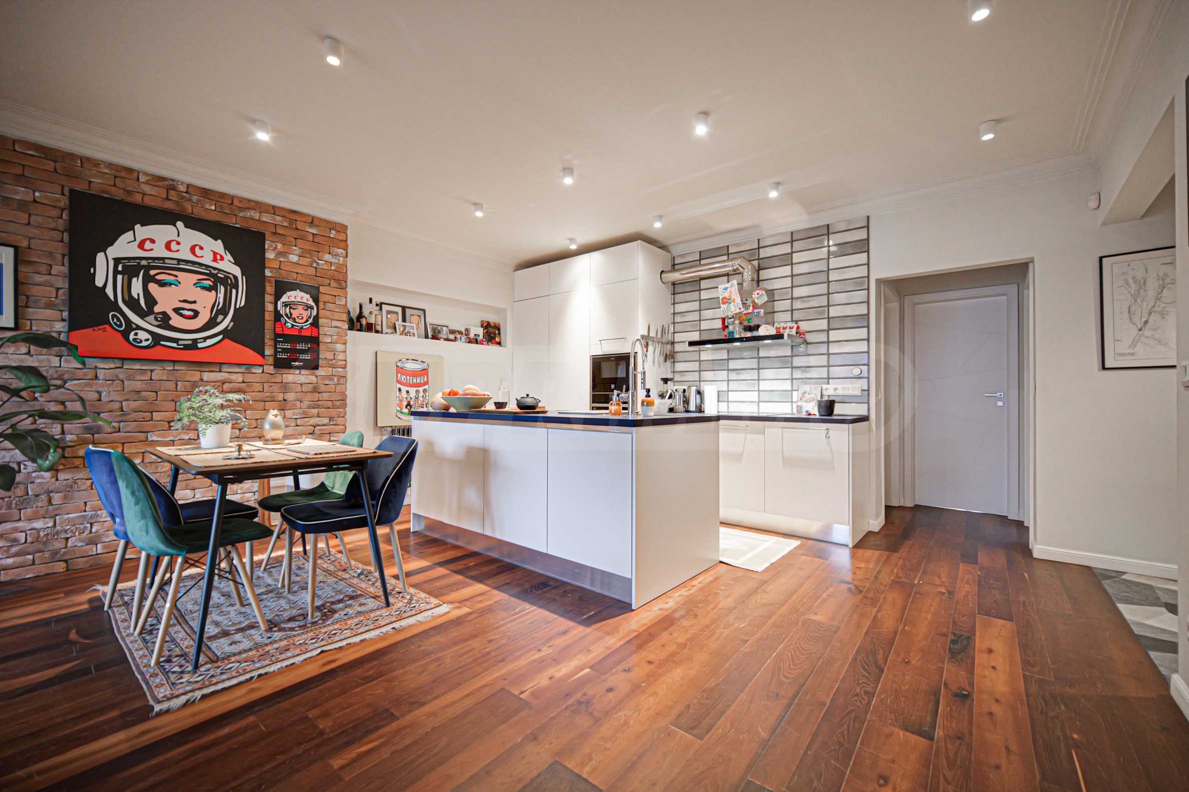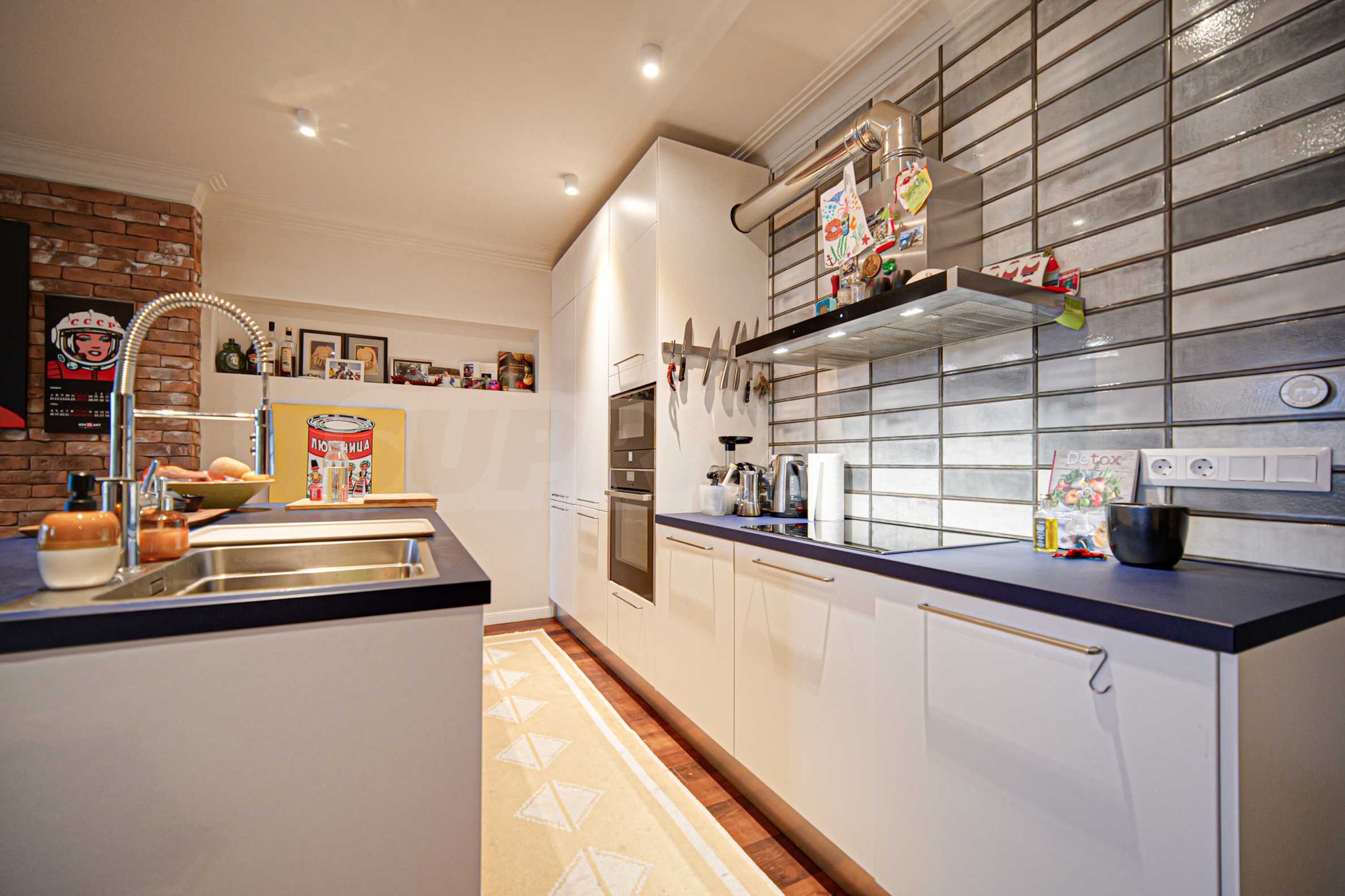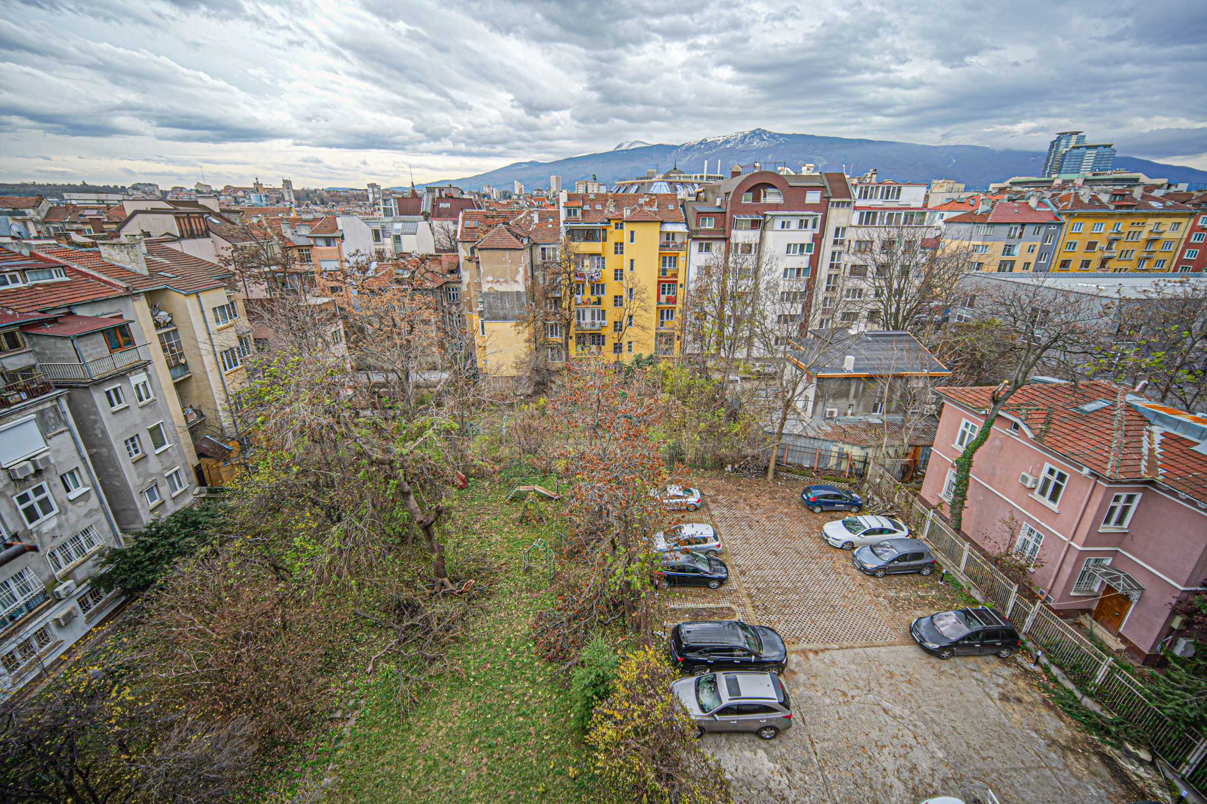 Имотът с площ от 126 кв.м е разположен на 6-и, последен жилищен етаж в сграда от 1940 г. с много добре поддържани общи части, работещ асансьор, контрол на достъпа и напълно ремонтиран покрив. Изложението на имота е юг/север.