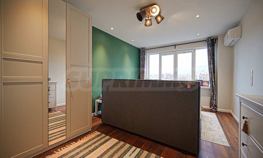 - просторна родителска спалня със собствена баня с тоалетна, която предлага панорамна гледка към планина Витоша;