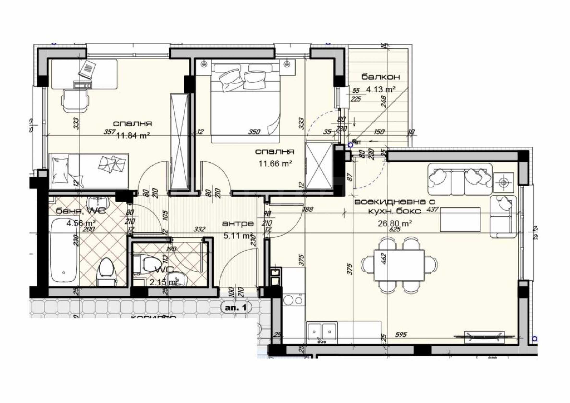 Представяме за продажба светъл тристаен апартамент в новострояща се сграда в кв. "Виница", Варна.