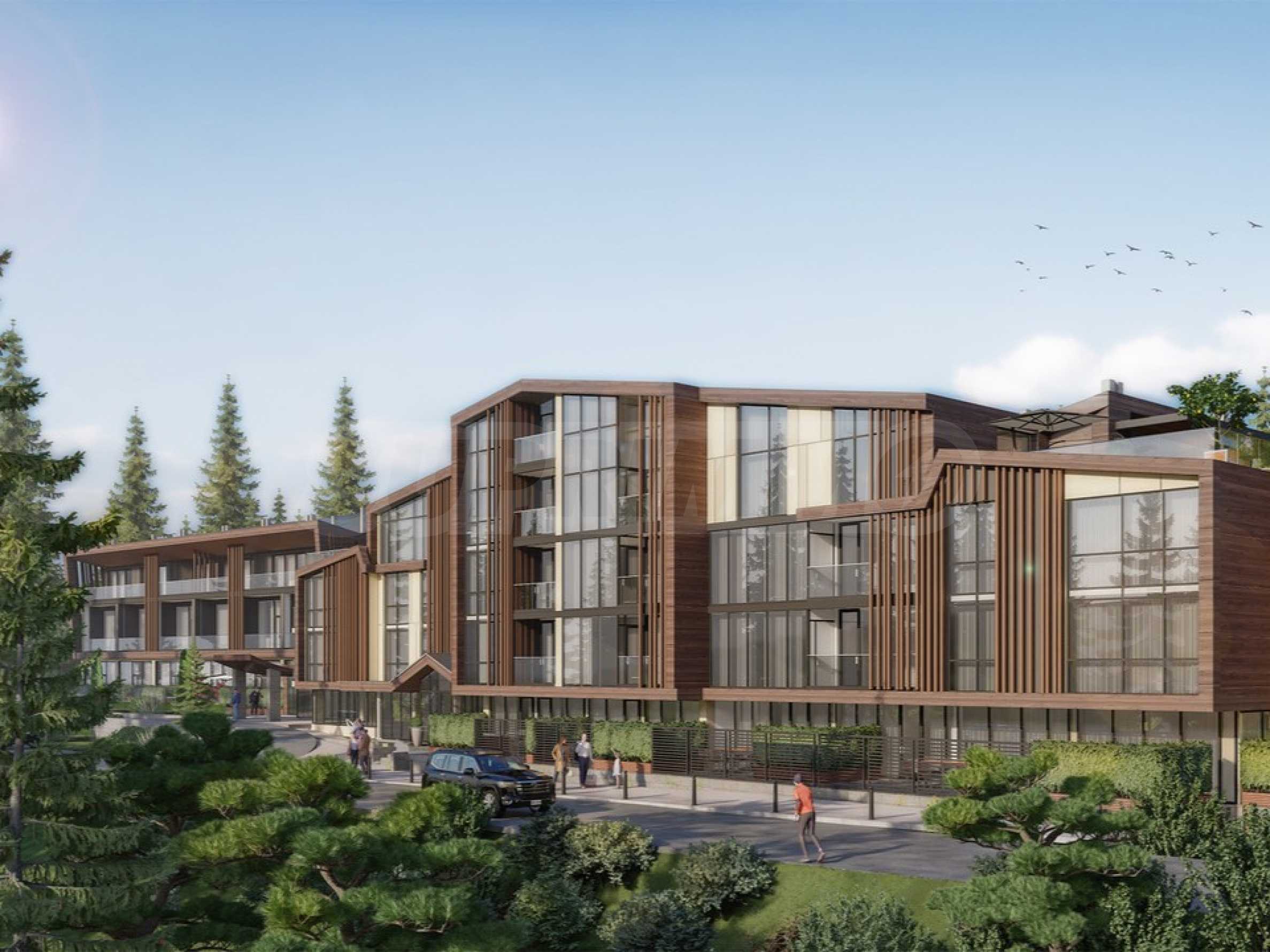 Комплексът е планиран в три секции – две жилищни сгради и ресторант между тях, който ги свързва с топла връзка. Конструктивните височини са 2.50 - 2.60 метра за сграда Б и над 3.20 метра за сграда А. Планирани са 58 жилища с възможност за обединяване - студиа и апартаменти с една, две и три спални, някои от които разполагат с градински тераси, а други са от типа мезонет. Жилищата са внимателно проектирани с цел най-комфортно обитаване, а панорамното остъкляване на сградата допринася както за изобилие от естествена светлина, така и за прекрасни изгледи към спиращата дъха природна красота.