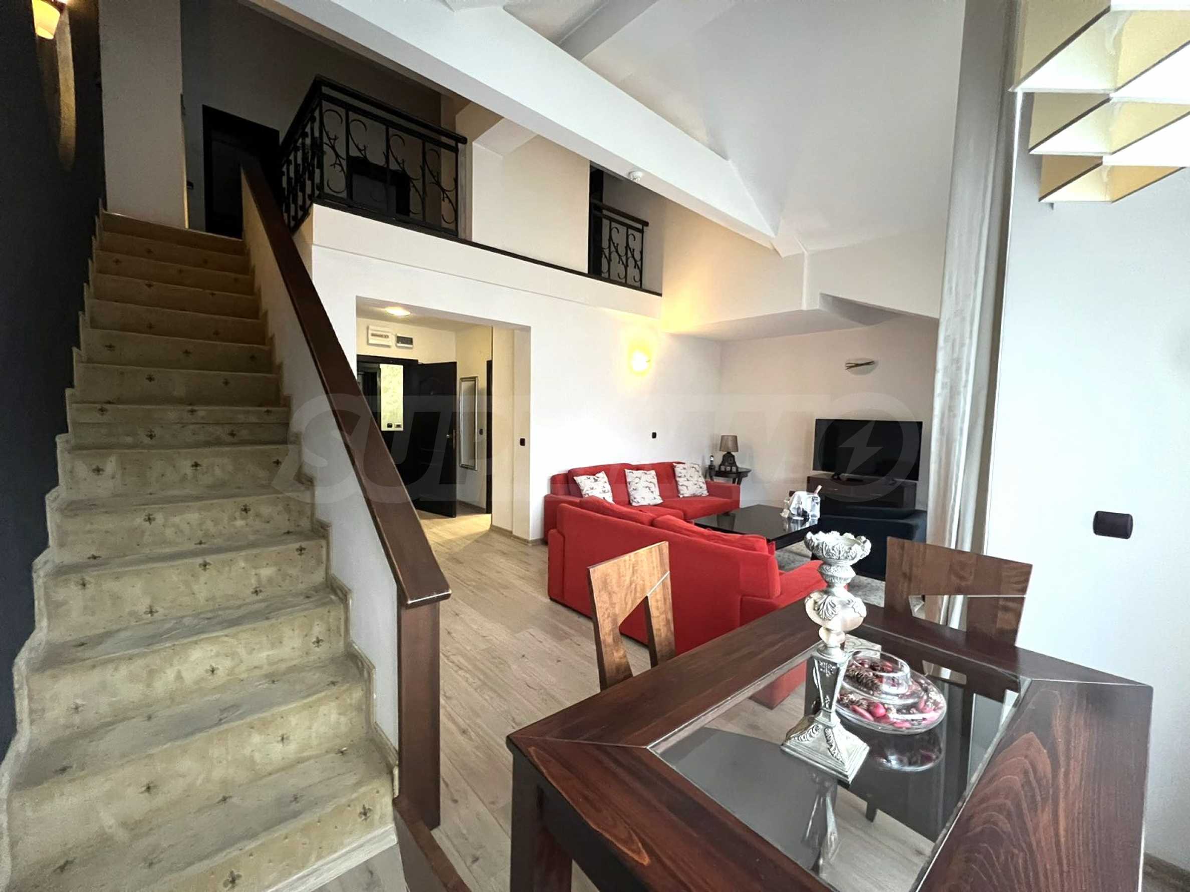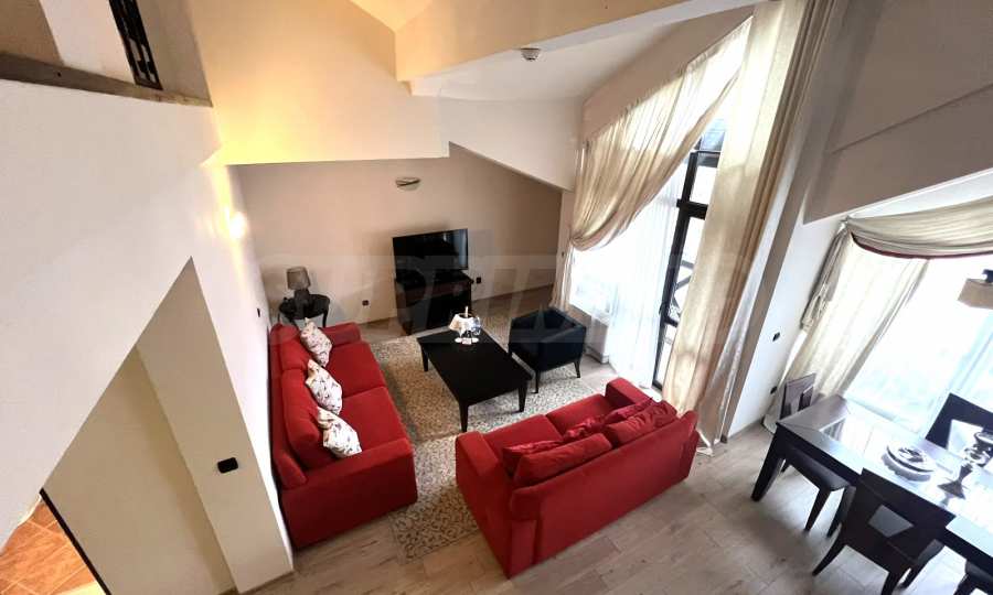 - На първо ниво: просторен хол, маса за хранене, балкон, просторна баня с вана;