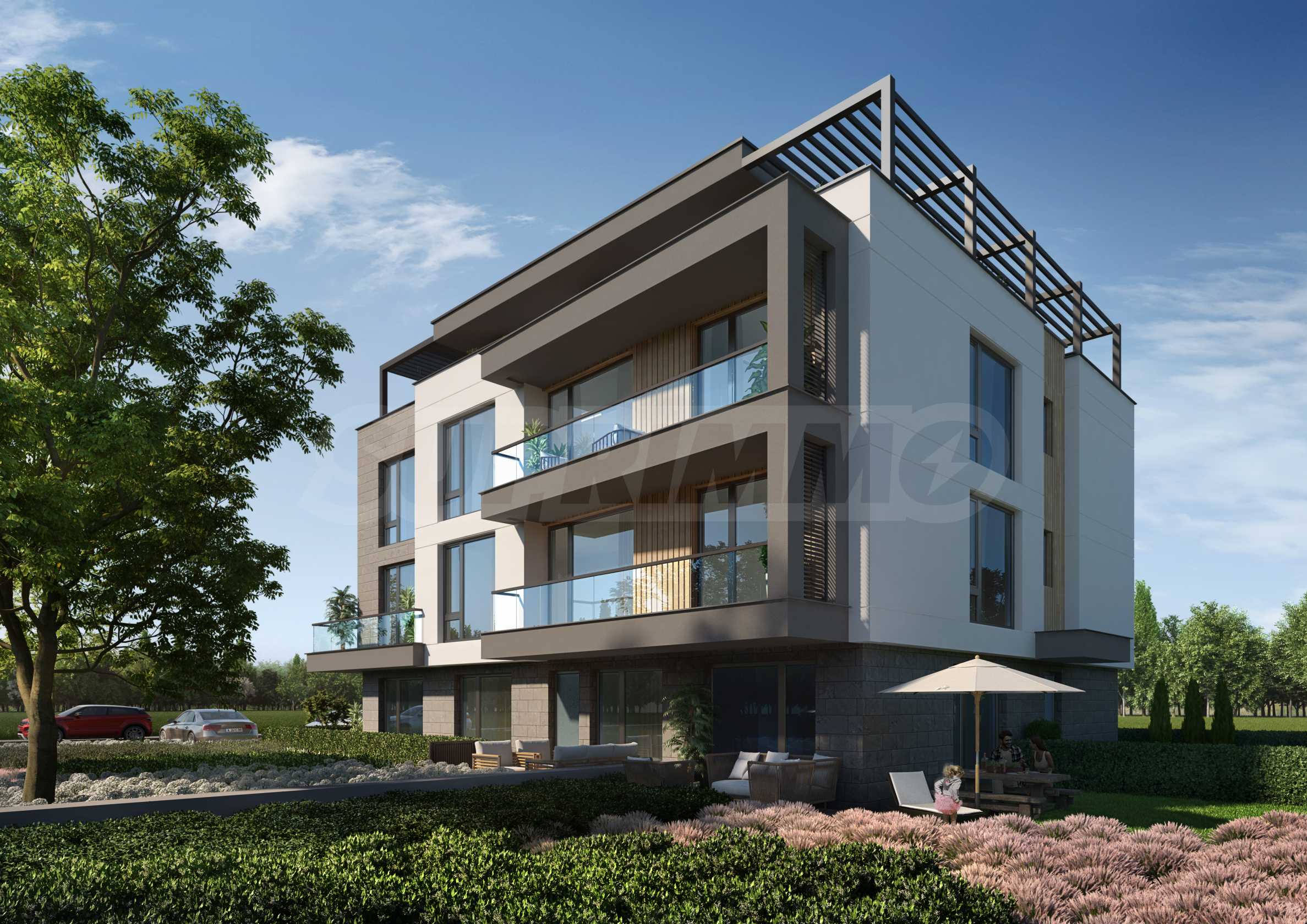 Сградата е разпределена на 4 етажа с общо 13 апартамента с функционални разпределения. Има избор от едностайни, двустайни и един тристаен апартамент за продажба. Имотите на ниво партер разполагат със собствен двор.