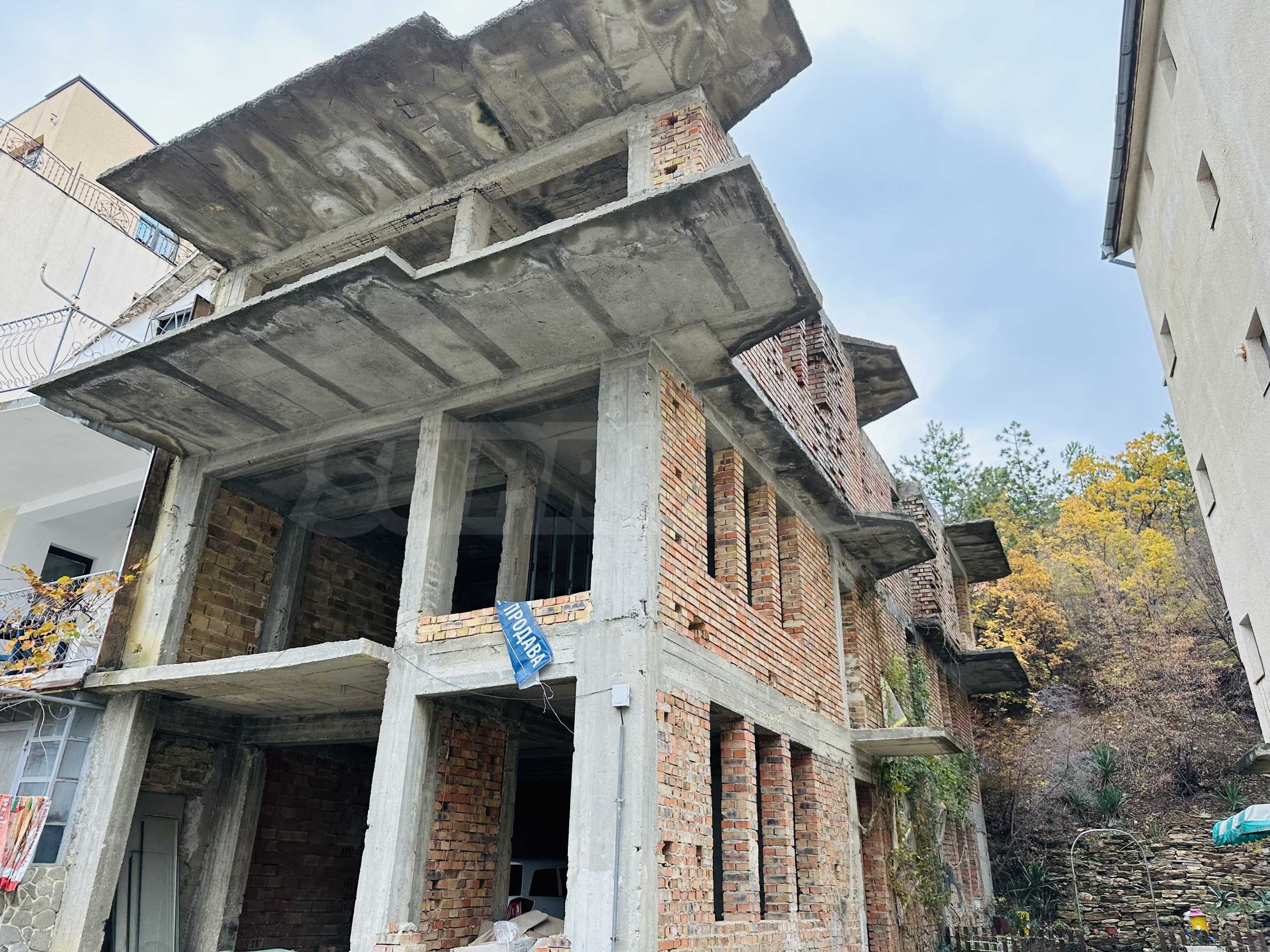 Предлагаме за продажба триетажна къща на груб строеж във ваканционно селище „ Свети Влас“. Имотът е разположен в парцел 211 кв.м и с РЗП 315 кв.м.с по 105 кв.м на всеки. Къщата се намира във високата част на населеното място. Над парцела започва гора. Има възможност за дострояване на още един етаж плюс мансарда.
