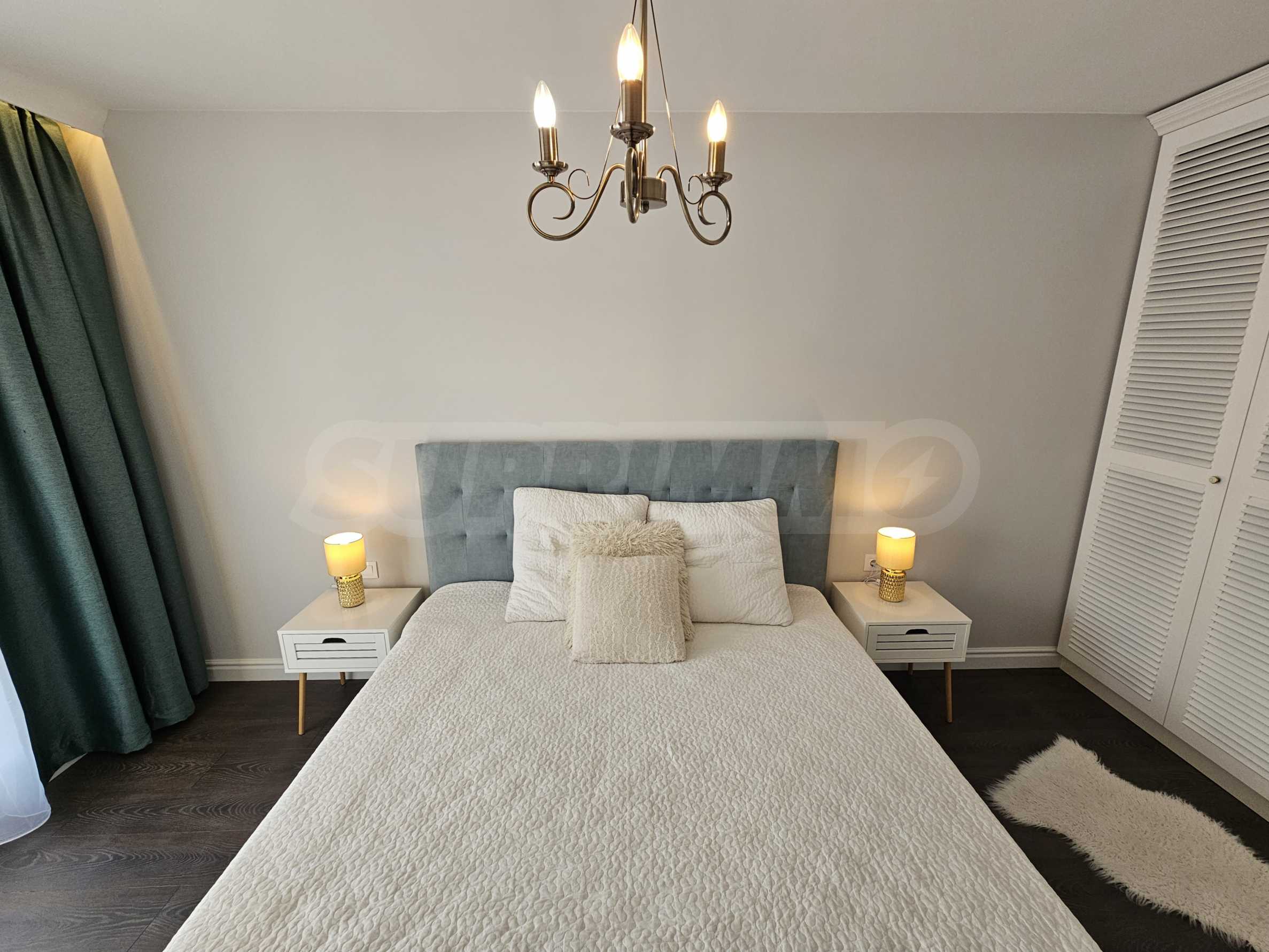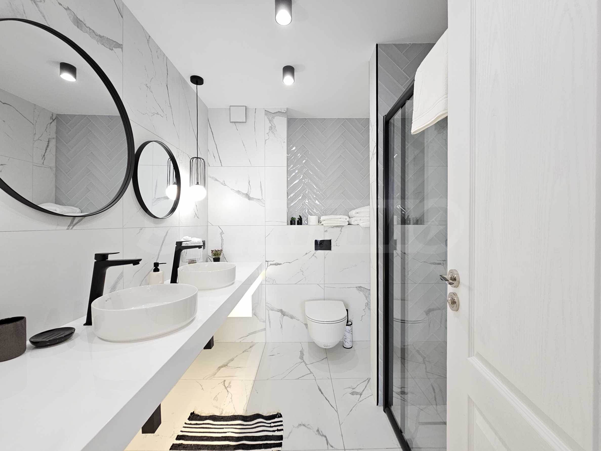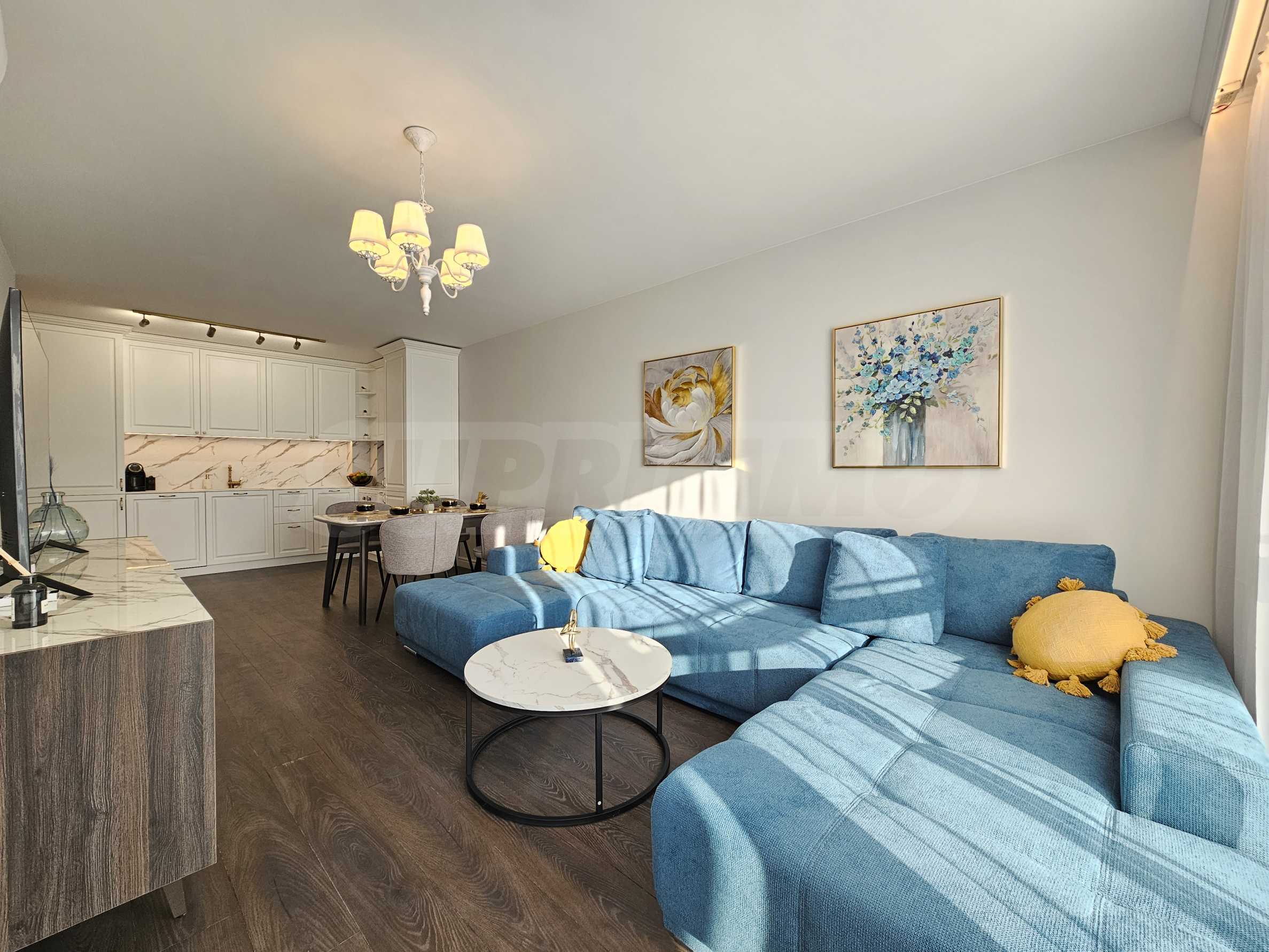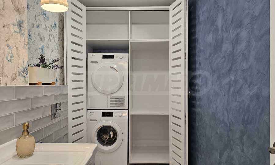 Обзавеждането на апартамента е от висок клас, предоставяйки елегантност и функционалност, включва продукти от известните марки Miele и Bosch, които гарантират качество и дълготрайност.