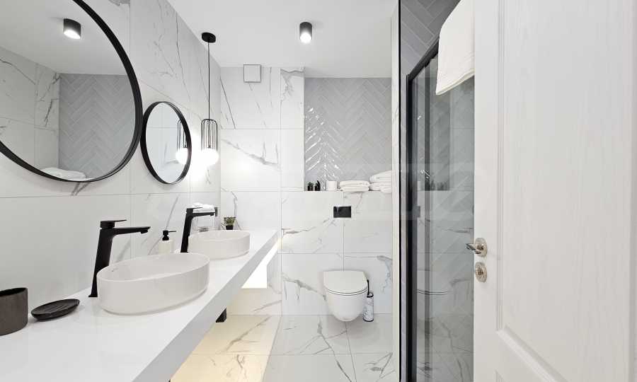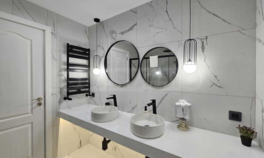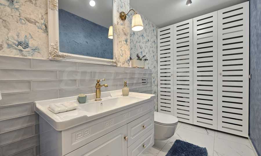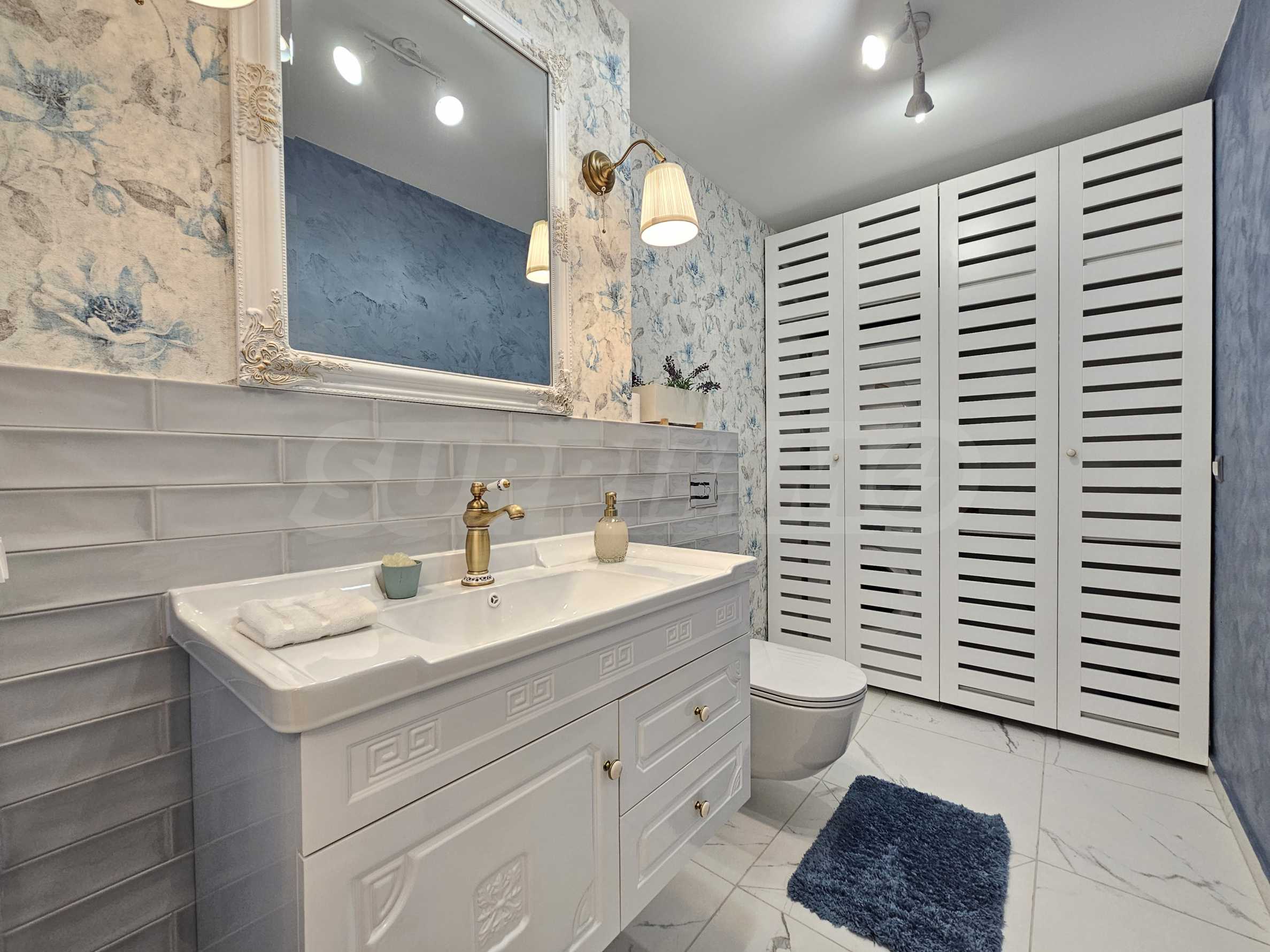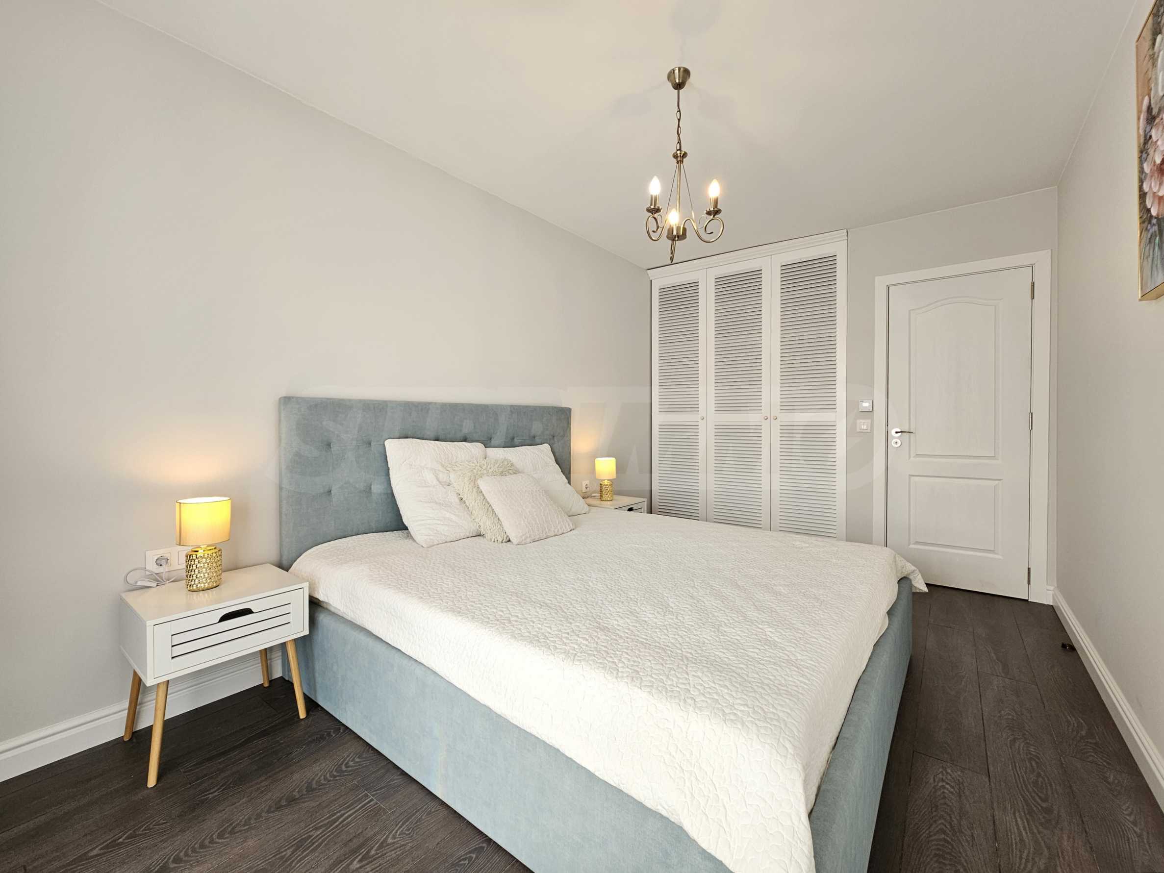 Обзавеждането на апартамента е от висок клас, предоставяйки елегантност и функционалност, включва продукти от известните марки Miele и Bosch, които гарантират качество и дълготрайност.