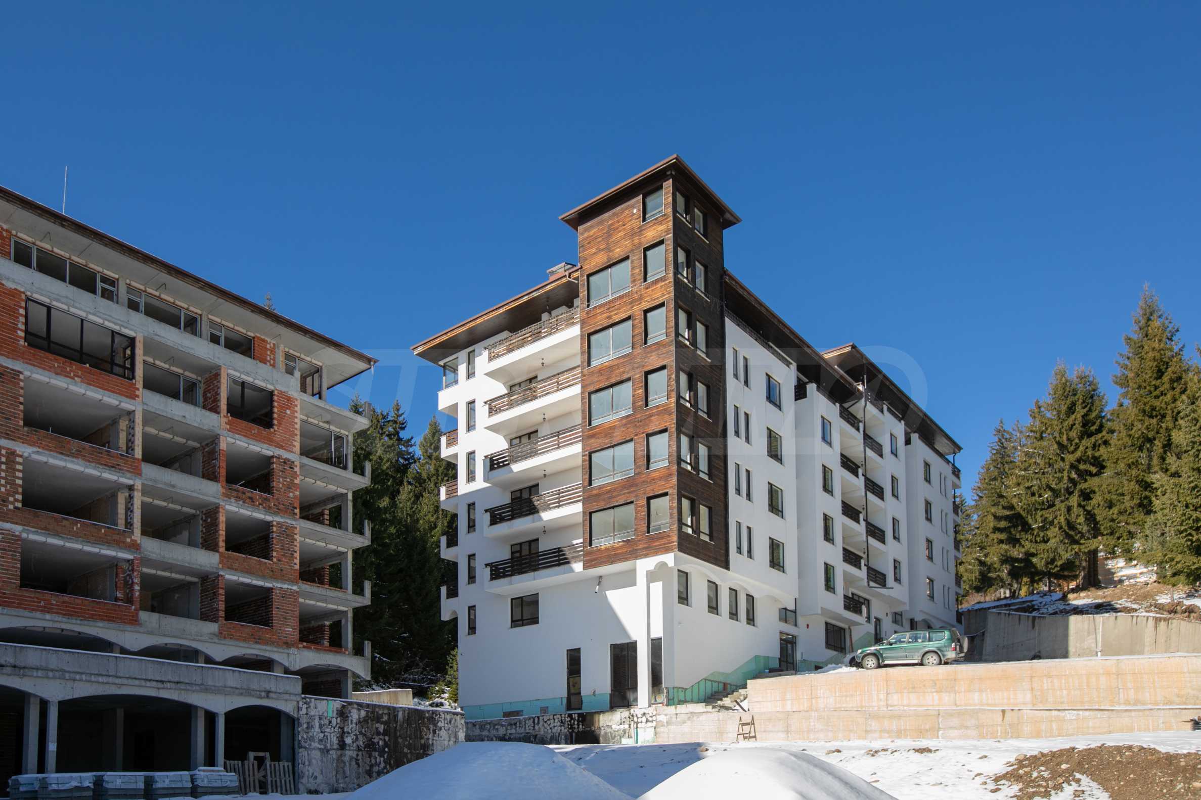 - Територията е с изобилие от зеленина и места за отдих за собствениците и техните гости. СПА центърът в хотелската част ще предложи релаксиращи преживявания, които укрепват организма и незабравима почивка в планината.
