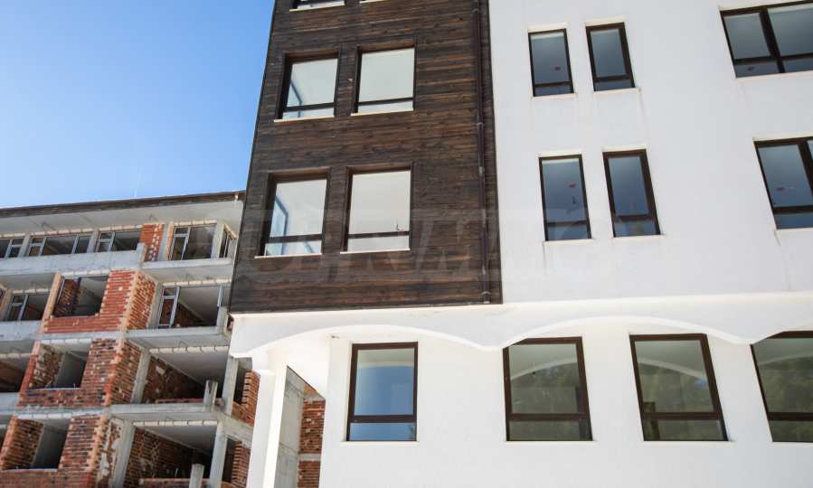 Сградите са в характерен за района архитектурен стил, с дървената обшивка по фасада и каменната облицовка в ниската част по сградите. Всеки вход е с асансьор и стилно завършени общи части. Имотите са в тъмна PVC дограма с високо топлоизолационно качество, в дървен тон в хармония с природата и в контраст с бялата фасада, покрита със силиконова структурна мазилка.