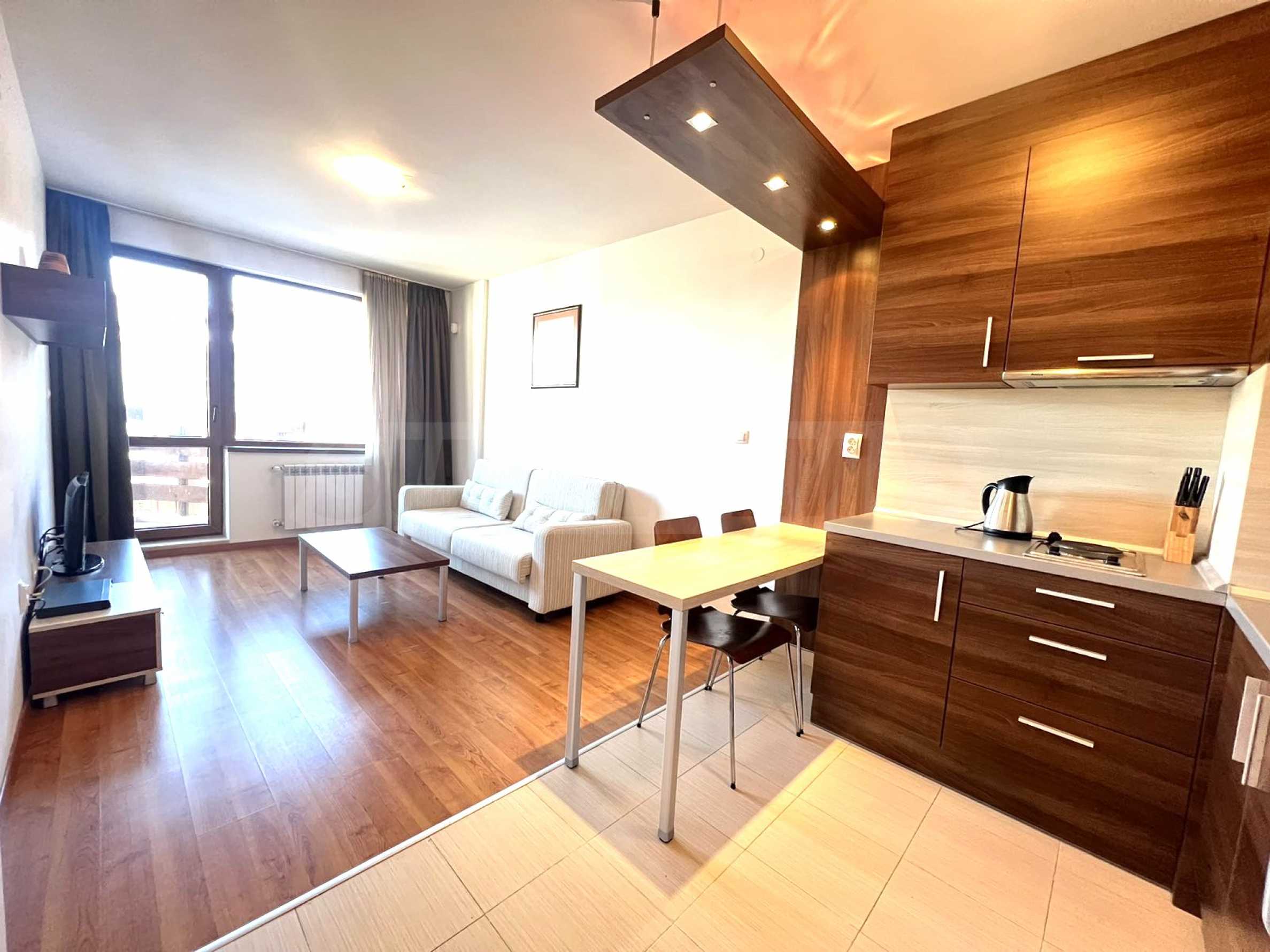 Представяме напълно обзаведен двустаен апартамент за продажба в комплекс „Белведерере Холидей Клуб”.