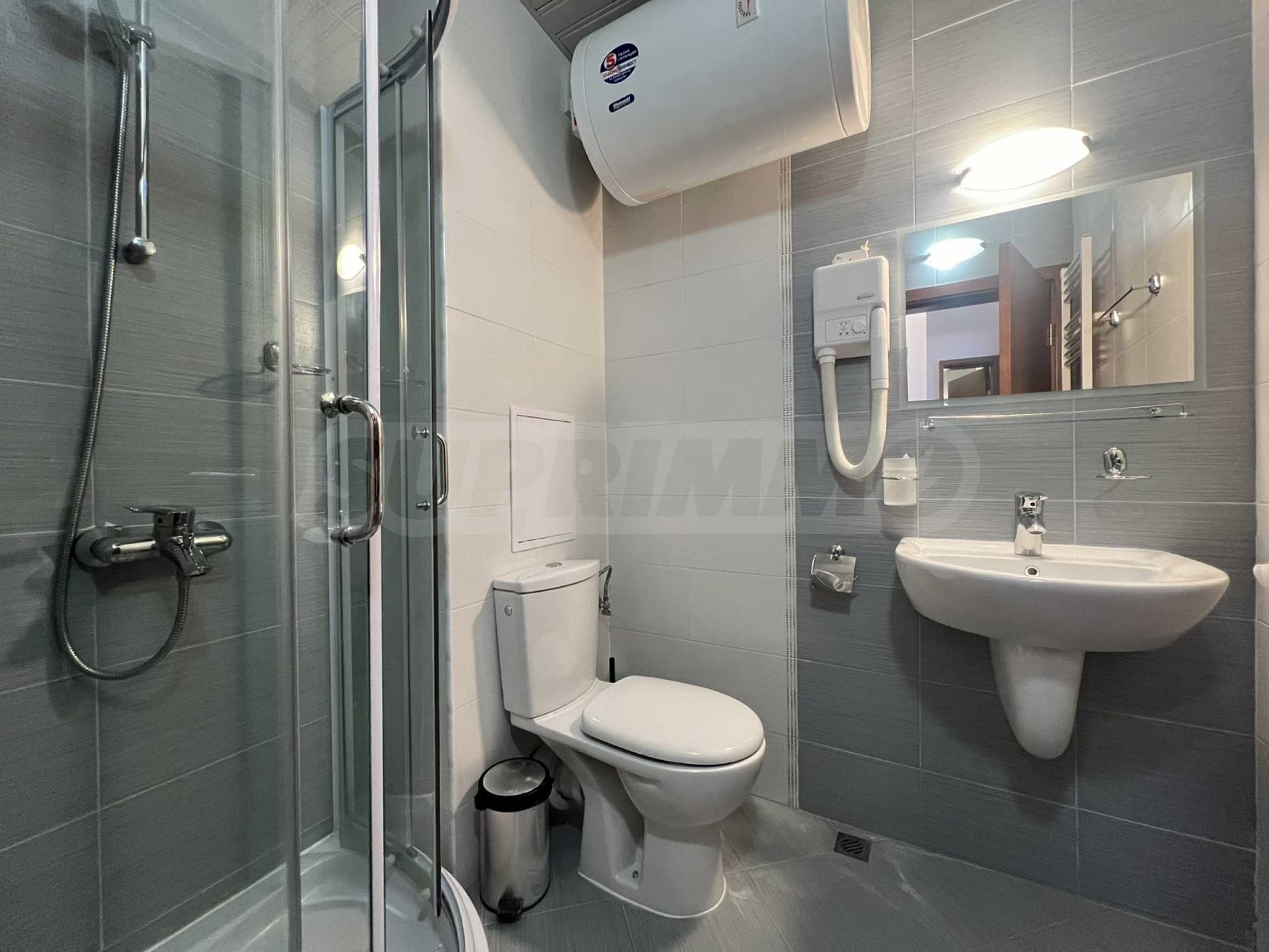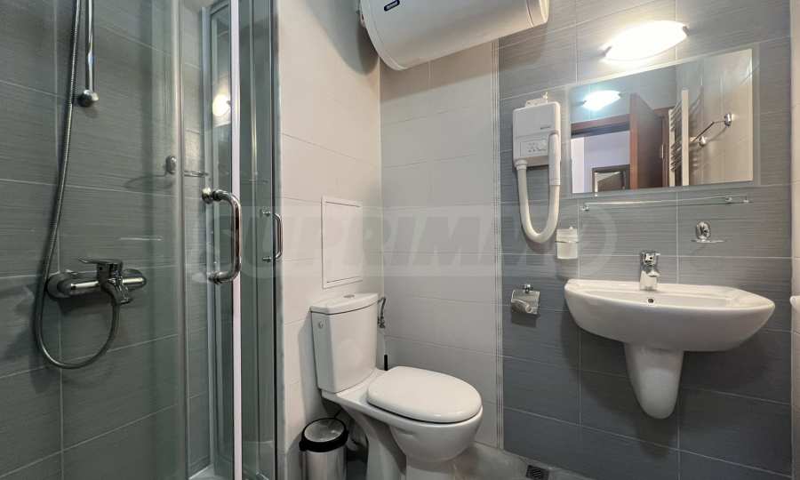 Баня - обзаведена с душ-кабина, мивка с огледало, тоалетна и бойлер;
