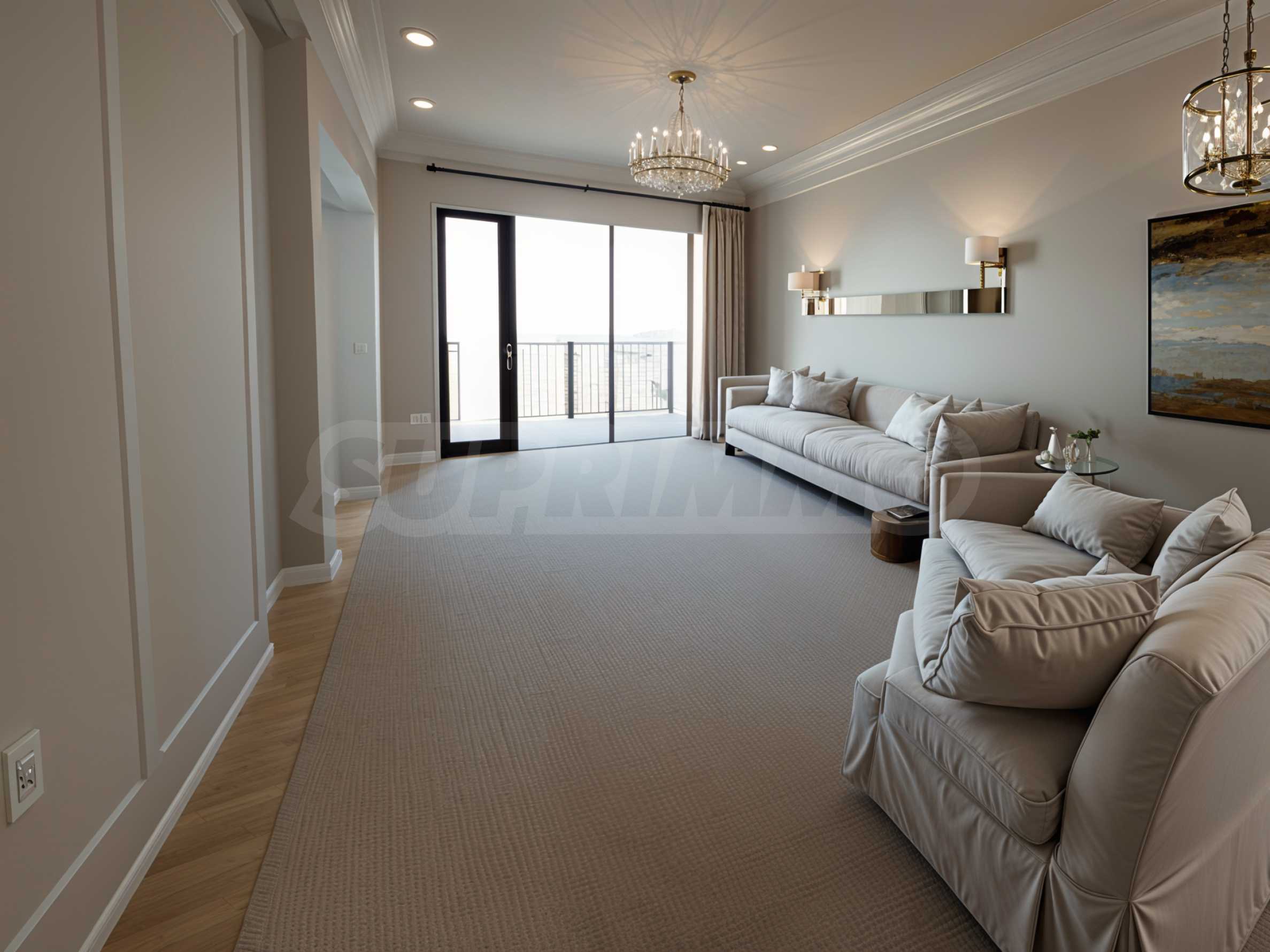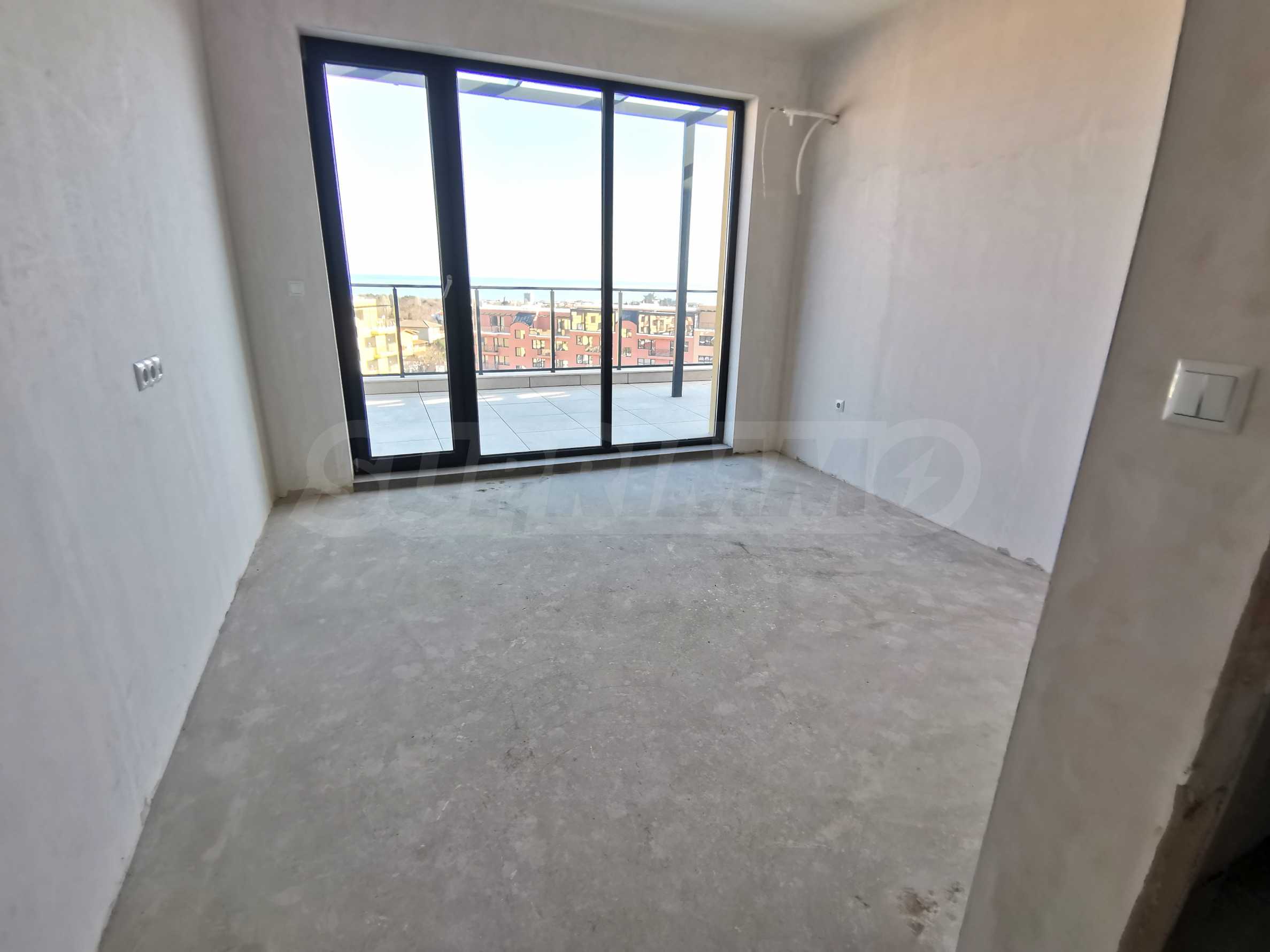 Имотът е с обща площ от 126.33 кв.м, разположен на 4-и етаж с нескриваема гледка към морето.