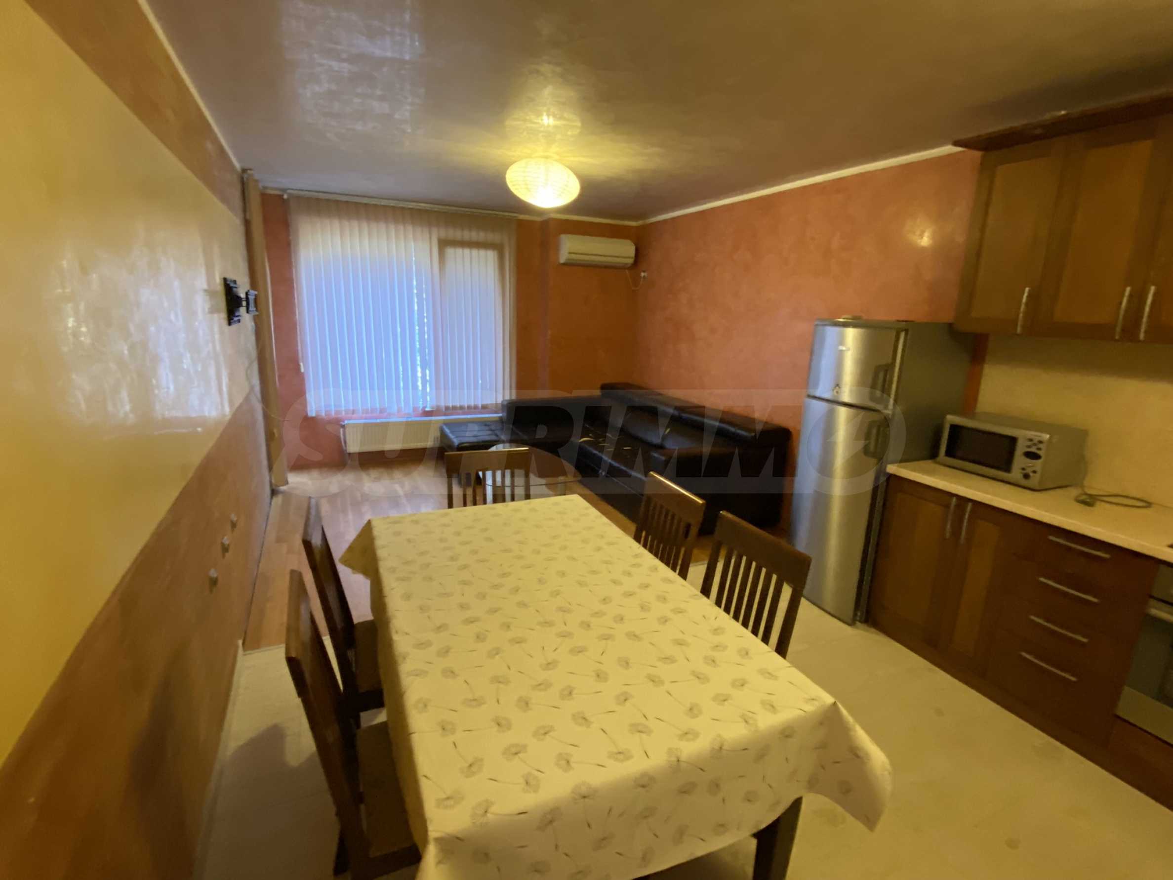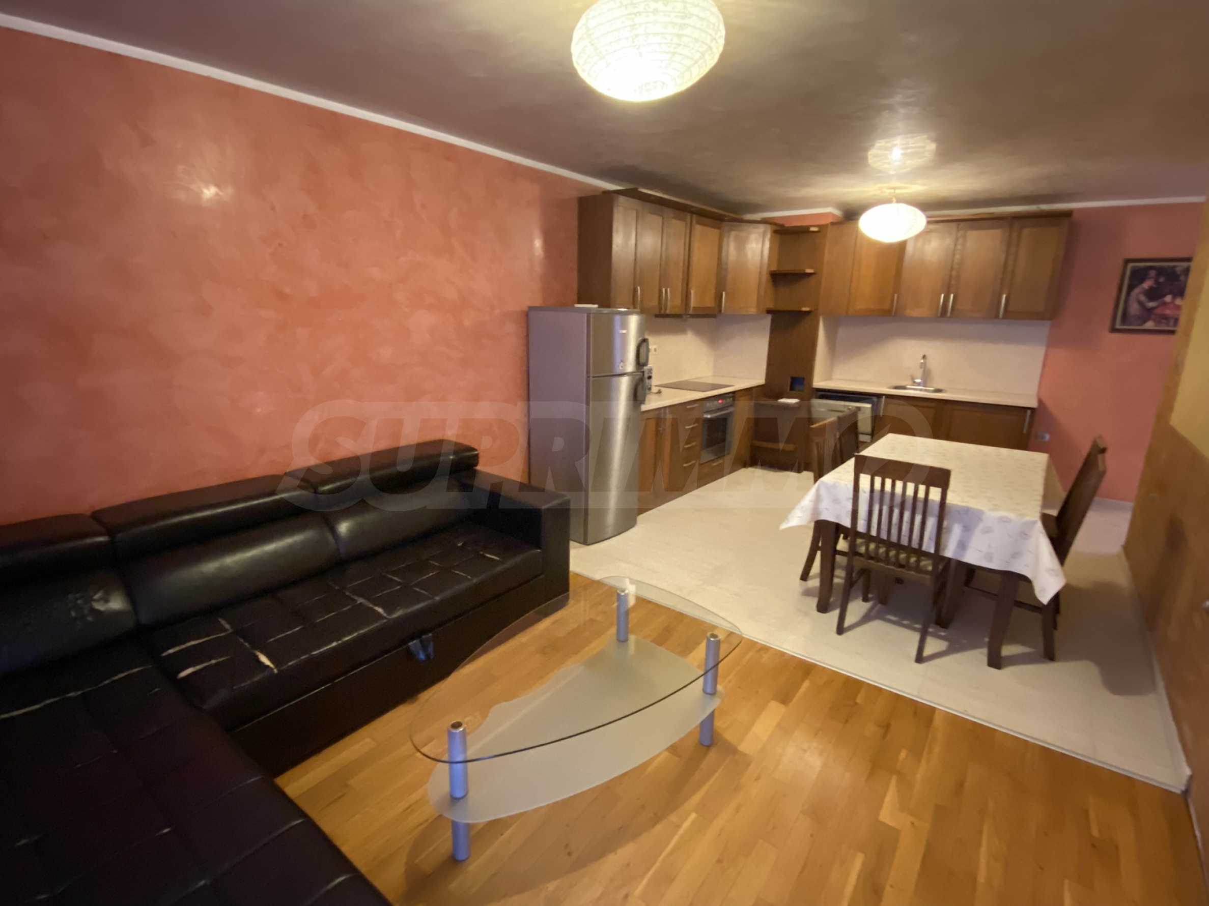 Апартаментът се намира в нова кооперация на първи висок етаж. Площта от 70 кв.м се разпределя между кухненски бокс с трапезария и дневна, две спални, баня с тоалетна и тераса. Жилището се продава напълно обзаведено и оборудвано.