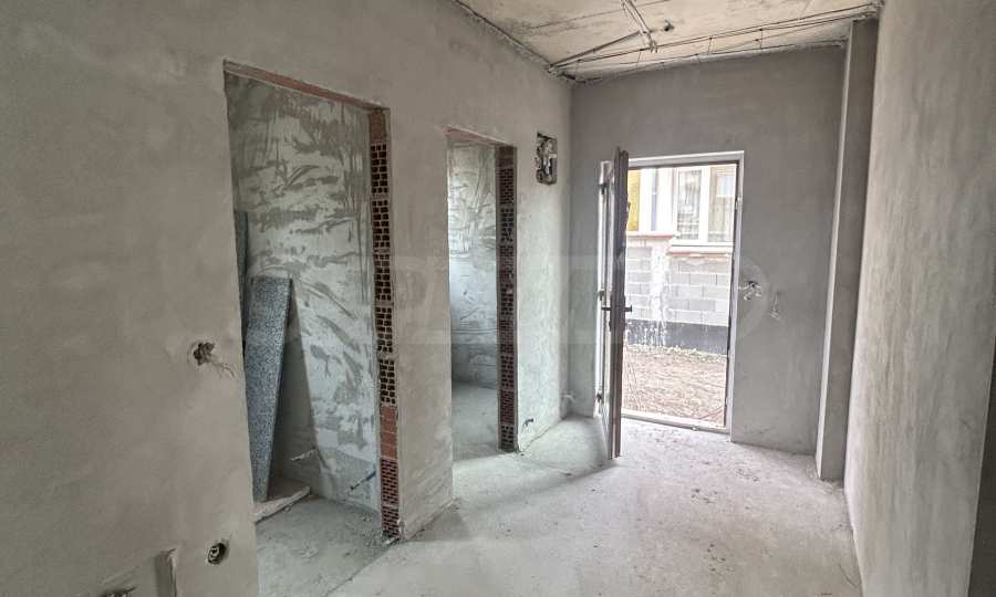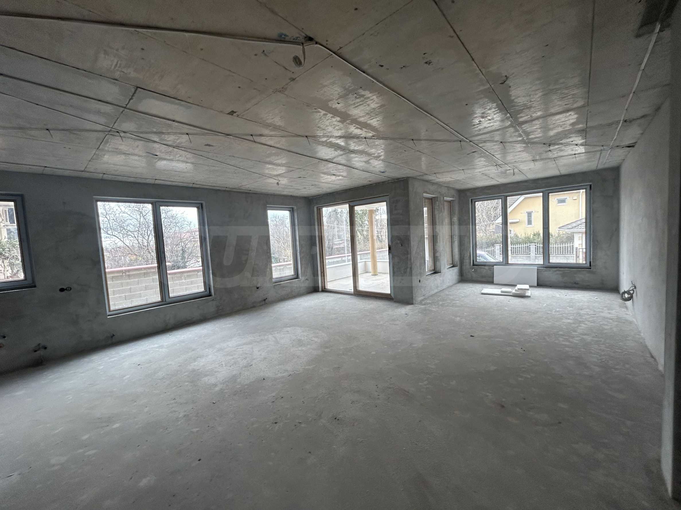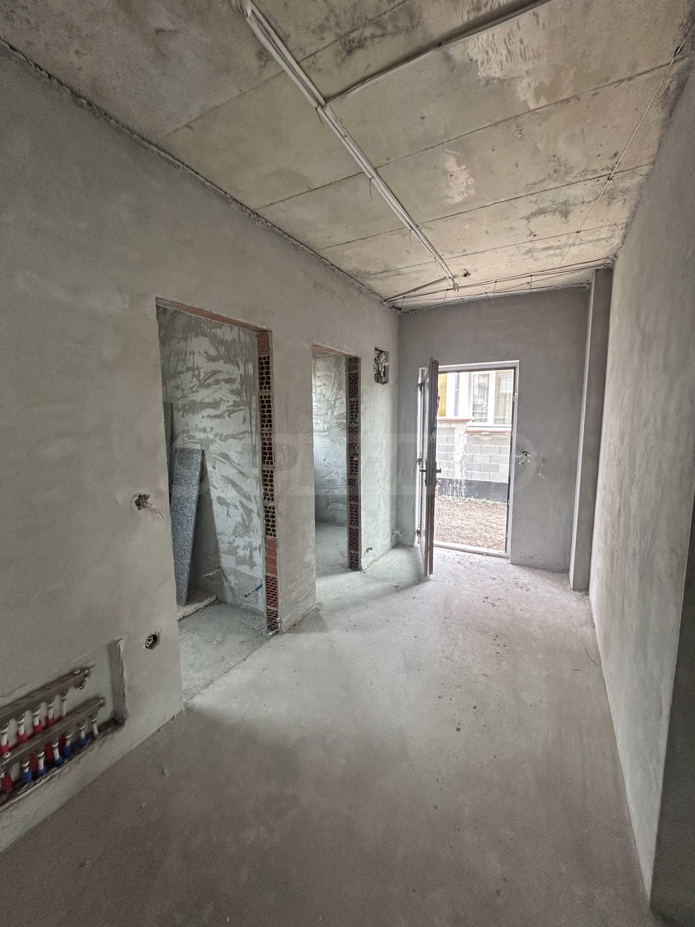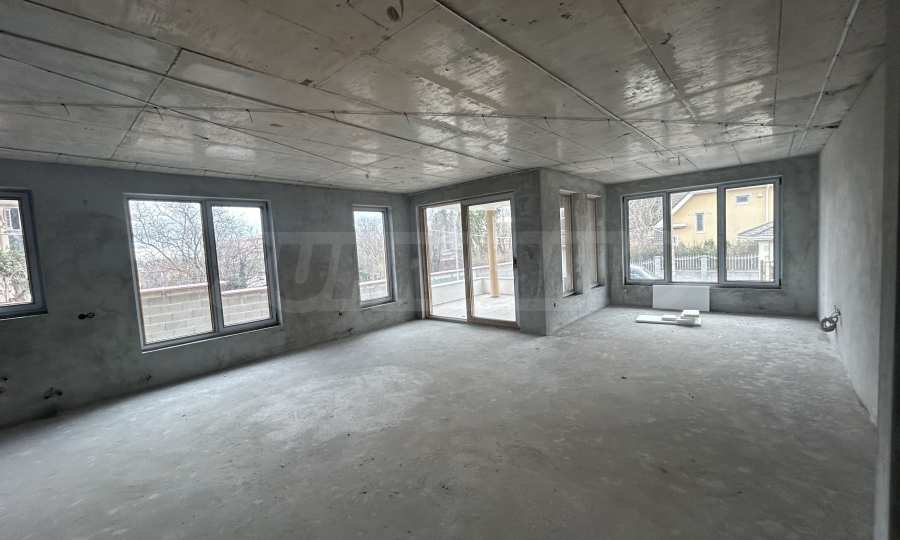 - първи етаж: входно антре, мокро помещение, баня/тоалетна, просторна всекидневна с кухненска част с площ от 56 кв.м, покрита тераса, вътрешно стълбище;