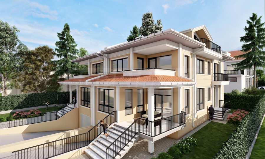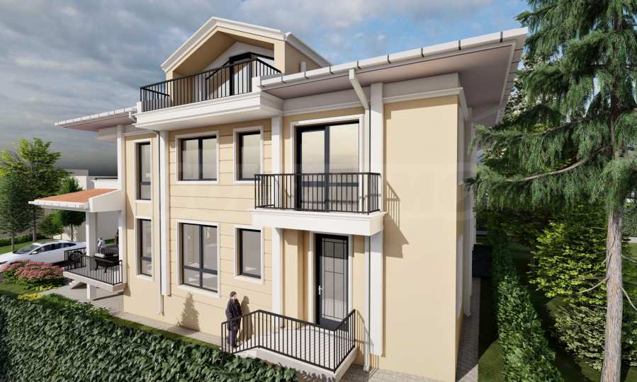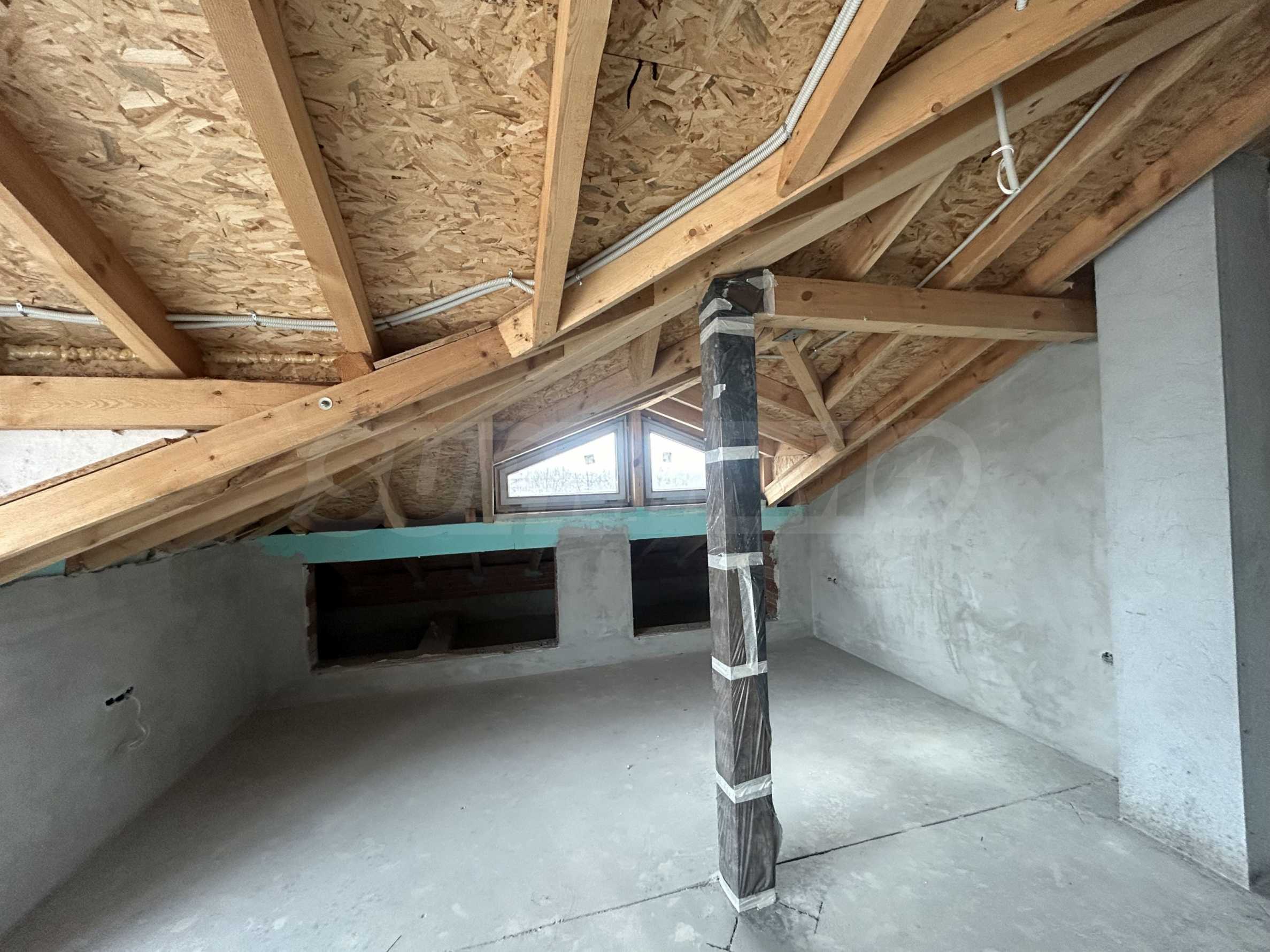 - втори етаж: коридор, родителска спалня с дрешник и самостоятелна баня/тоалетна, 2 отделни спални, баня/тоалетна, стълбище-коридор, 2 балкона;