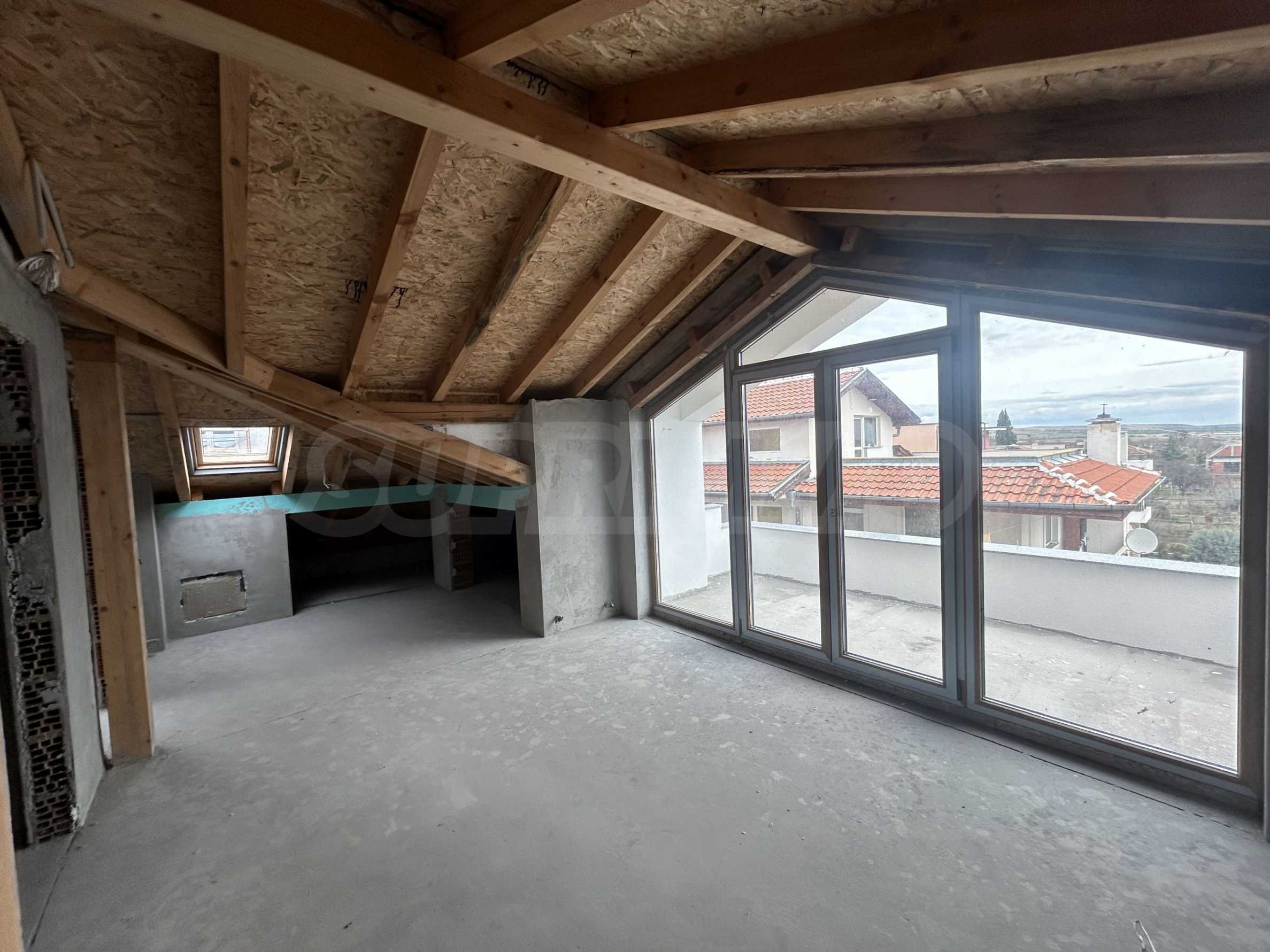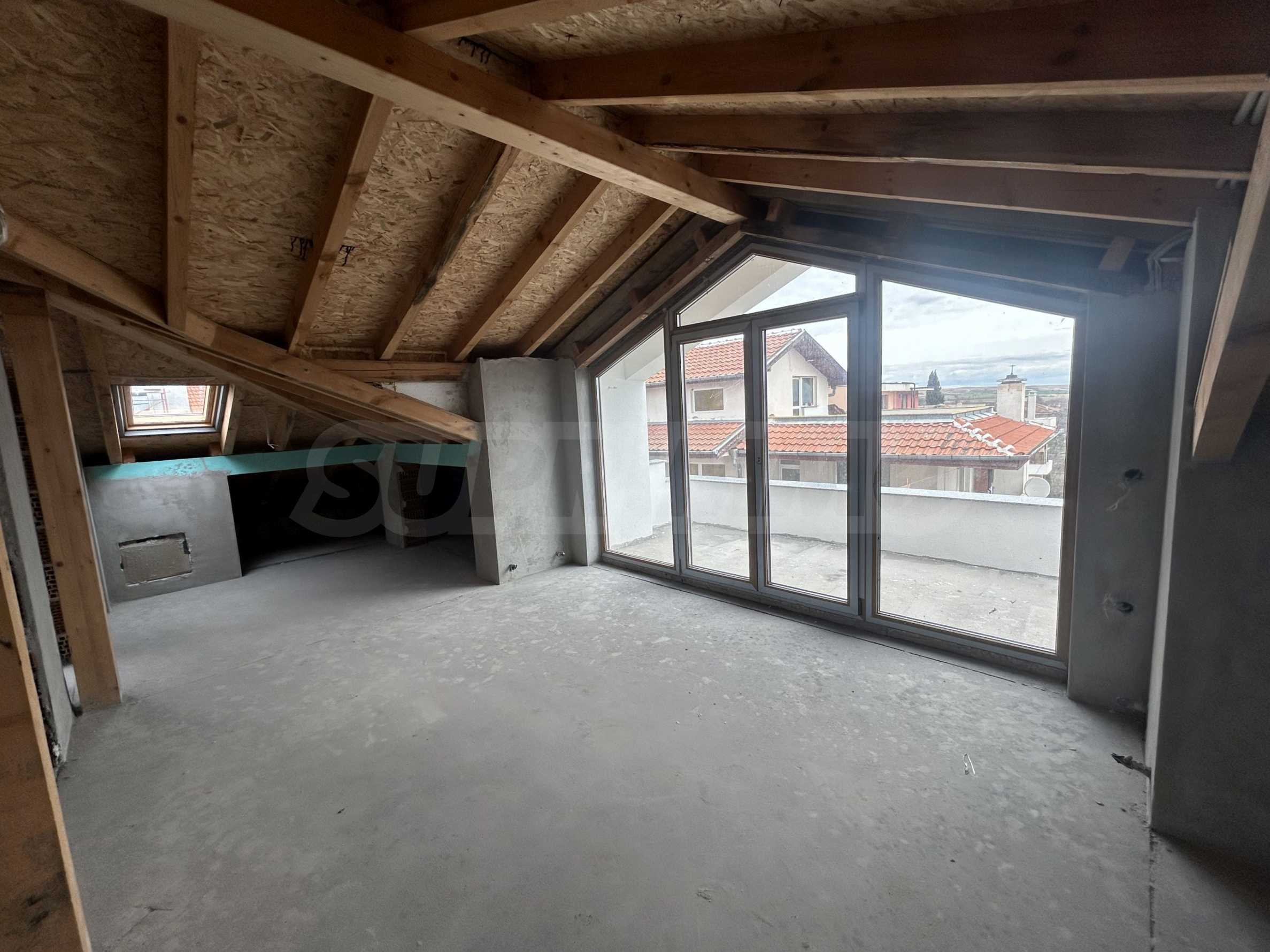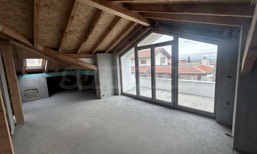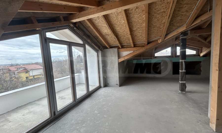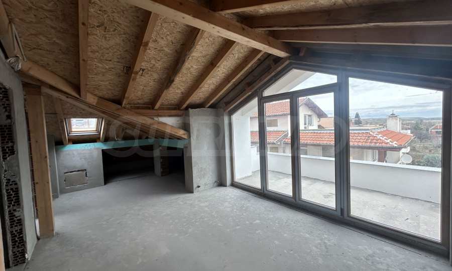 - трети етаж/подпокривен: стая тип студио, баня/тоалетна, тераса, коридор.