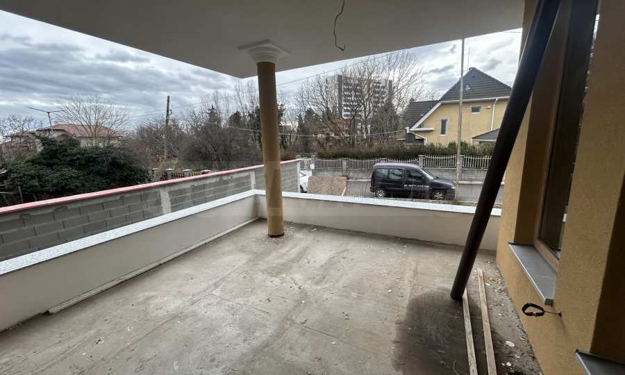 - външна веранда, ограда с ковано желязо, портал за подземен гараж;