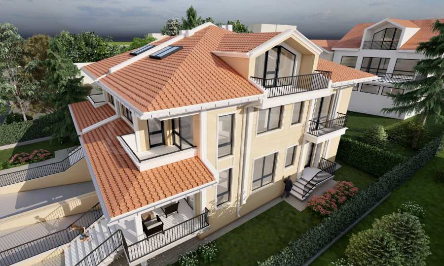 Къщата се предлага в степен на завършеност по БДС: външната фасада е завършена с топлоизолация, завършени веранда и тераси с подови настилки, камък и парапети от ковано желязо.