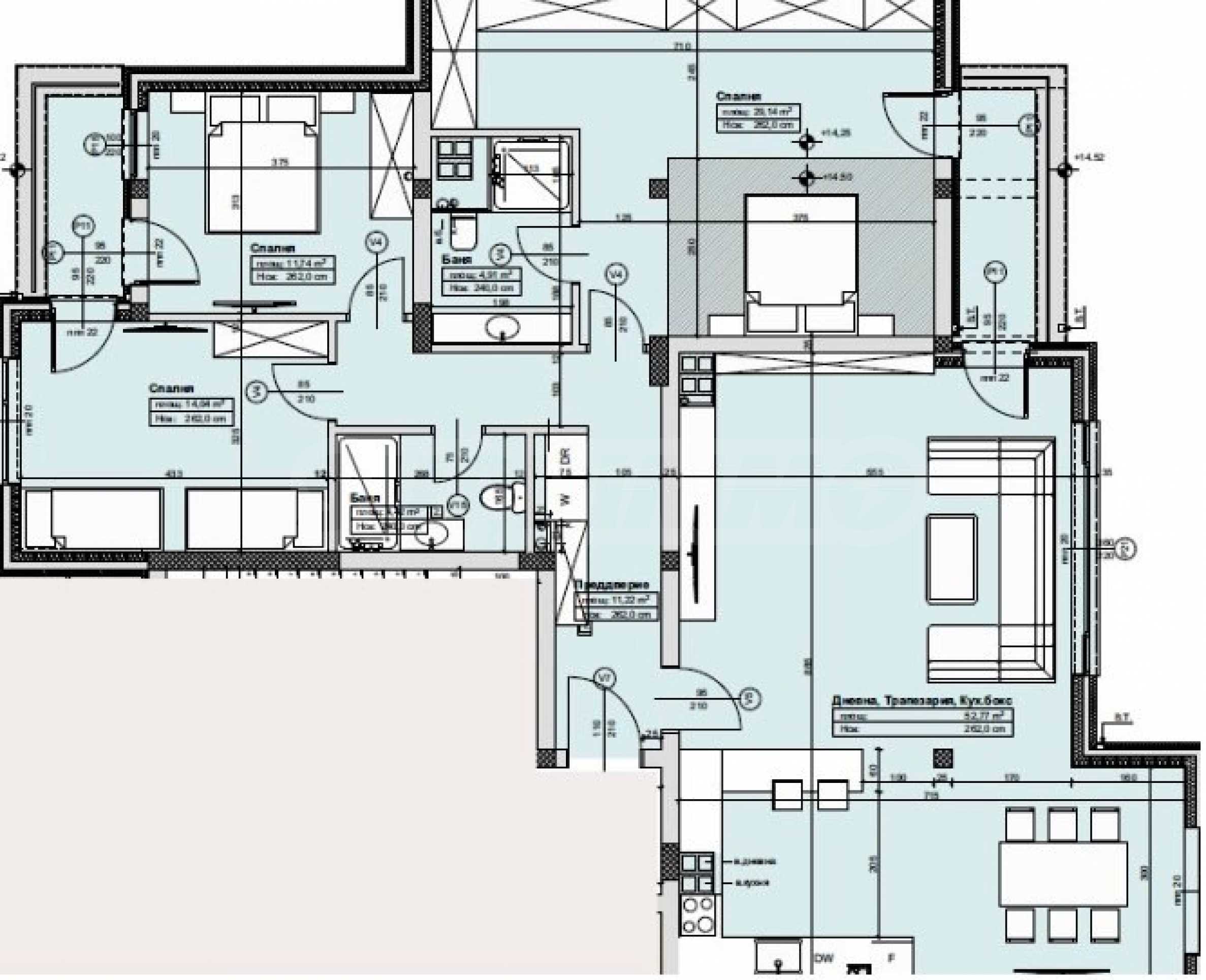 - просторна дневна с трапезария и кухненски бокс - 52.77 кв.м;