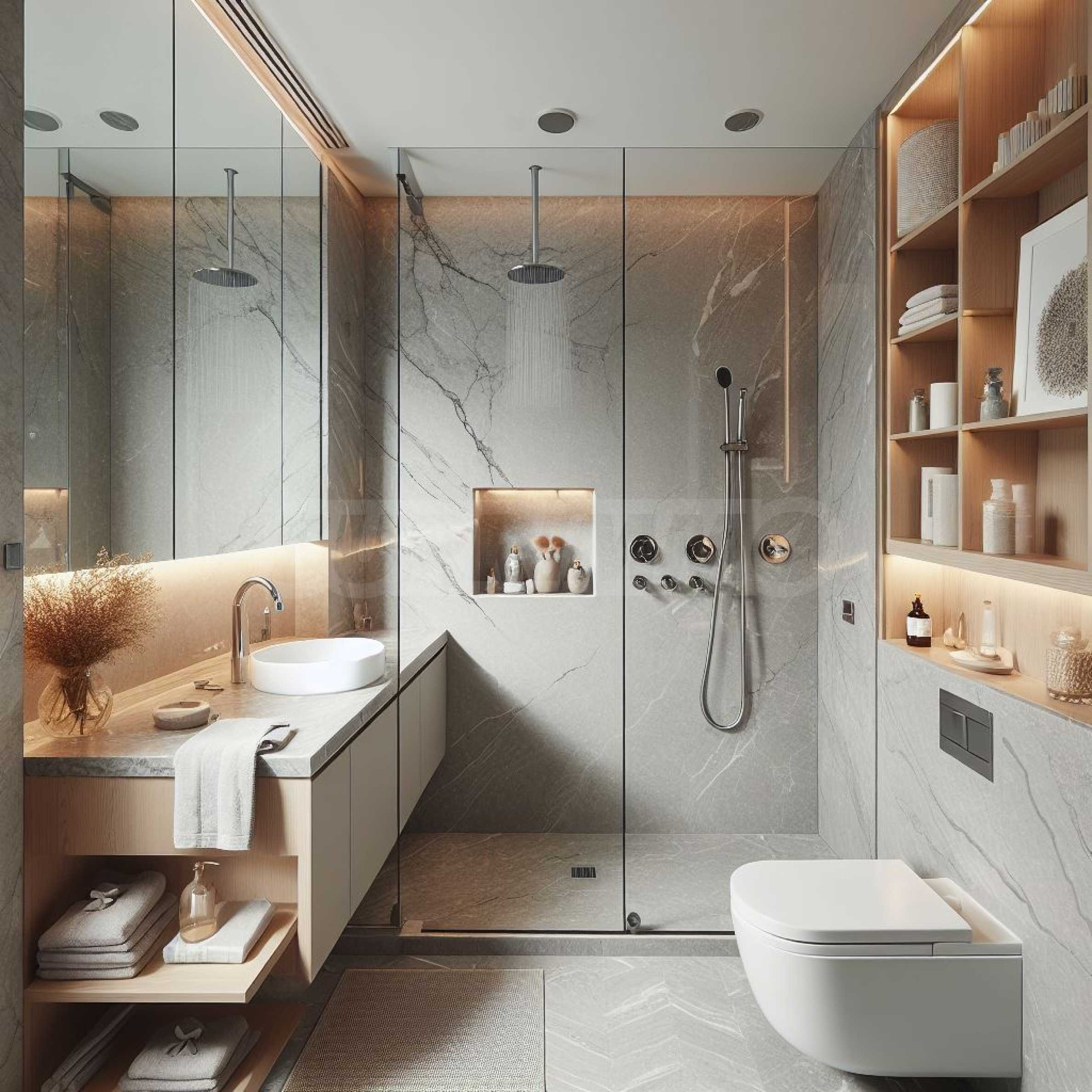 • В баните се изпълнява тръбна разводка за лира и подово отопление;