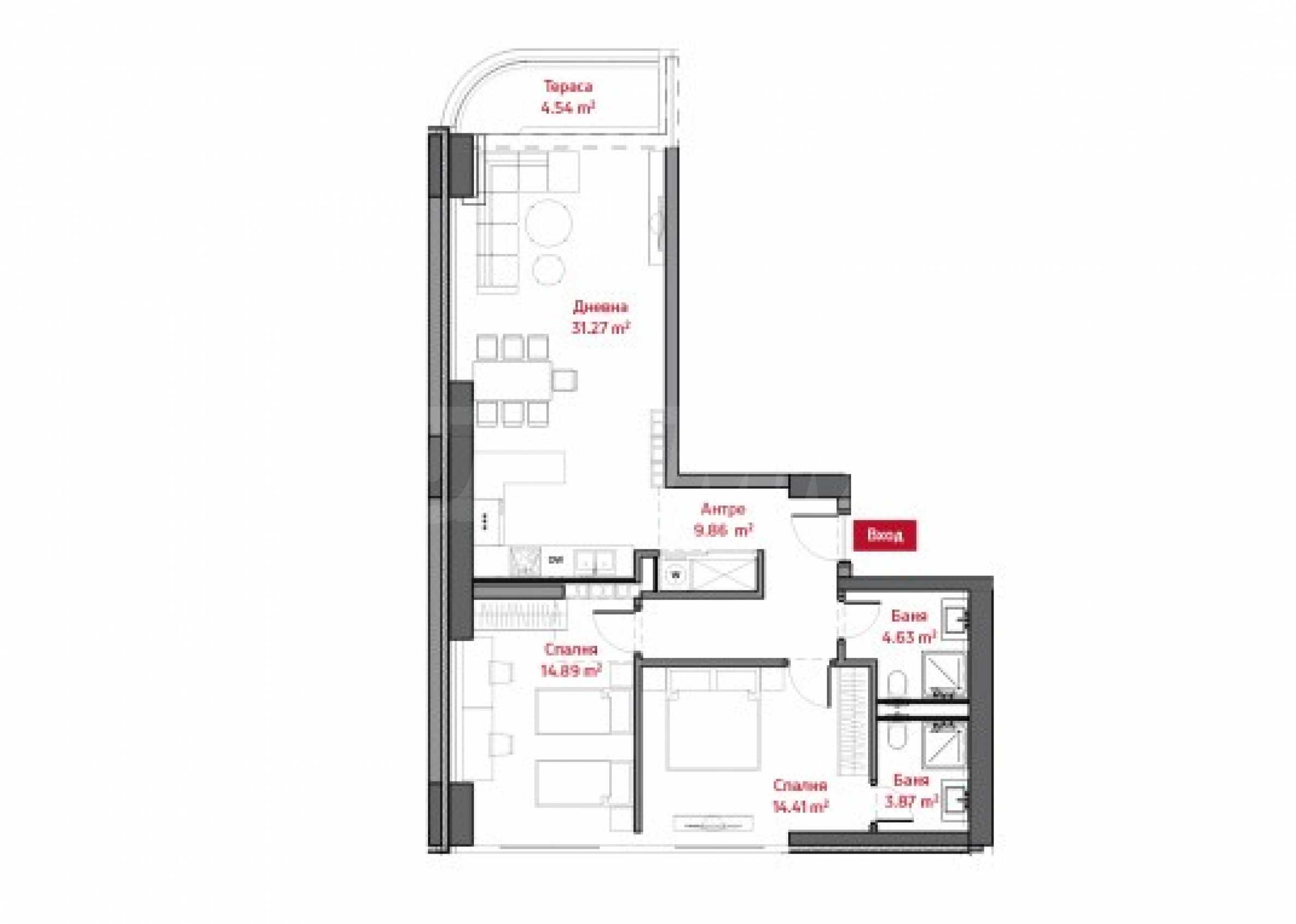 • баня с тоалетна - 4.31 кв.м;