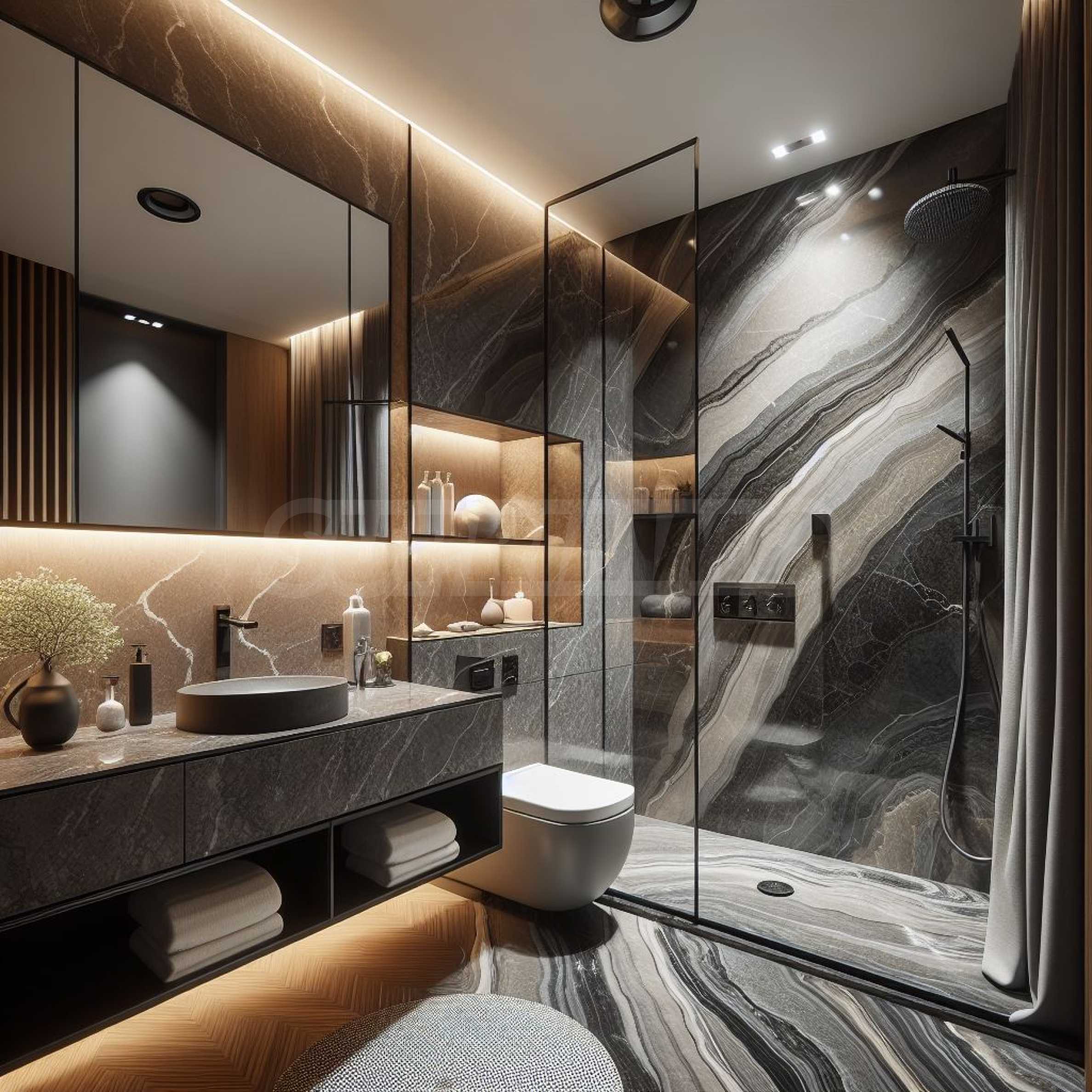 • В баните се изпълнява тръбна разводка за лира и подово отопление;