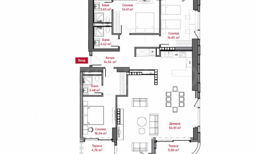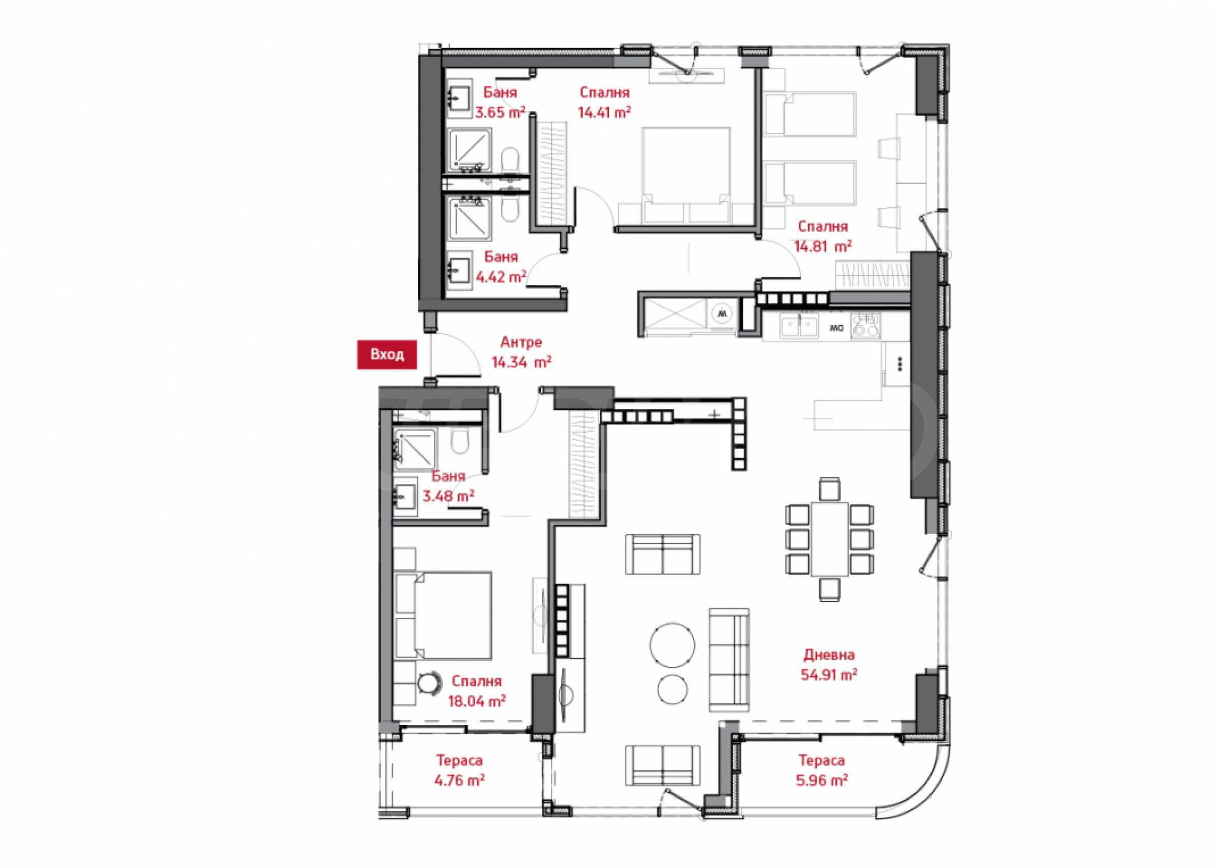 • входно антре - 14,13кв.м;