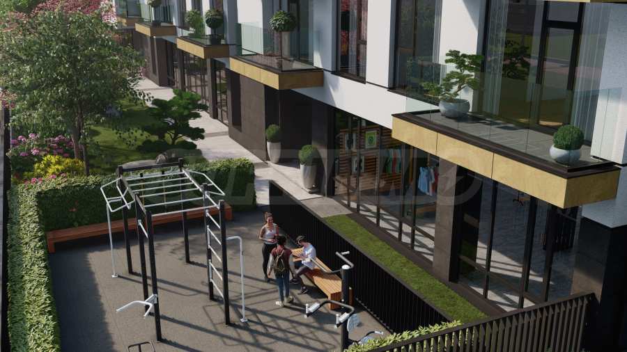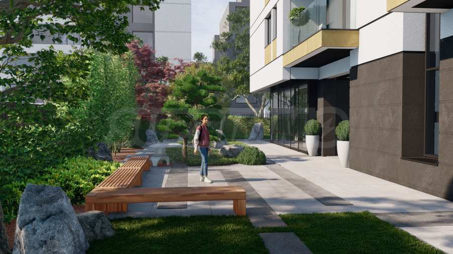 • Богато озеленяване с истинска Японска "дзен" градина, алеи за разходка с пейки и фитнес на открито.