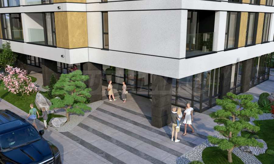 • Богато озеленяване с истинска Японска "дзен" градина, алеи за разходка с пейки и фитнес на открито.