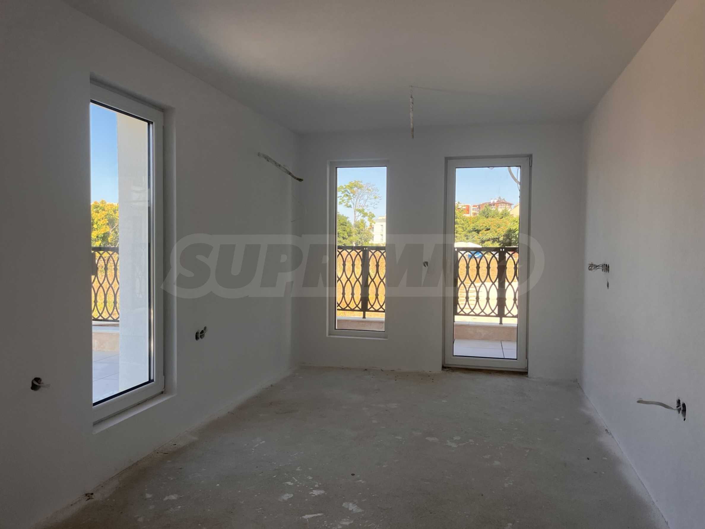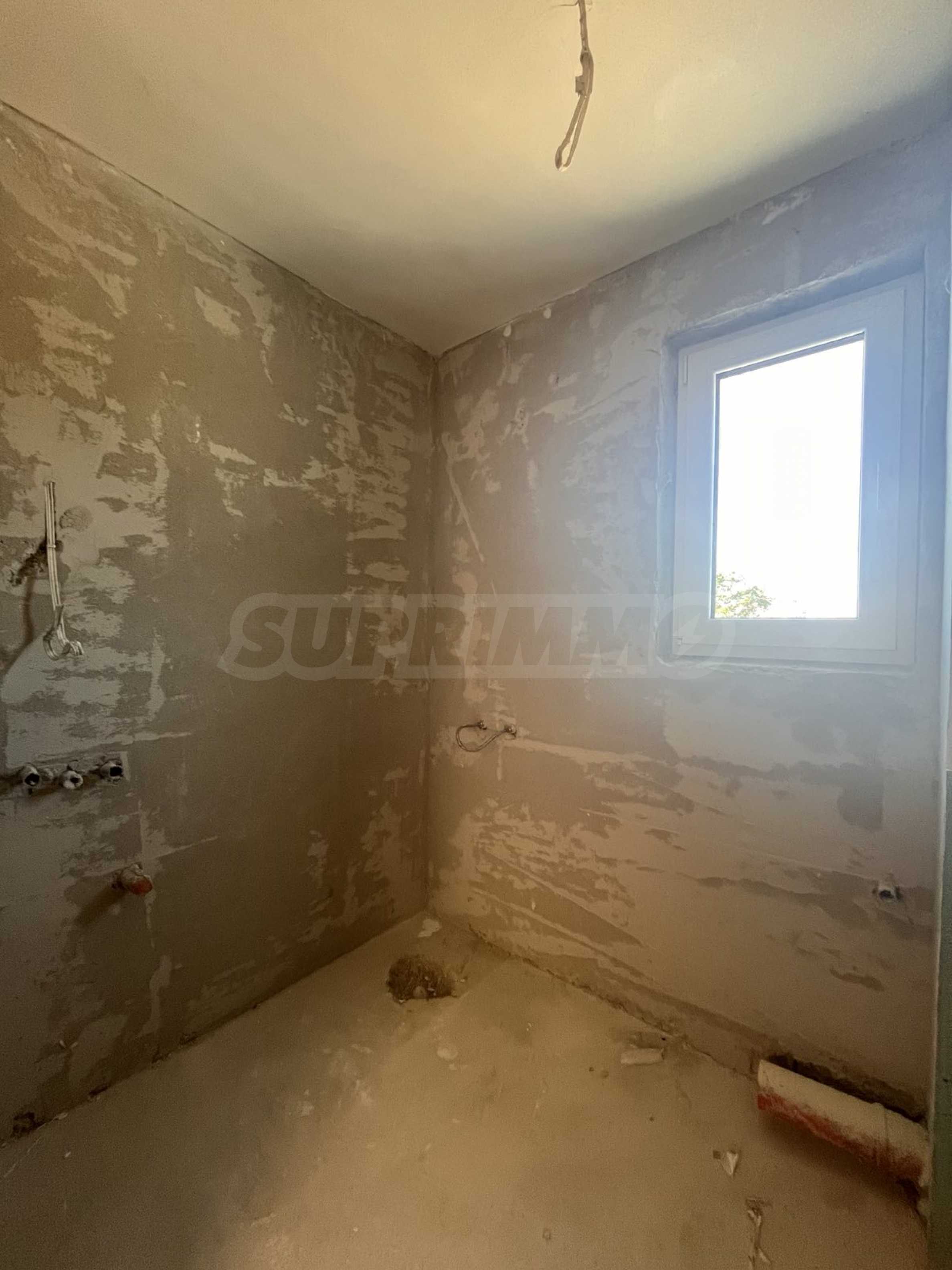 - завършени мазилки и замазка на пода, с боядисване в бяло, но без полагане на настилките;