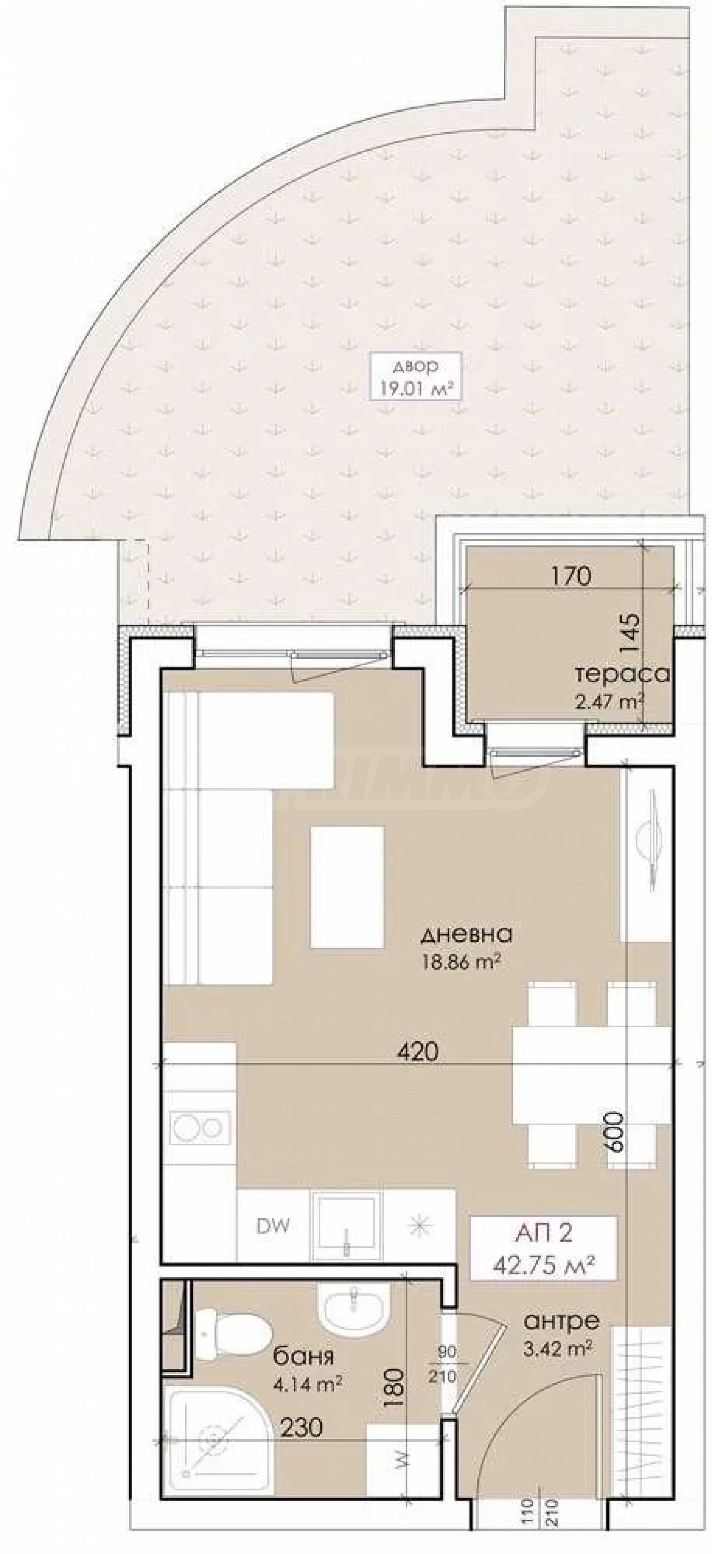 Представяме за продажба комфортно студио с частен двор, в нова сграда в Созопол.