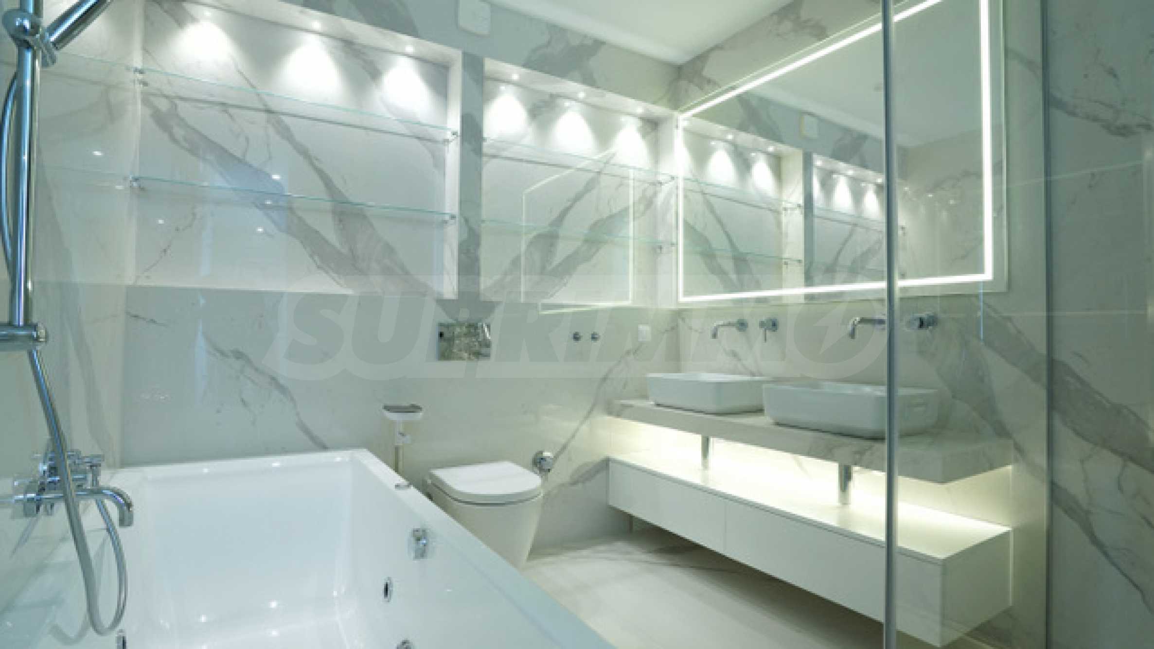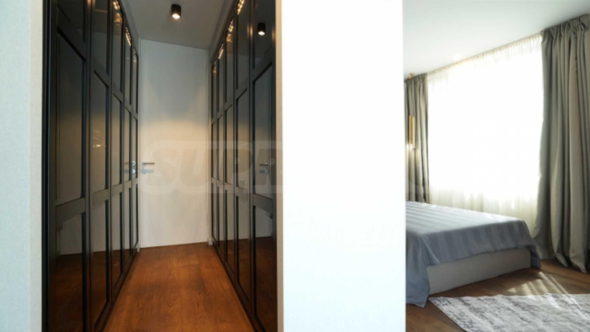 - две спални, всяка от които е с дрешник и баня;