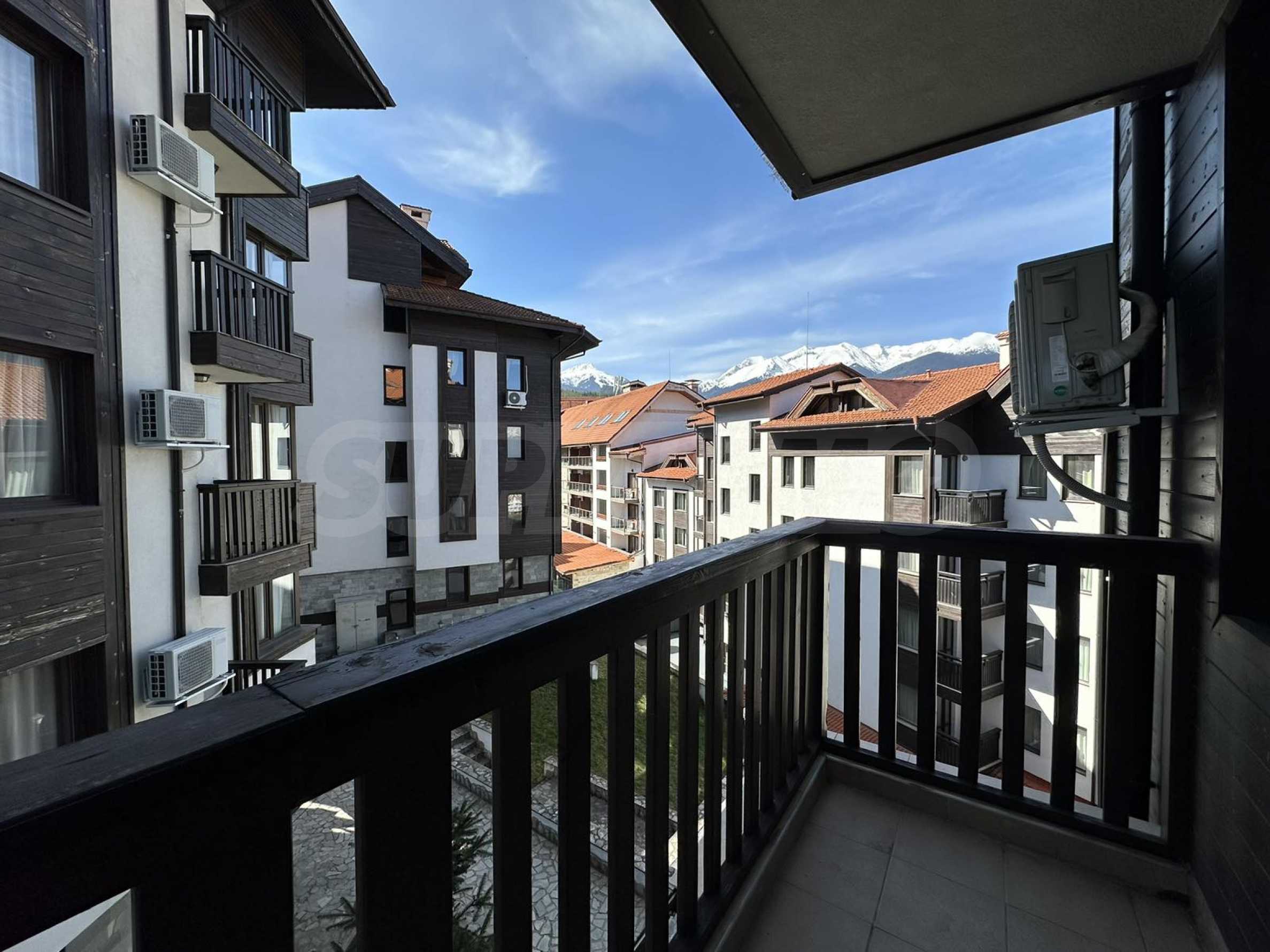 Просторен и светъл двустаен апартамент в хотелски комплекс, разположен в подножието на Пирин планина, само на няколко минути от кабинковия лифт и ски пистите на Банско.