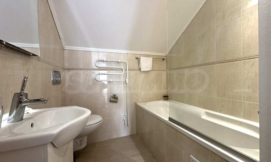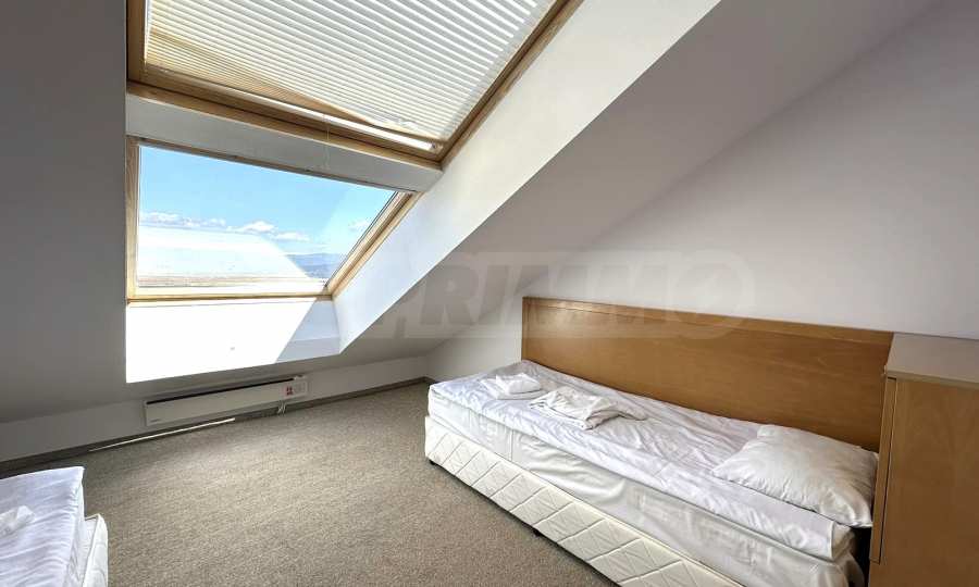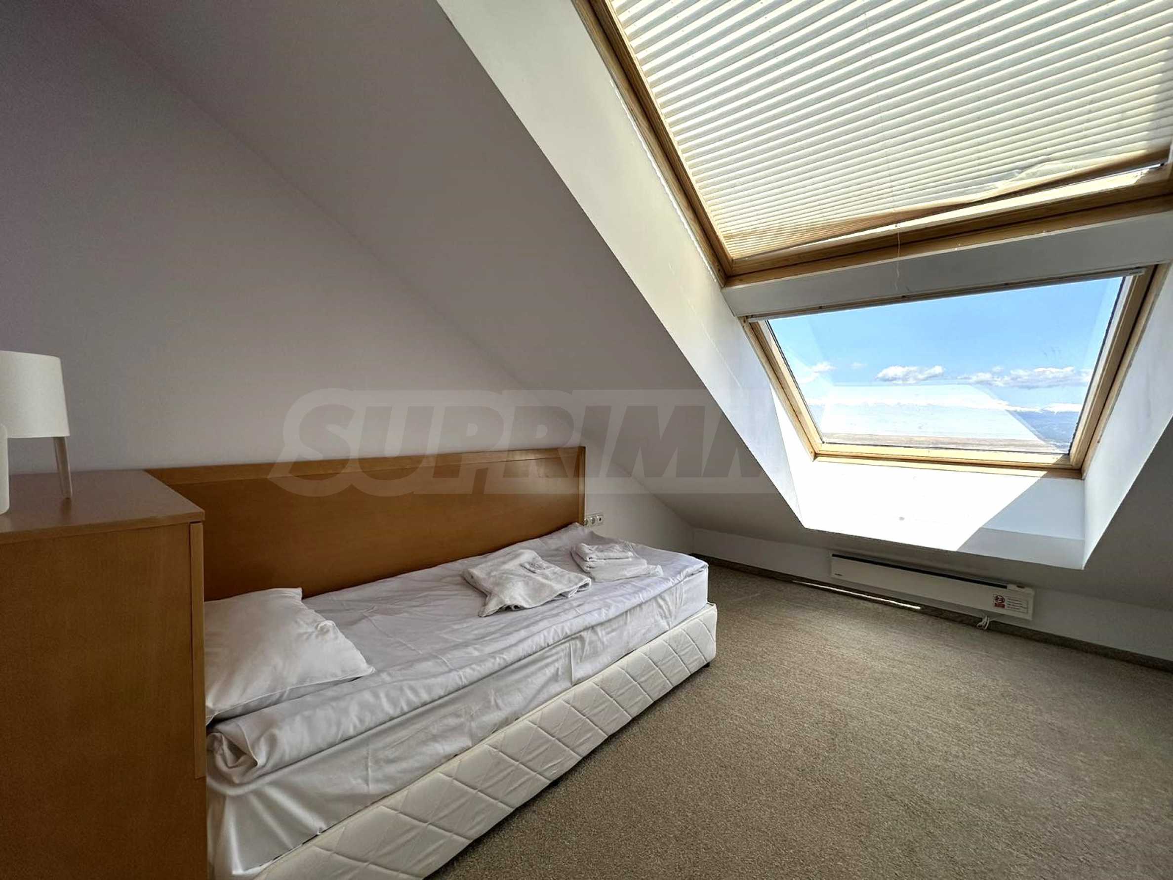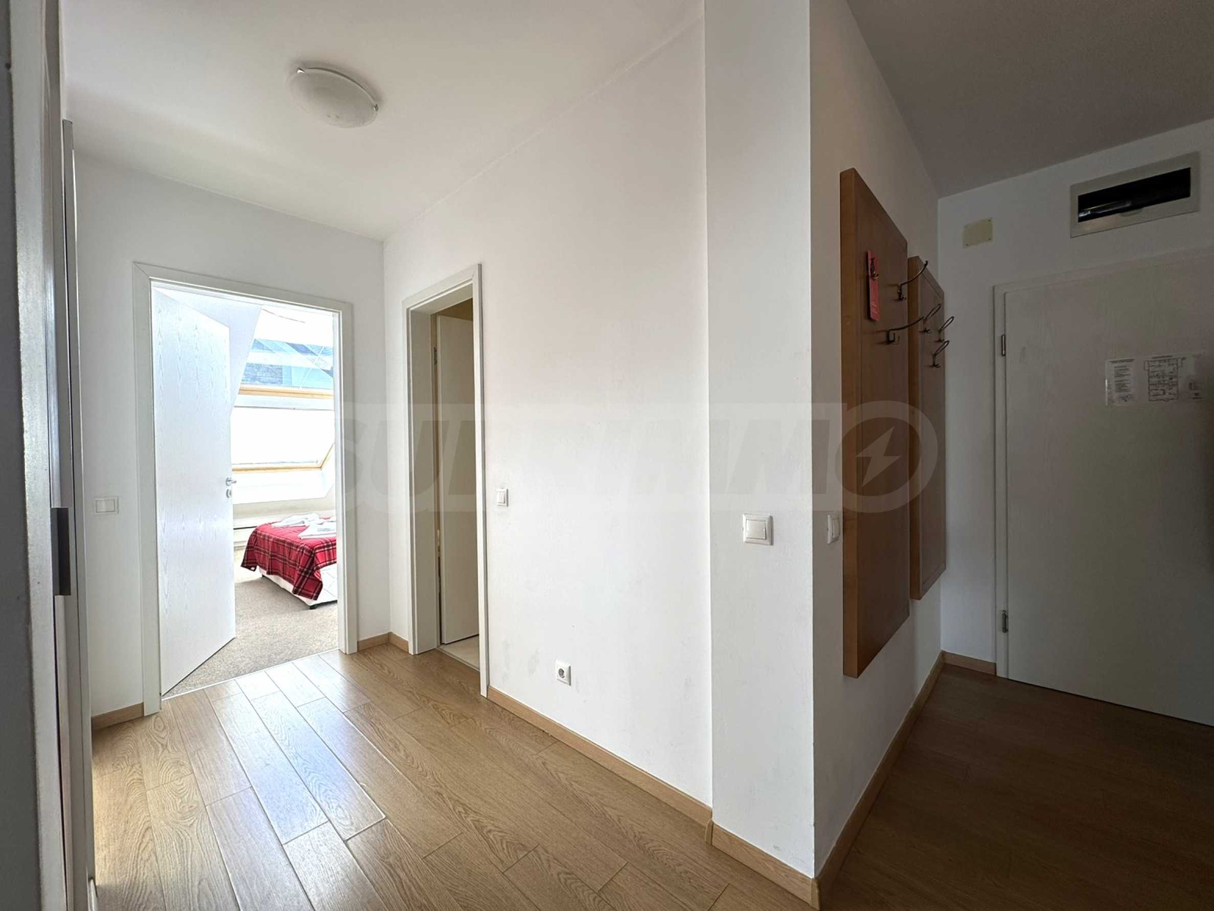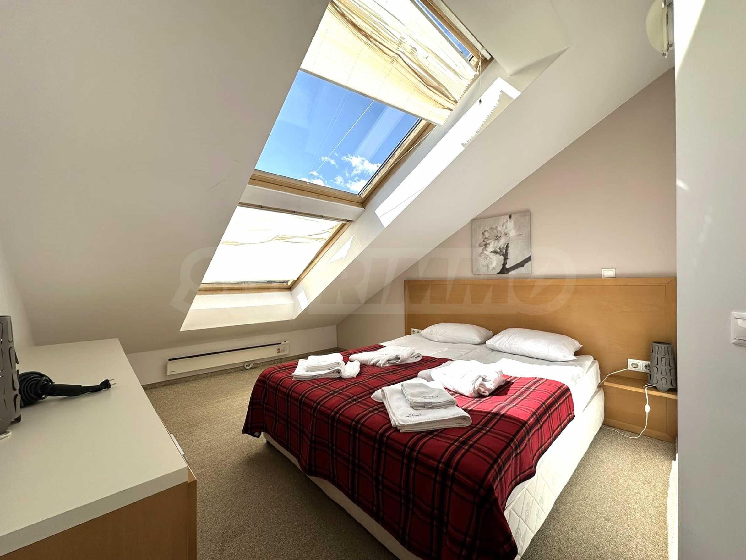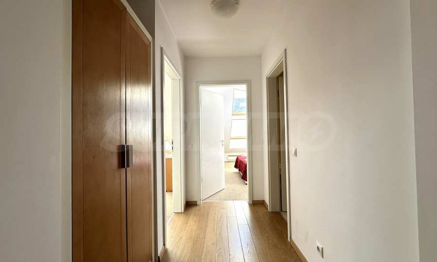Жилището е с индивидуален дизайн, с голямо внимание към детайлите. В декорацията са използвани само най-висококачествените и естествени материали. Просторната всекидневна разполага с мека мебел и бяла кухня, която е напълно оборудвана с висок клас техника: фурна, котлони и хладилник.