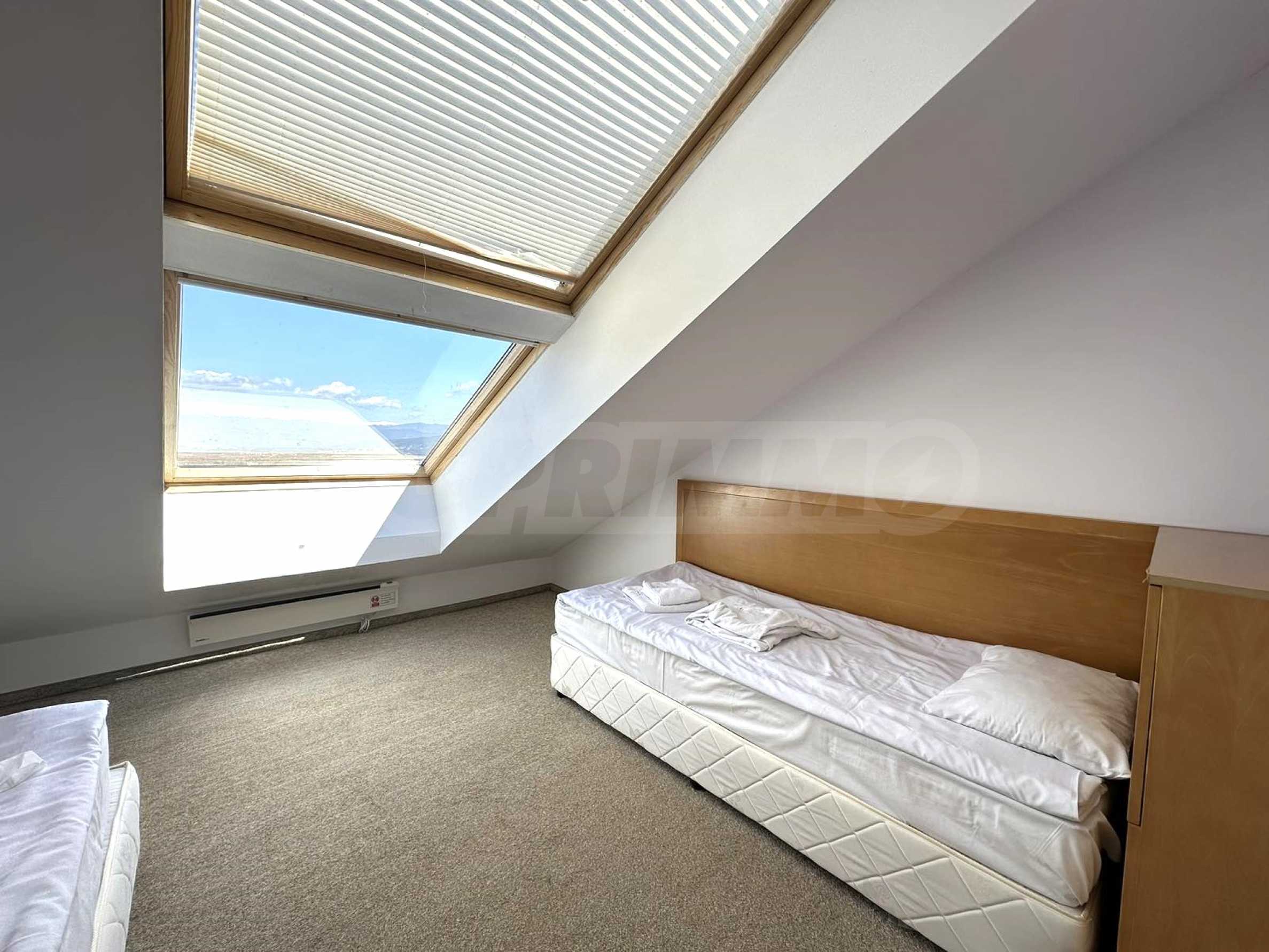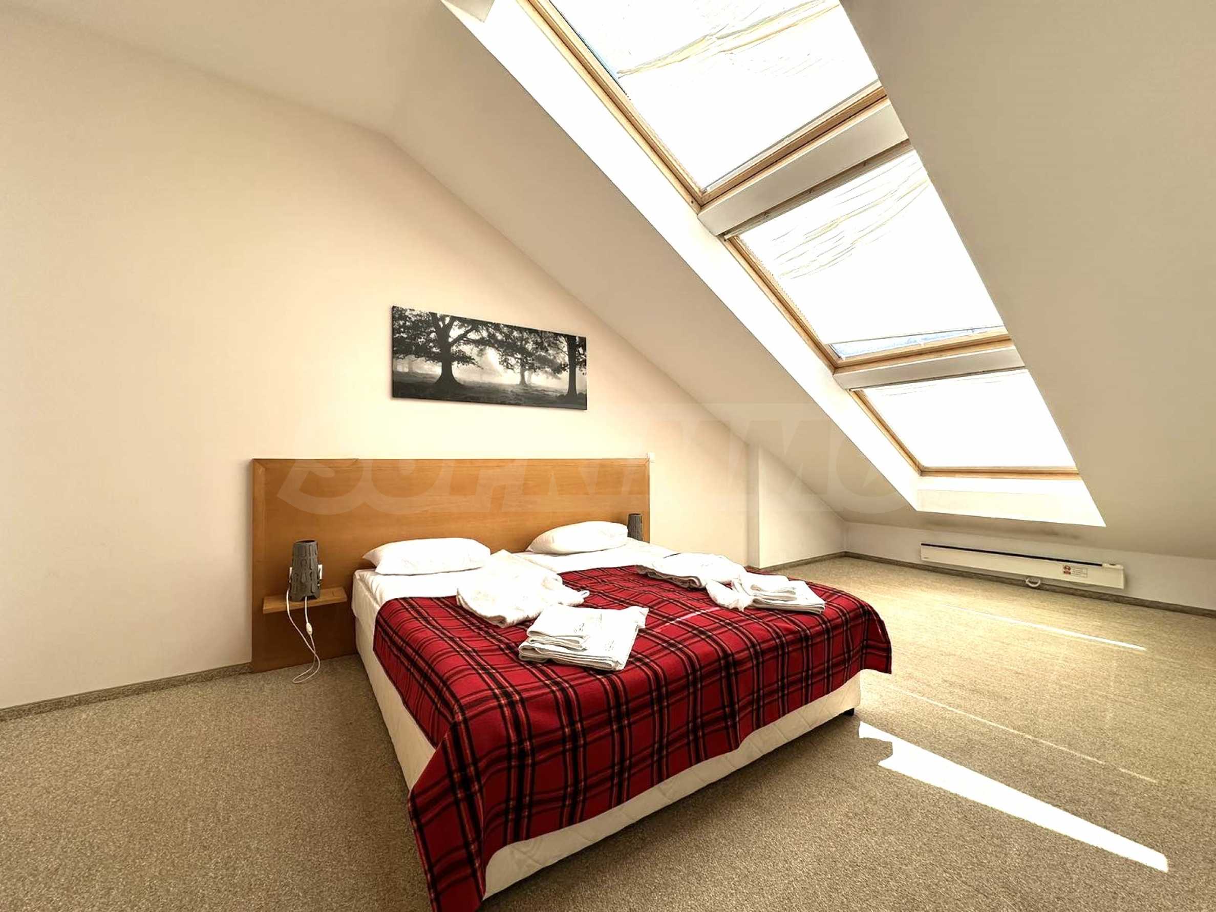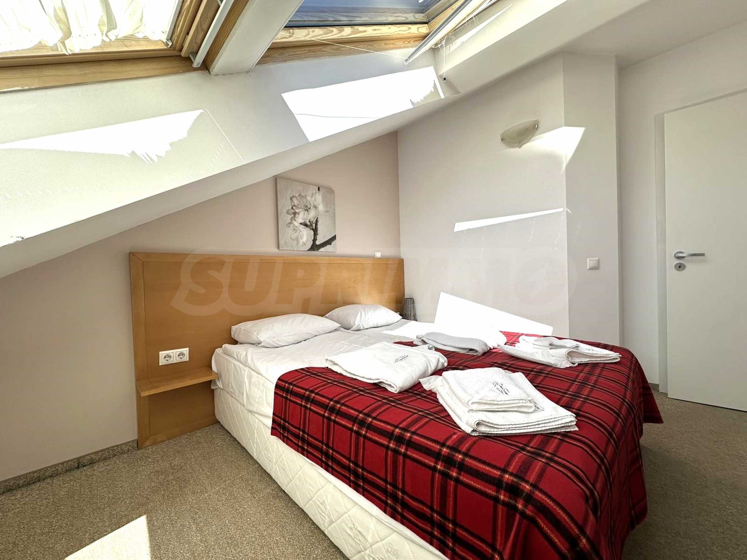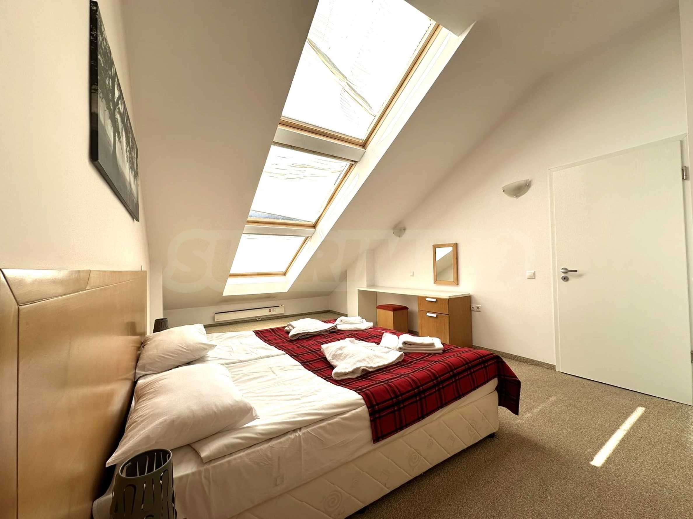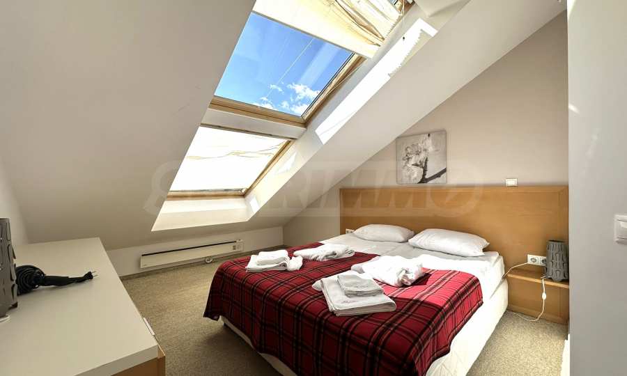 Жилището е с индивидуален дизайн, с голямо внимание към детайлите. В декорацията са използвани само най-висококачествените и естествени материали. Просторната всекидневна разполага с мека мебел и бяла кухня, която е напълно оборудвана с висок клас техника: фурна, котлони и хладилник.