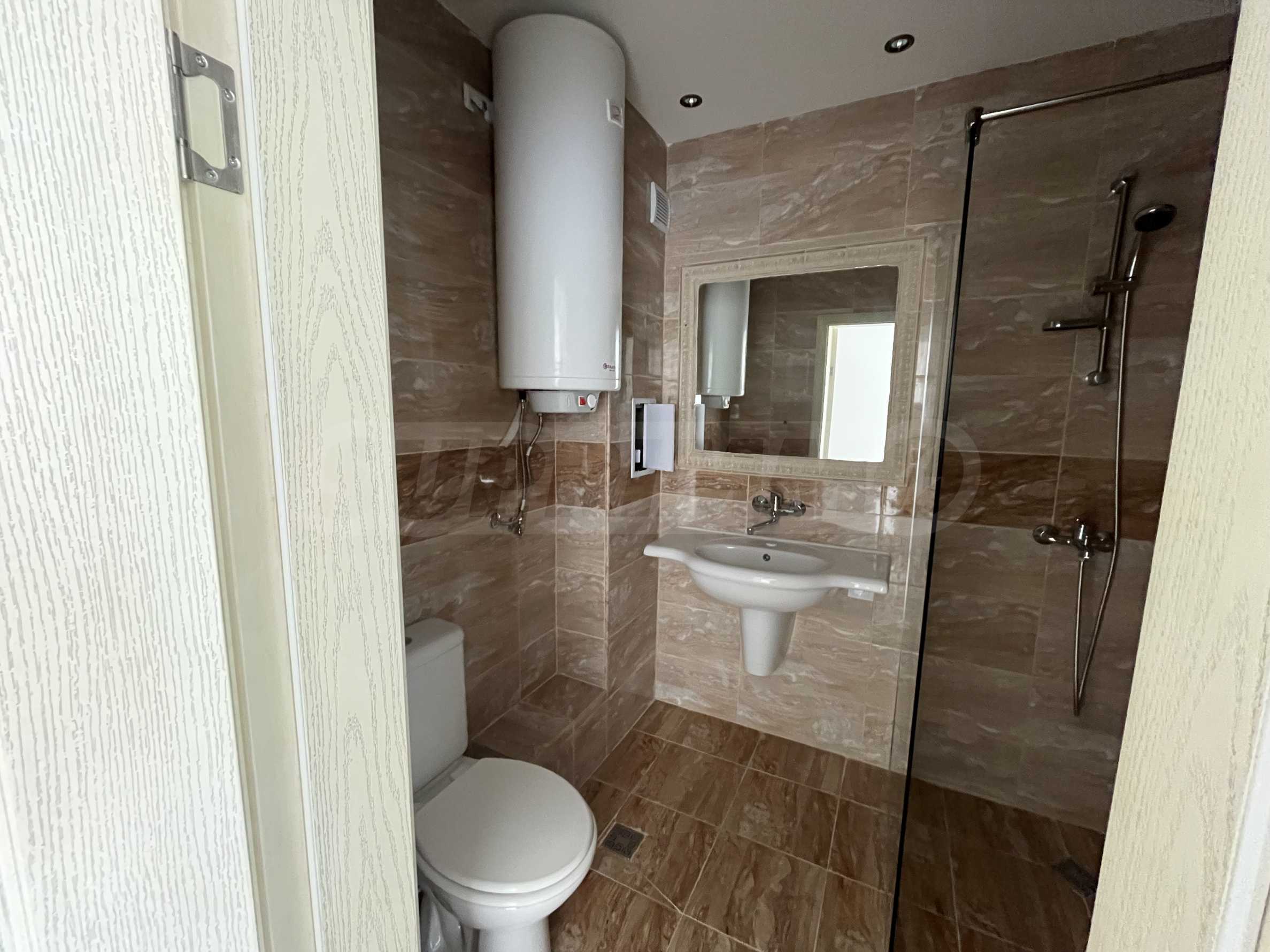 - баня – под – теракот, стени – фаянс, душ батерия, моноблок, мивка, душ кабина и бойлер.