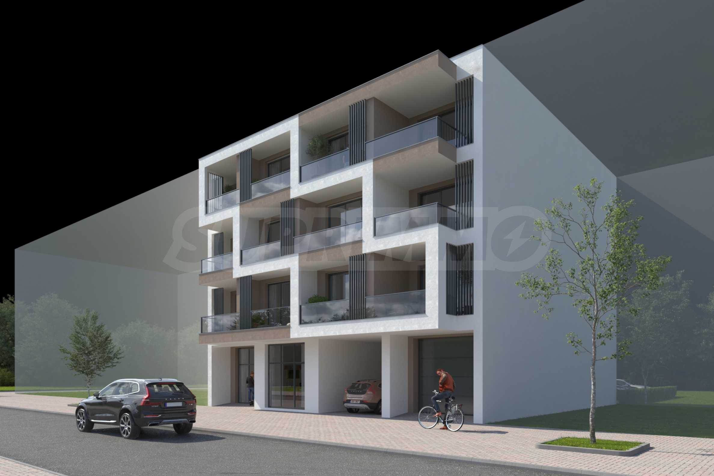 Сградата е проектирана на 4 нива - партер и три жилищни етажа, с общо 13 броя нови жилища, едно търговско помещение и два гаража. Строи се с качествени материали по всички изисквания на енергиен клас А. Имотите за продажба са студиа, двустайни и тристайни апартаменти от 38 кв.м до 100 кв.м.