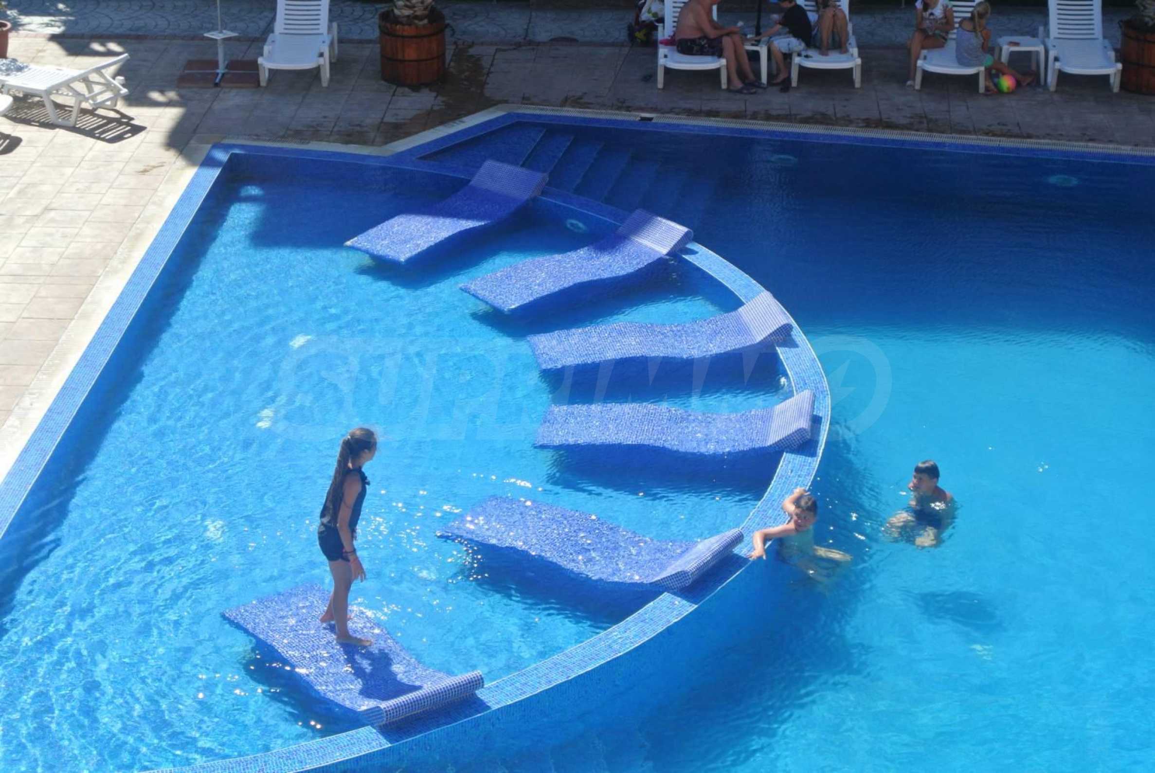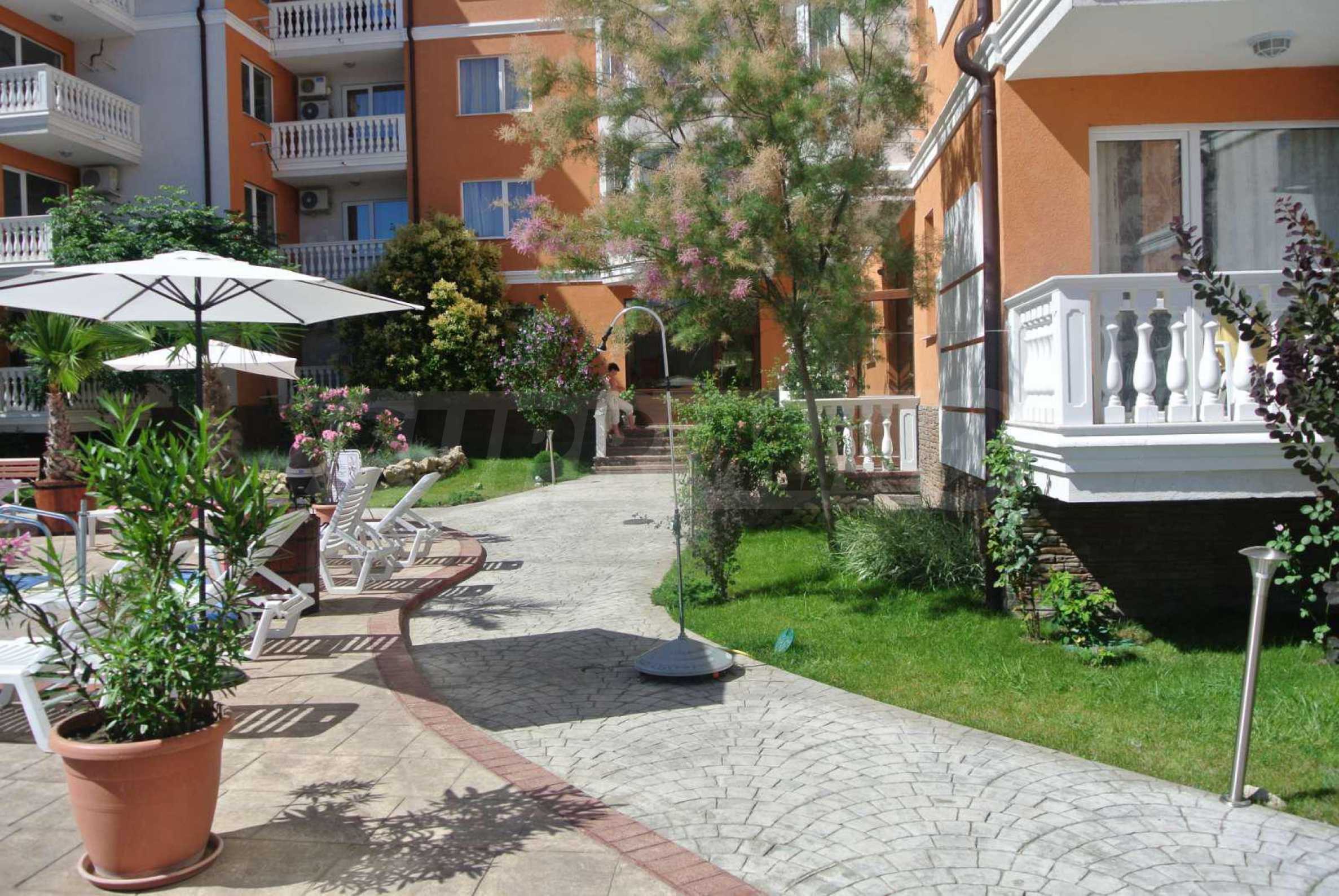 Комплексът е с красив дизайн и поддържани общи части и двор. Разполага с басейн и охрана, обитава се целогодишно.