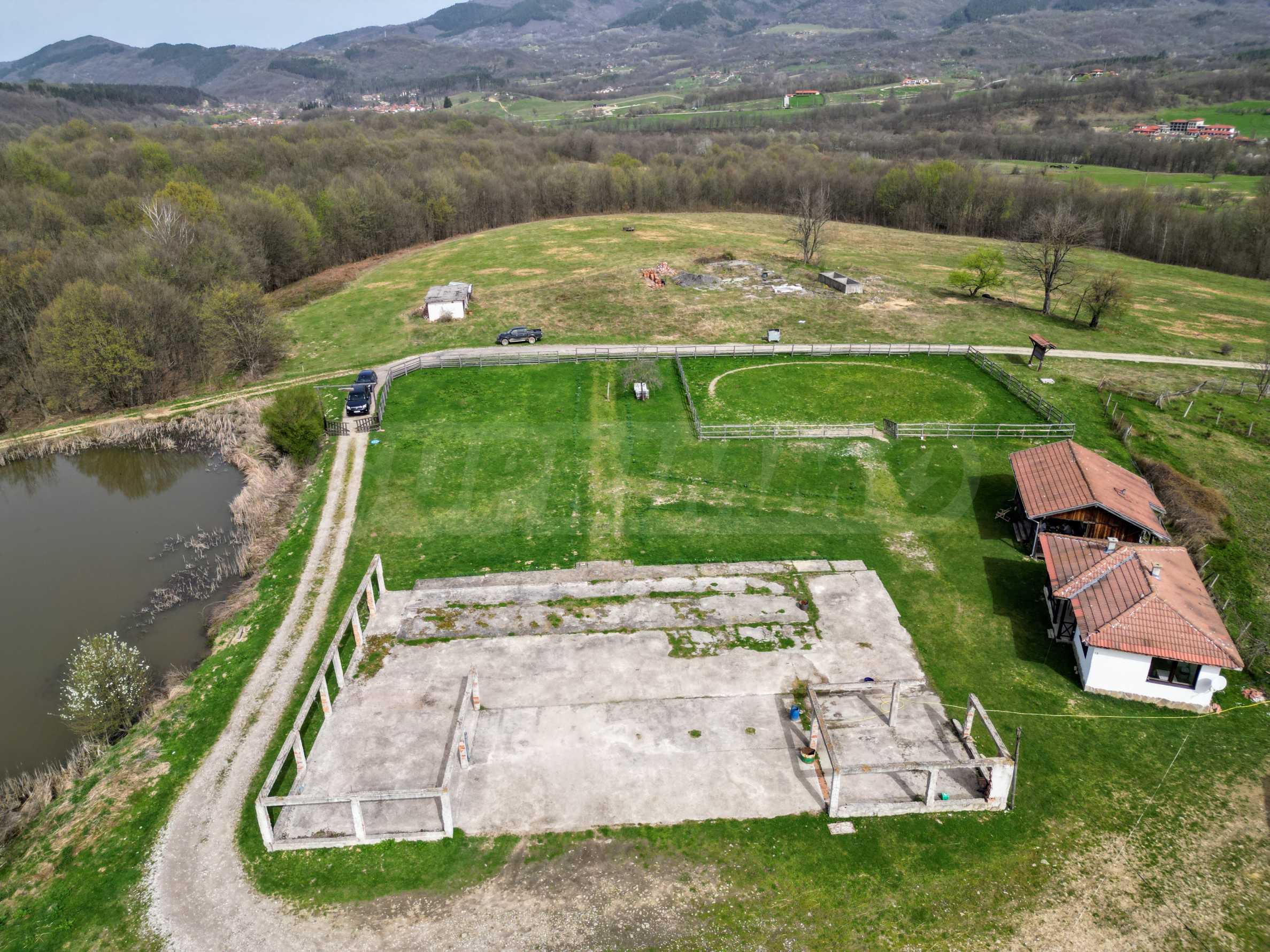 - конюшня със застроена площ от 360 кв.м. 15 бокса, работилница, склад и др.