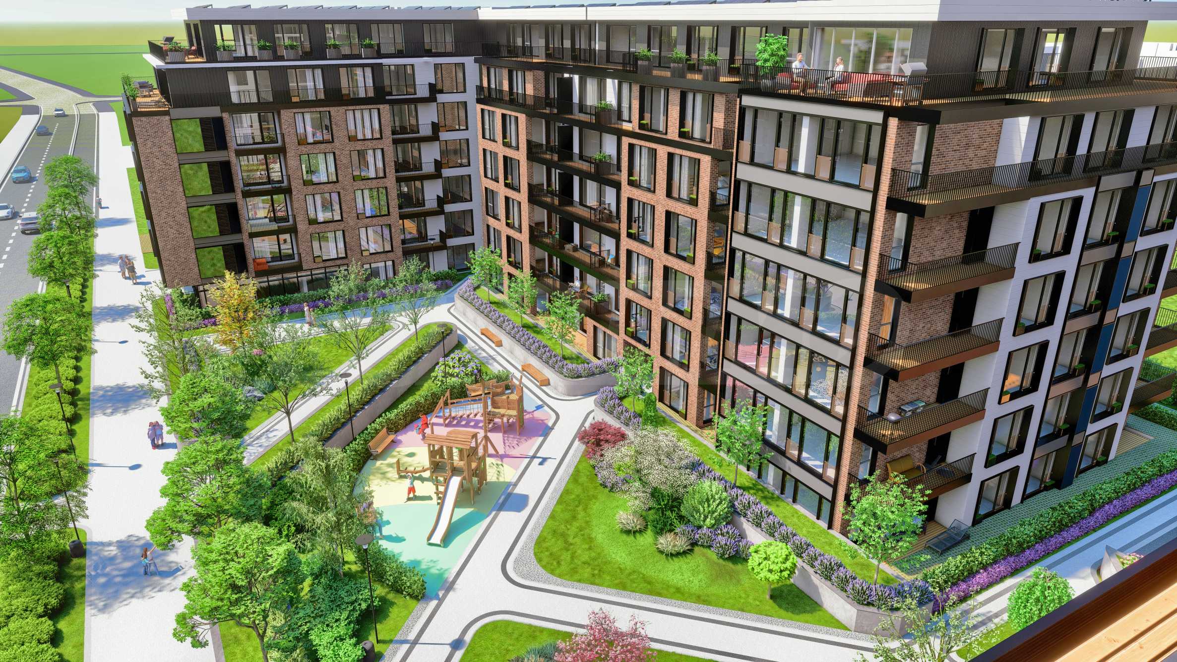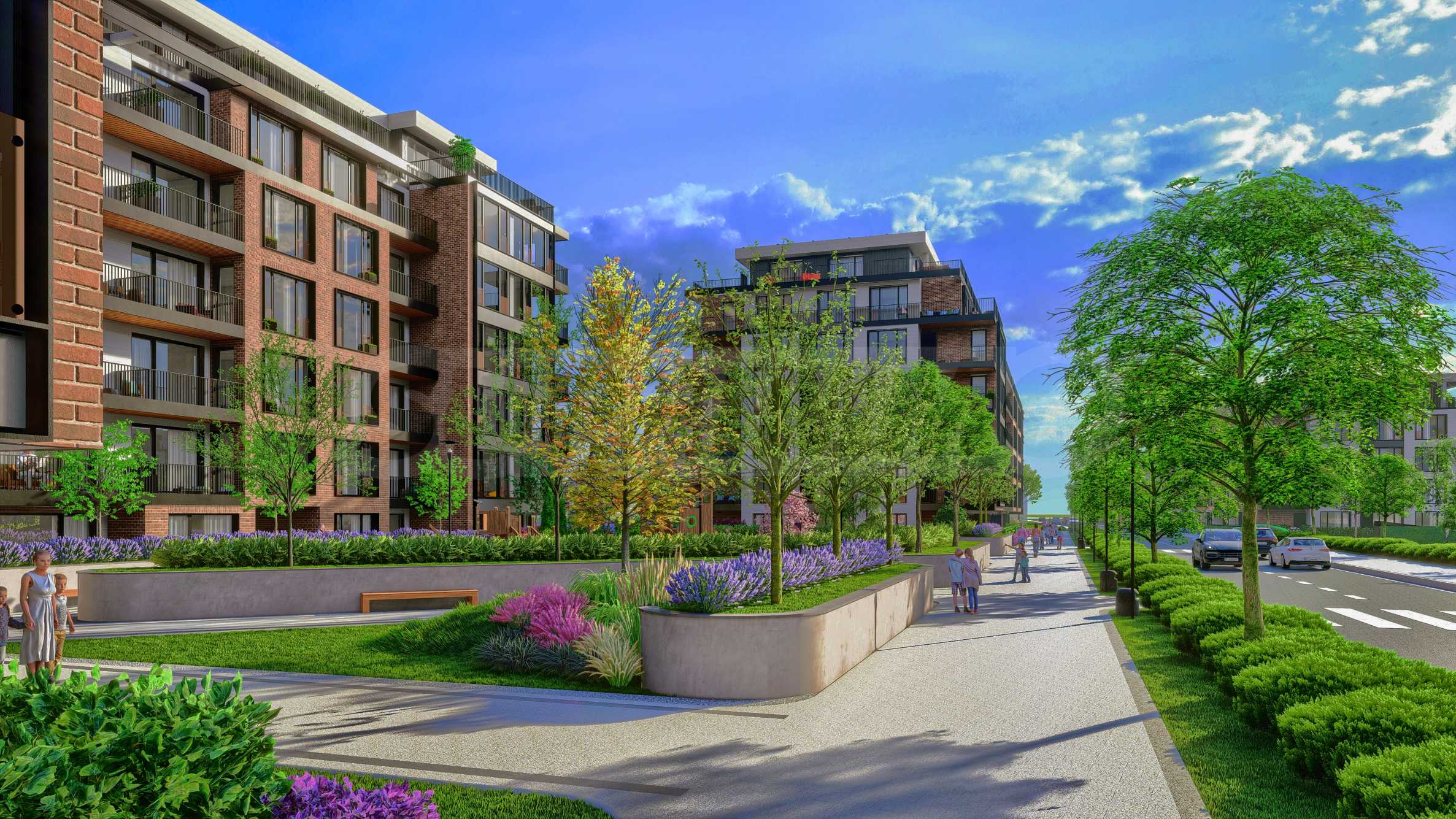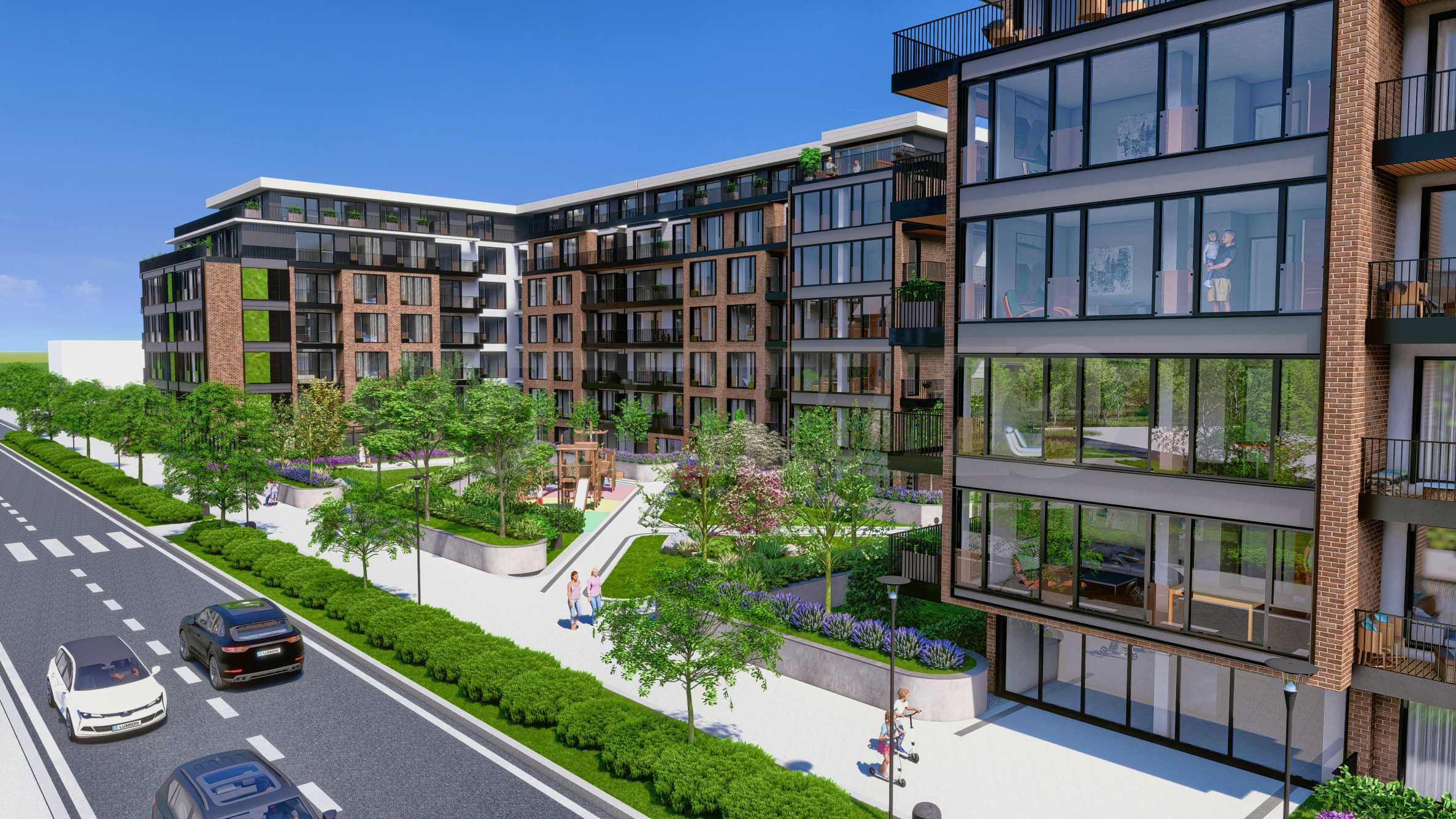 Проектът се състои от 2 сгради и четири жилищни секции. Жилищните секции са типизирани - огледални и повтаряеми. Предлага студиа, двустайни, тристайни, четиристайни апартаменти, гаражни клетки и паркоместа, реализирани изцяло в подземен гараж, паркова среда с два детски къта - 5500 кв.м, фитнес на открито и водно огледало.