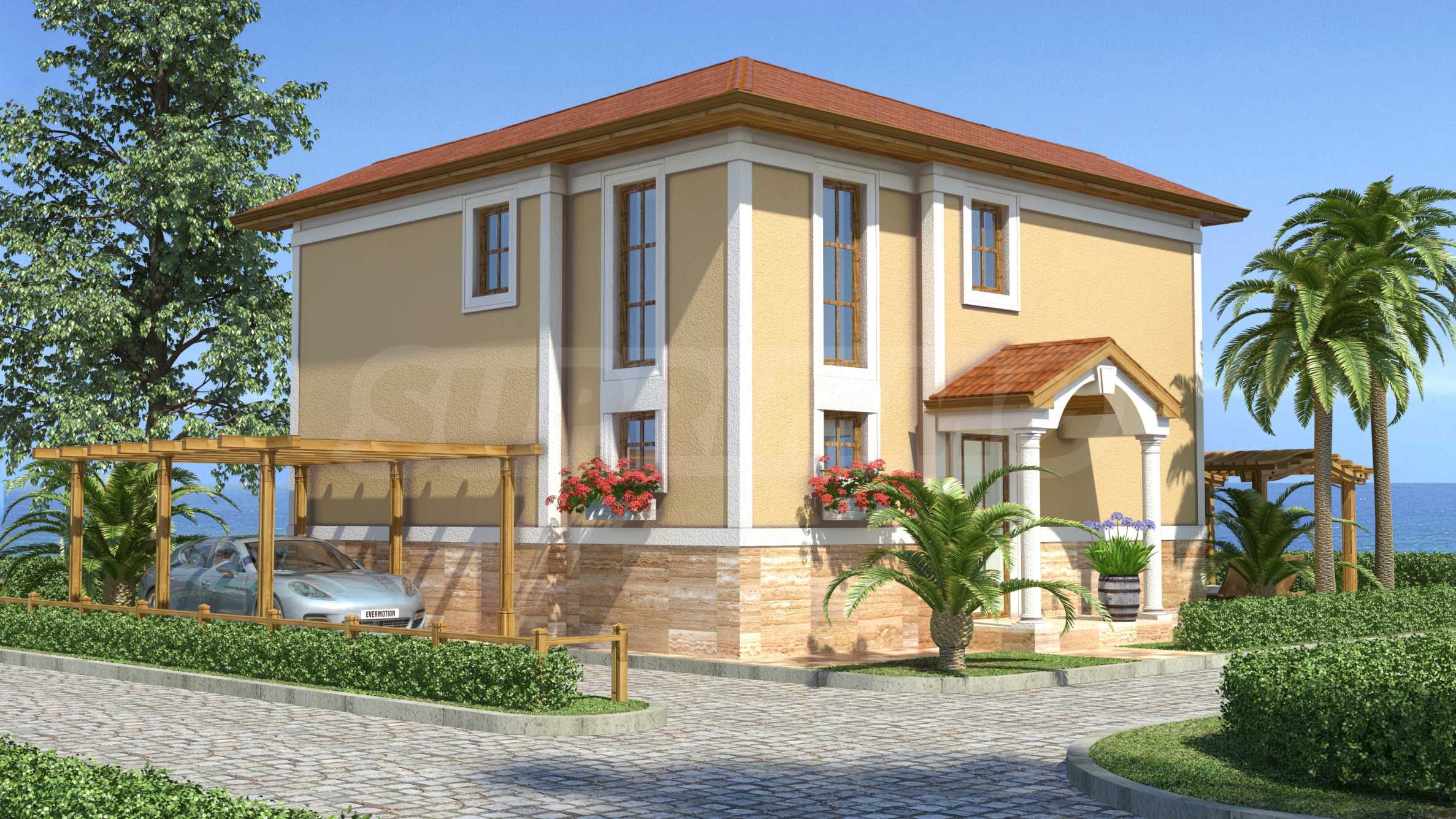 Комплексът се състои от вили и таунхауси с просторни, самостоятелни дворове, паркоместа, басейни, гаражи, веранди с красиви гледки към морето и залива на Слънчев бряг.
