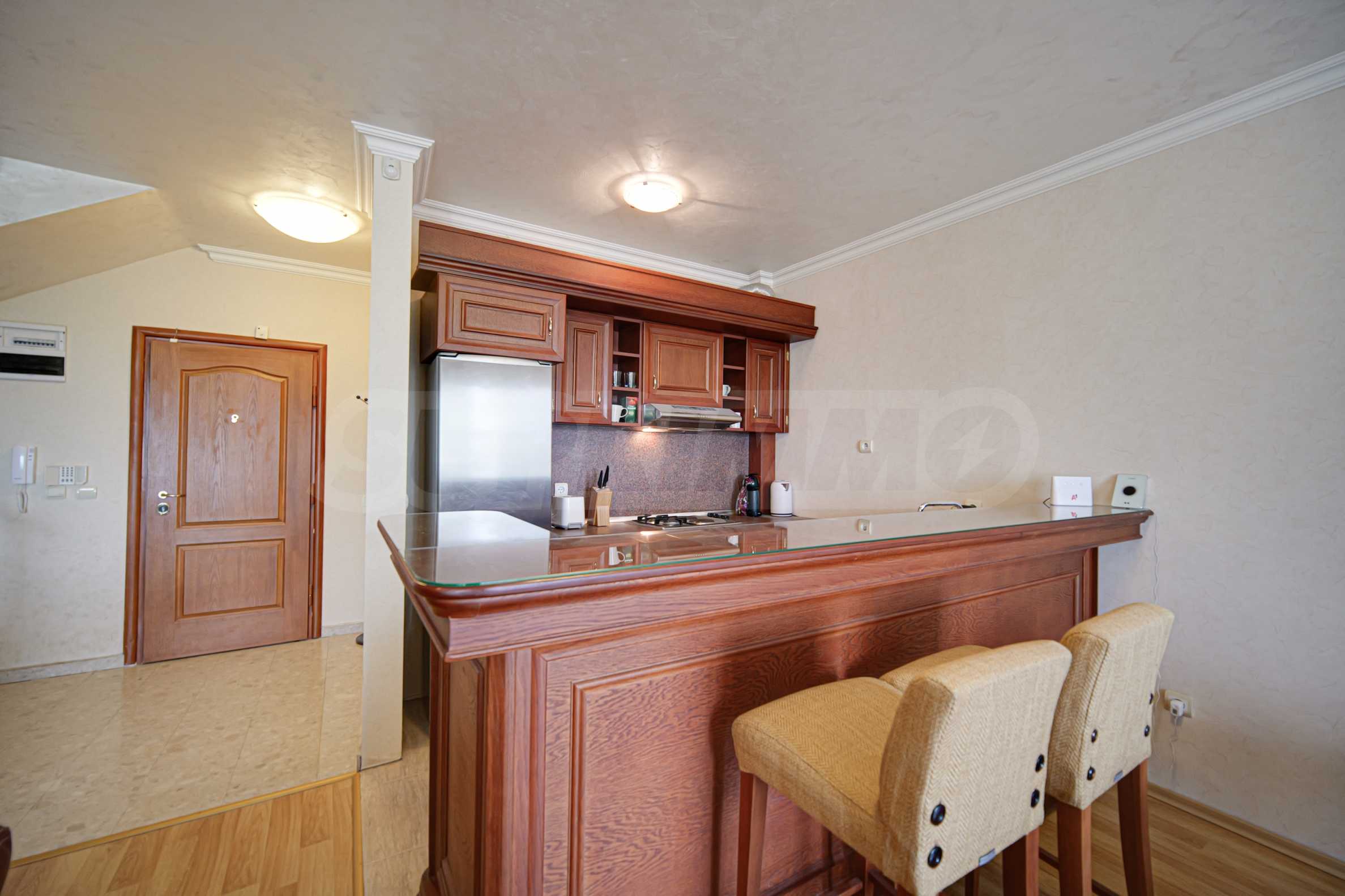 Кухненската част е оборудвана с всички необходими електроуреди - пералня, миялна, печка и хладилник Gorenje.