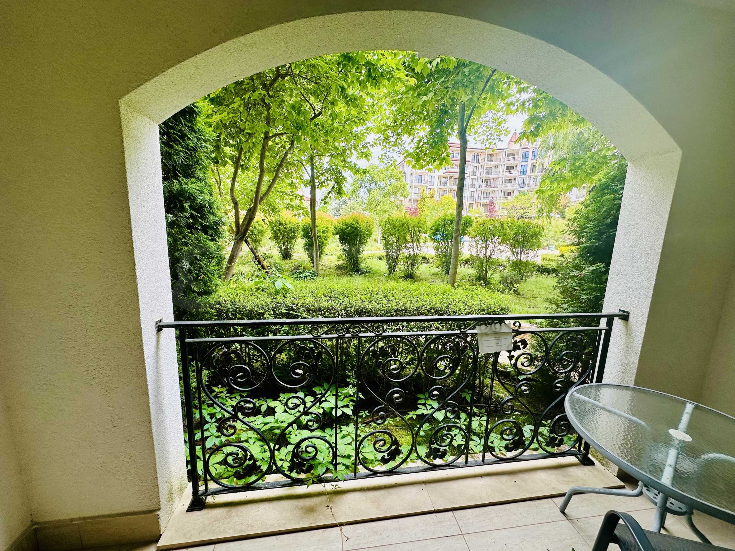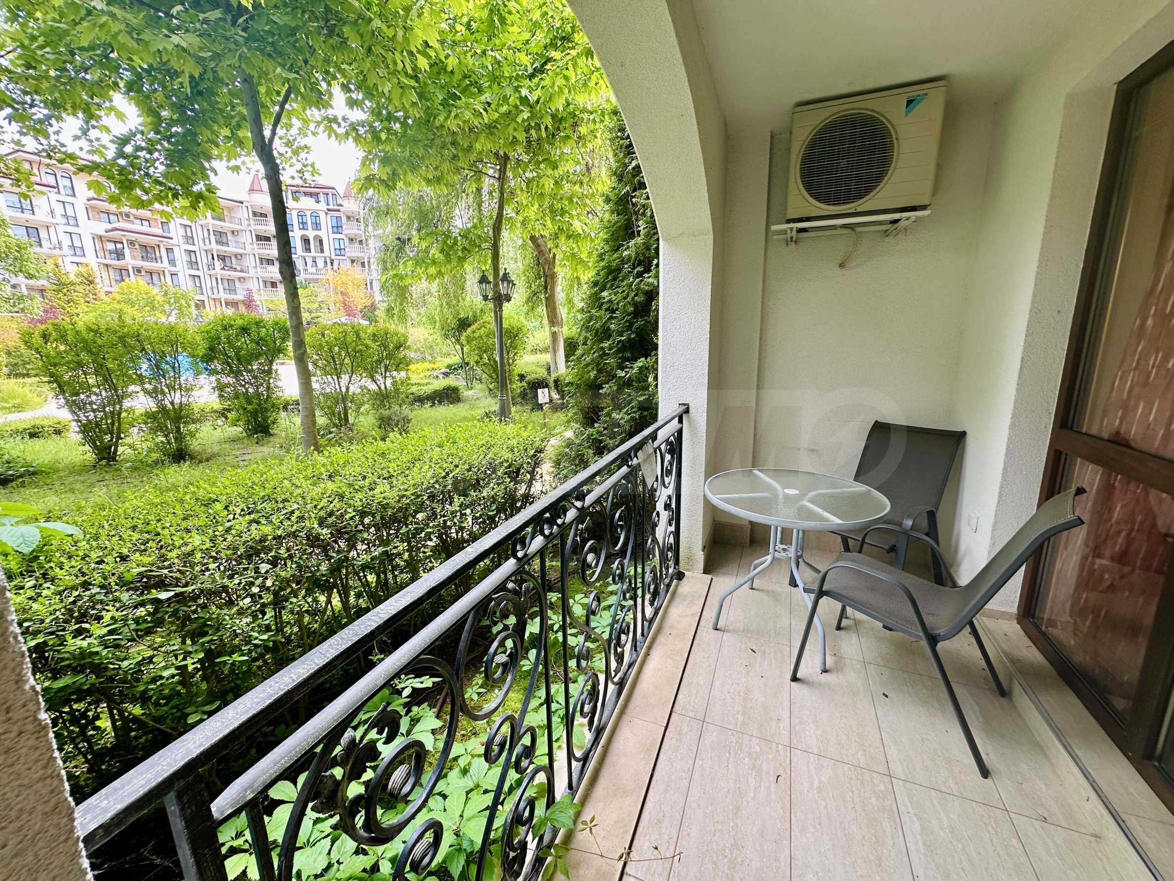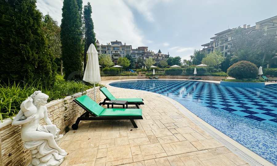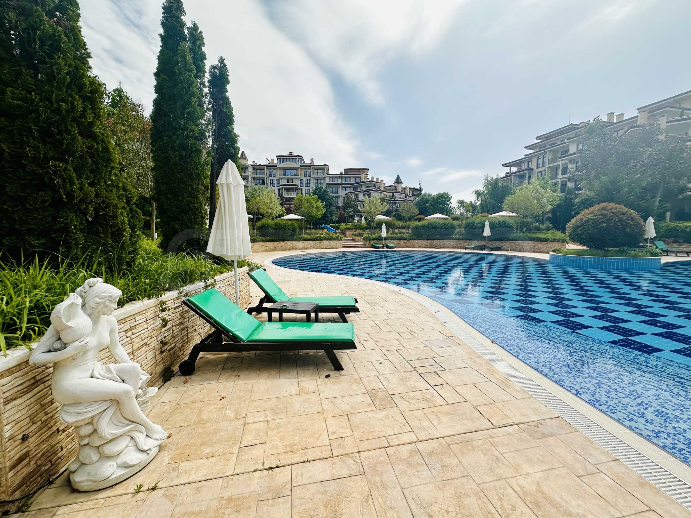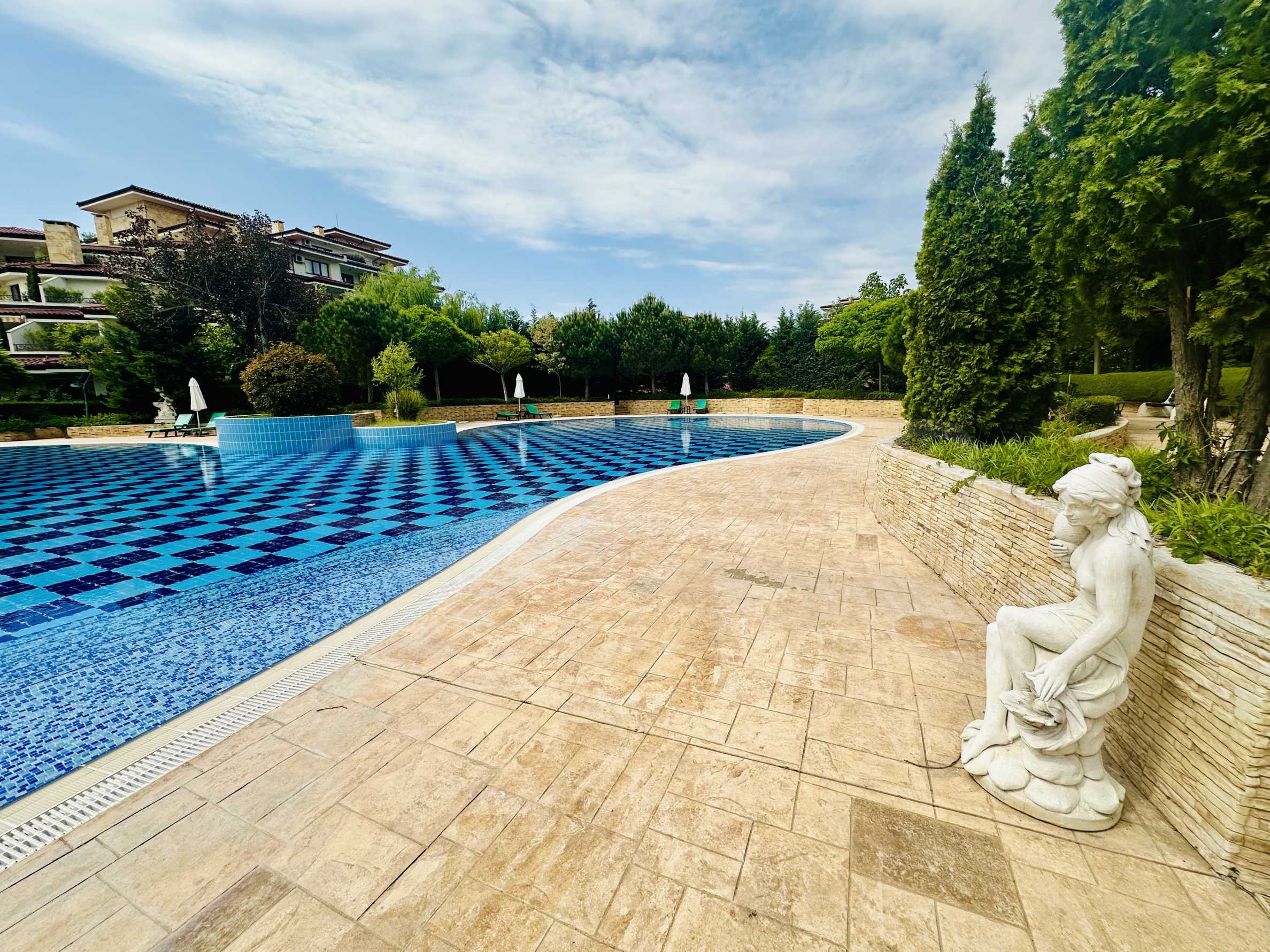 Имотът е с обща площ от 42,29 кв.м, разположен на партерен етаж с гледка към богато озеленения двор и басейна. Предлага се напълно обзаведен и оборудван, готов за нанасяне. Подходящ е както за лично ползване, така и за инвестиция.