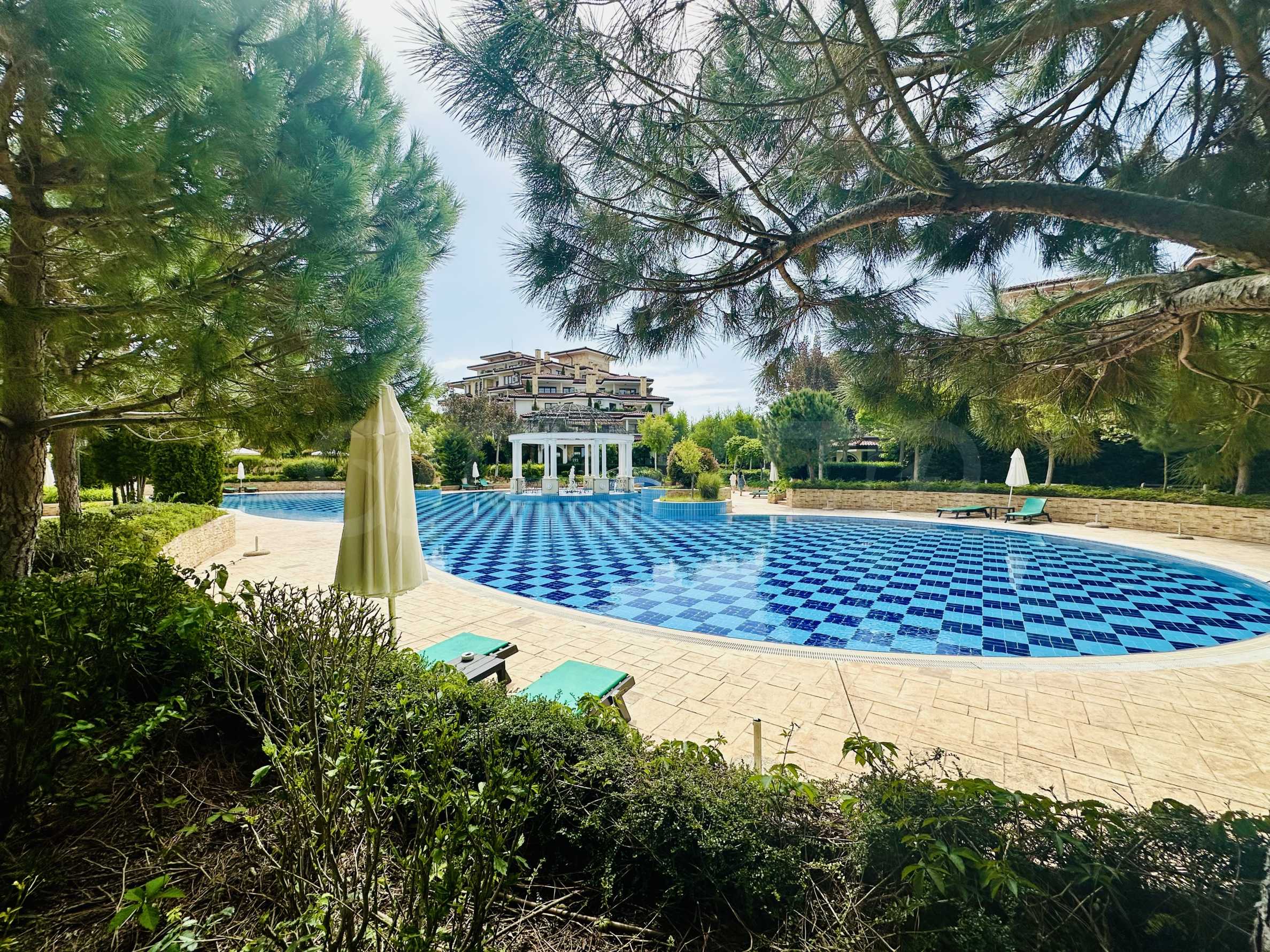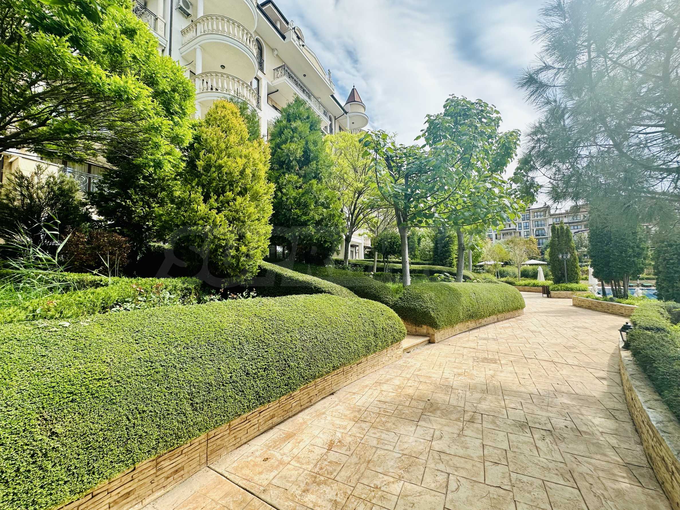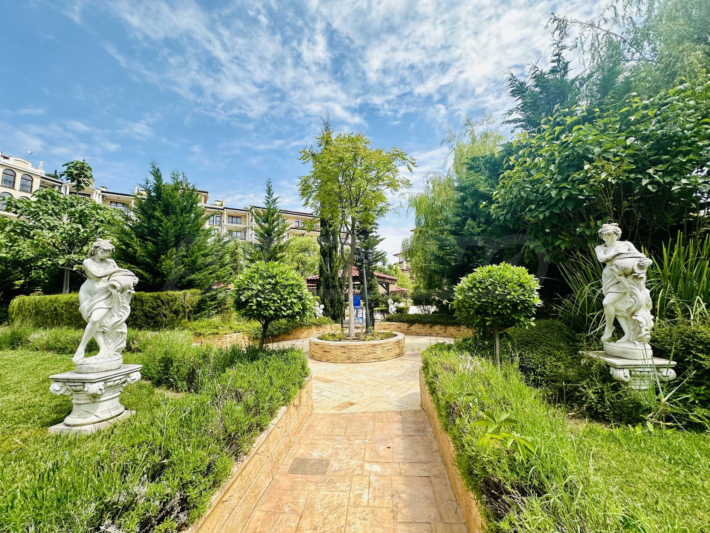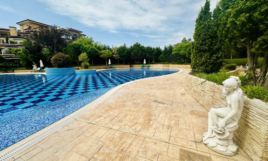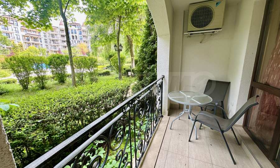 Имотът е с обща площ от 42,29 кв.м, разположен на партерен етаж с гледка към богато озеленения двор и басейна. Предлага се напълно обзаведен и оборудван, готов за нанасяне. Подходящ е както за лично ползване, така и за инвестиция.