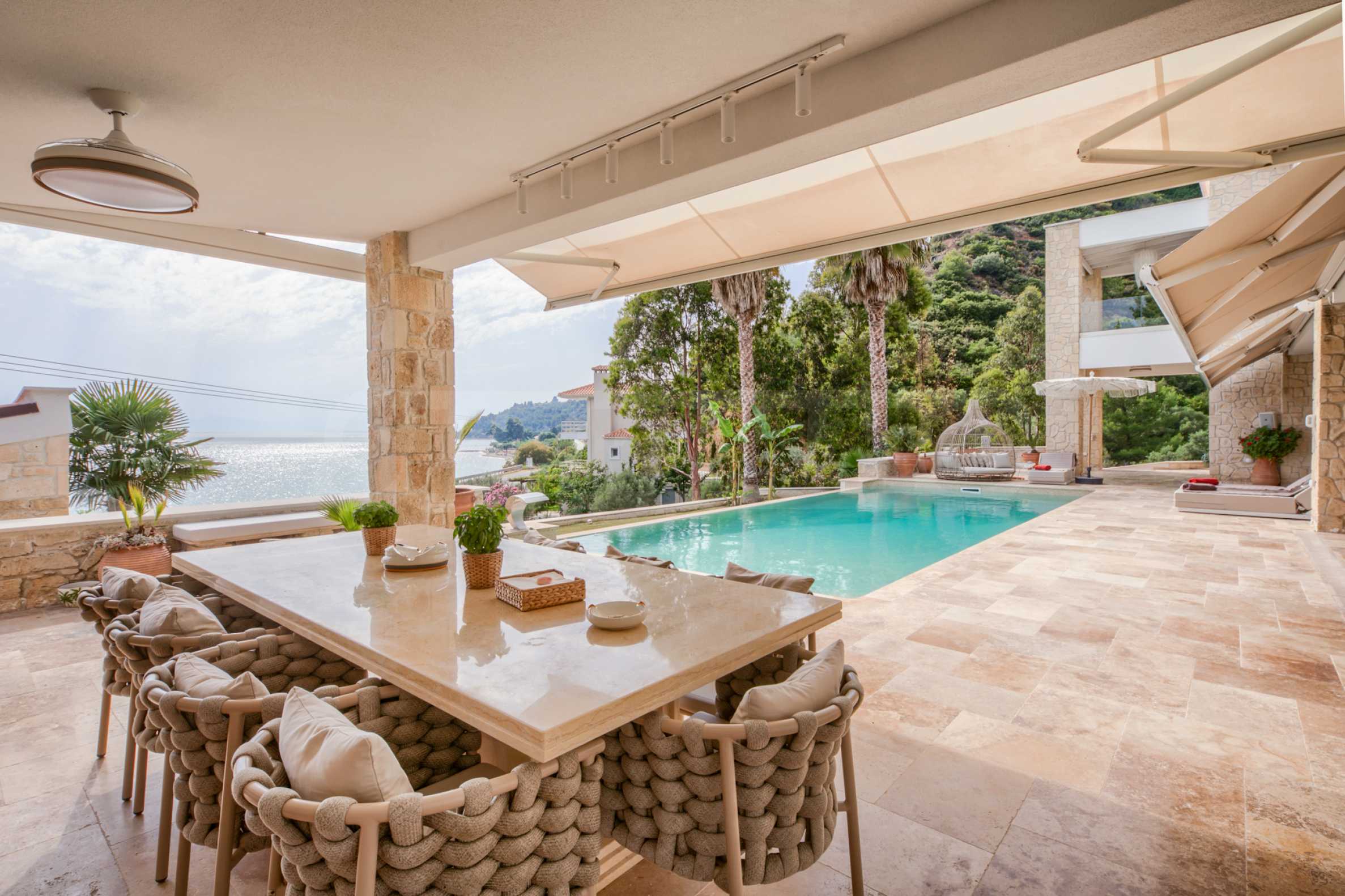 Представяме Ви този зашеметяващ имот, абсолютната дефиниция за лукс величествено разположен над тюркоазените води на Егейско море.