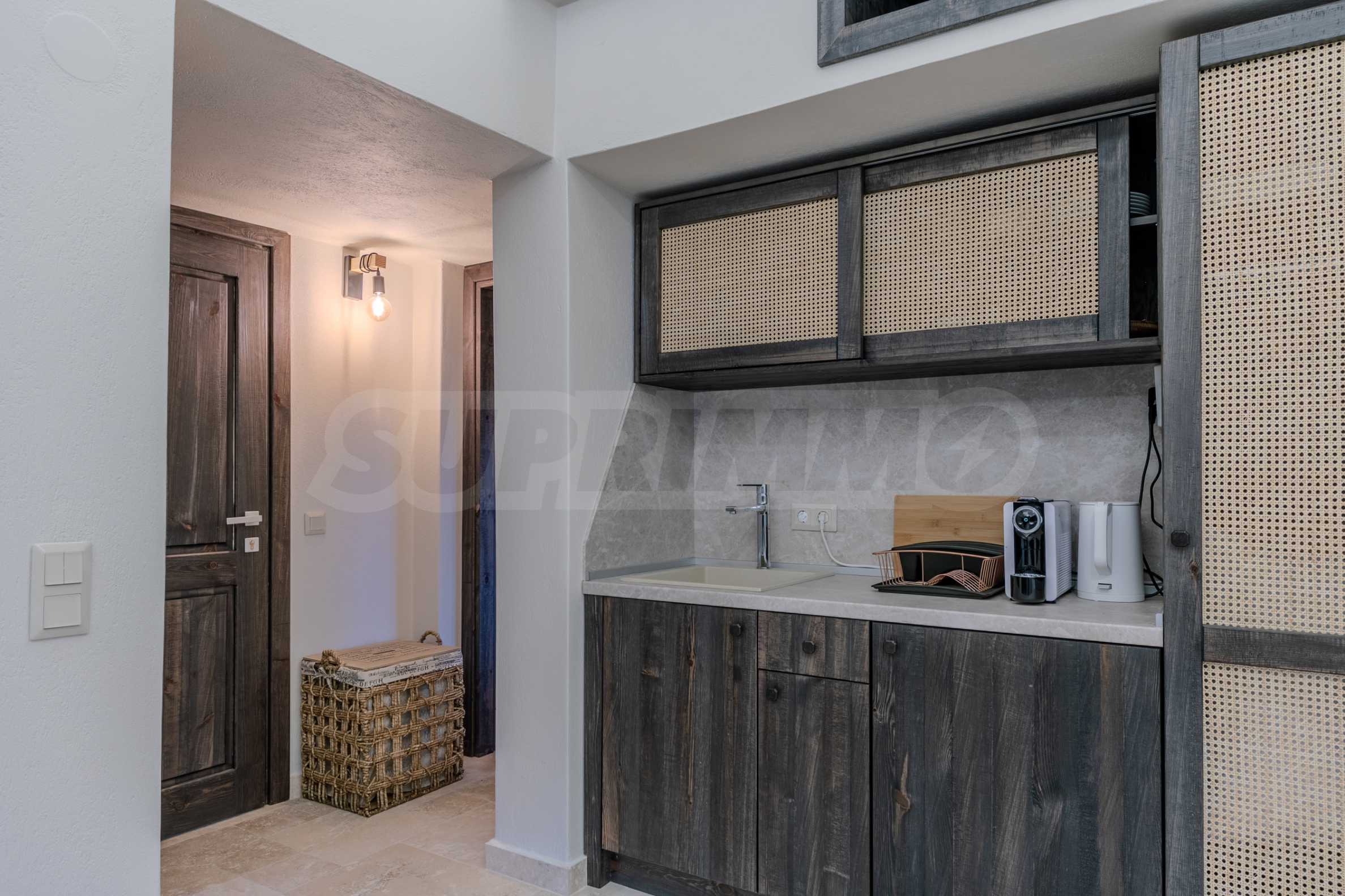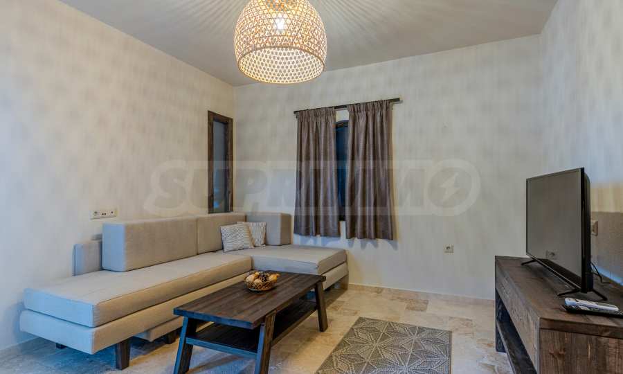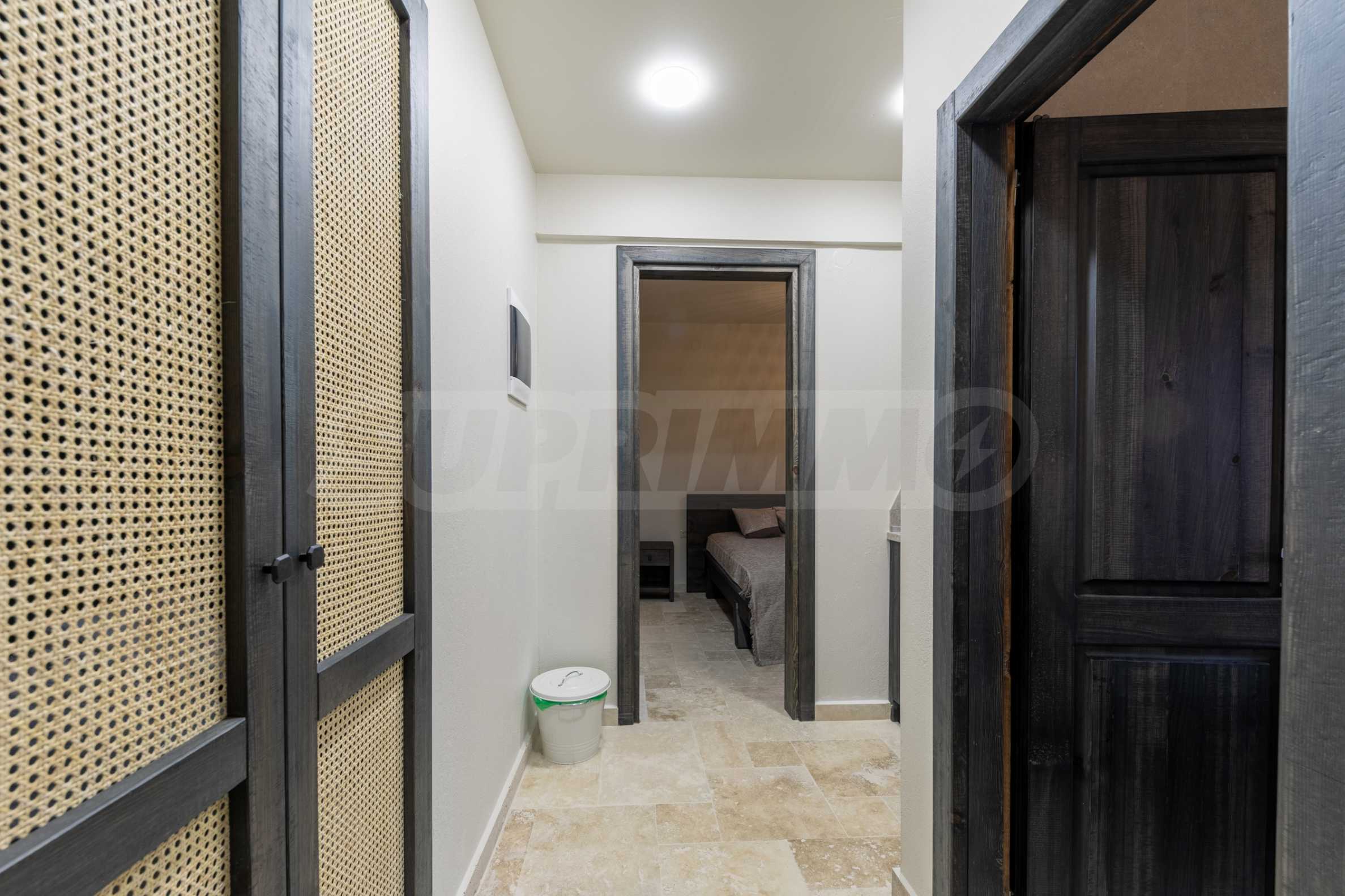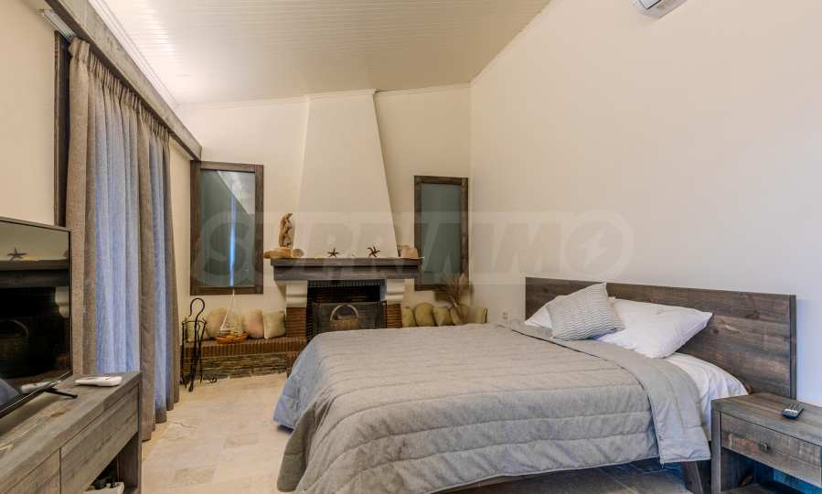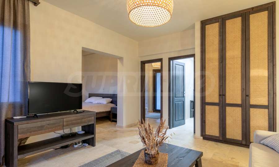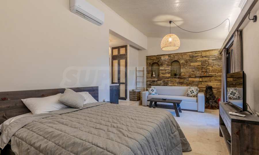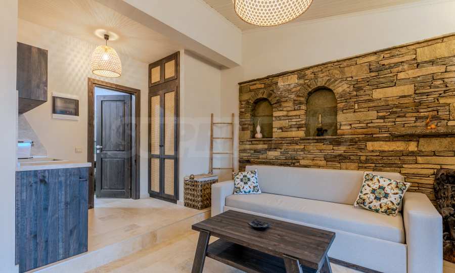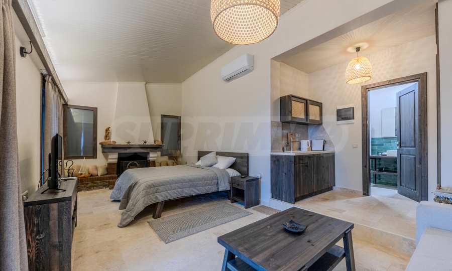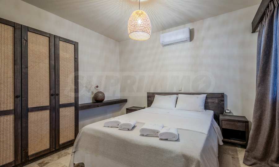 Постройката от 300 кв.м е функционално разделена на 5 самостоятелни апартамента, всеки един разполага със собствена дневна, спалня, баня с тоалетна, също и с кухнески бокс, паралено има възможност за обенияване на апартаментите на 1-во ниво.