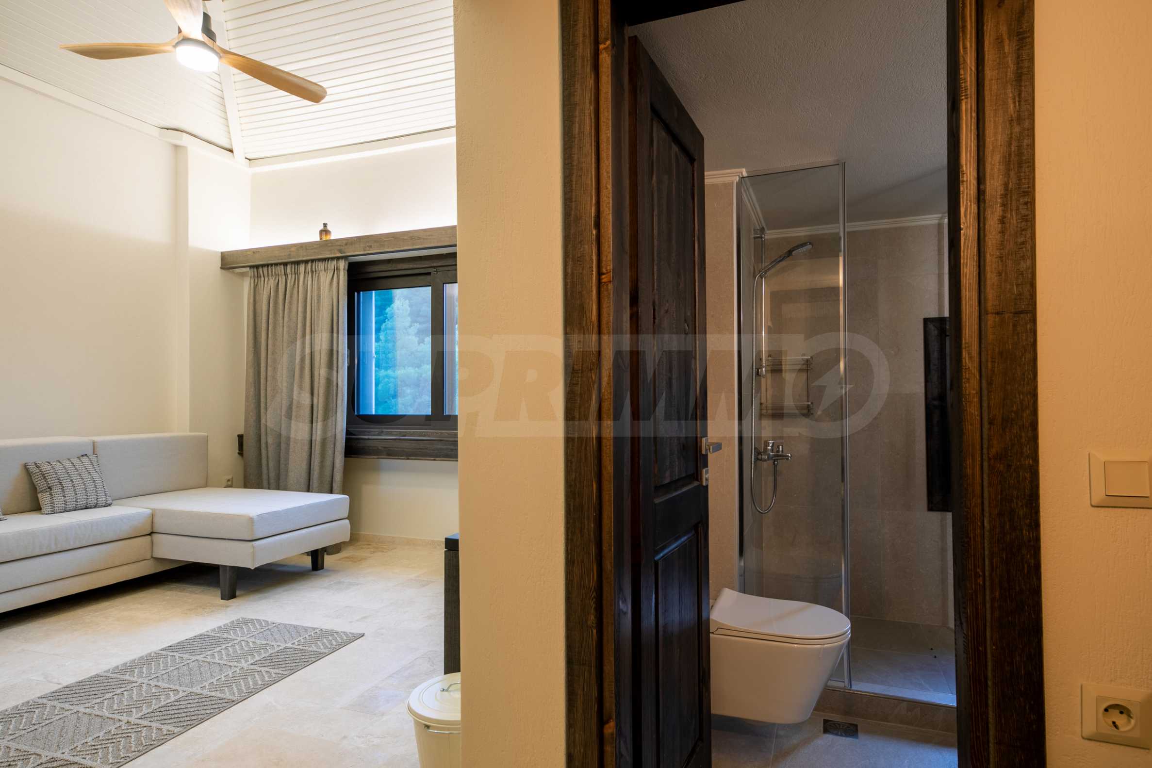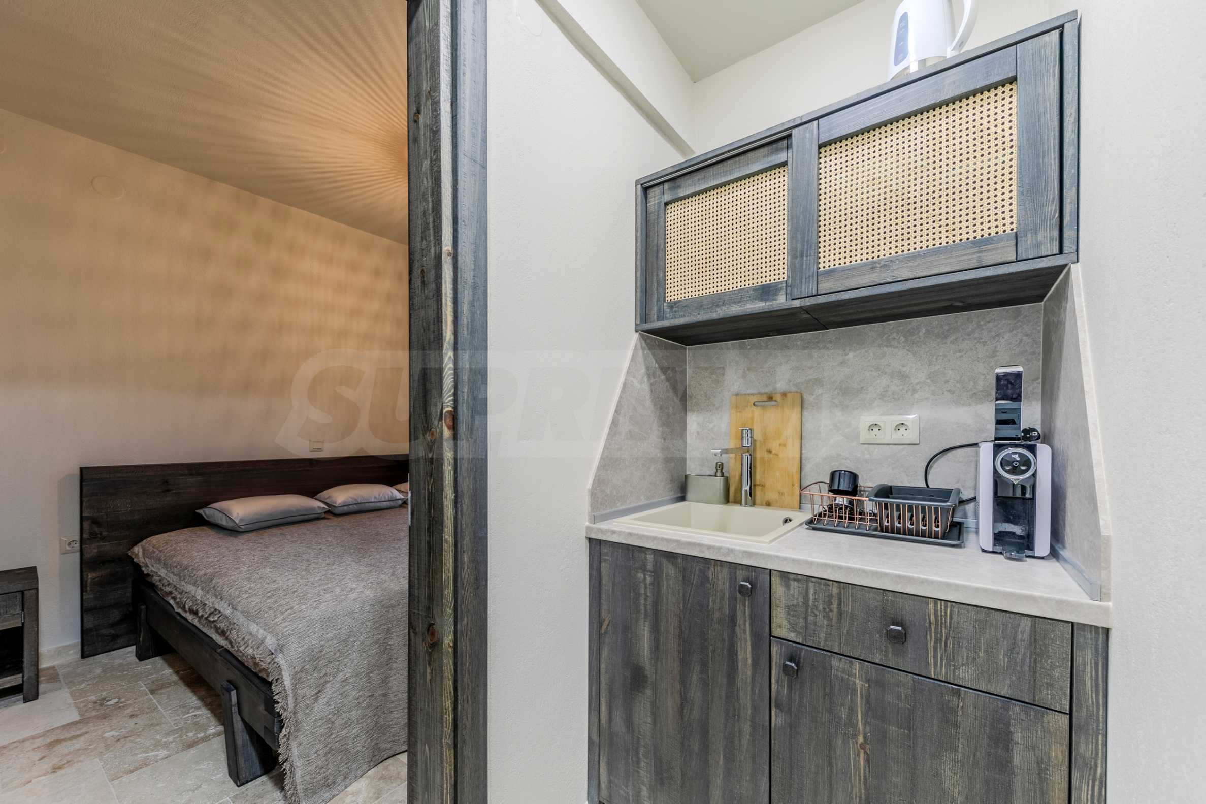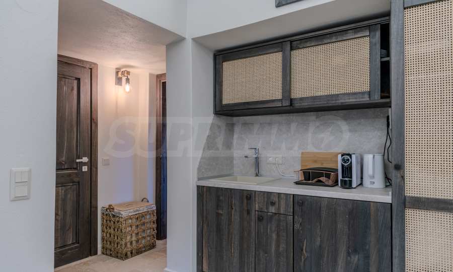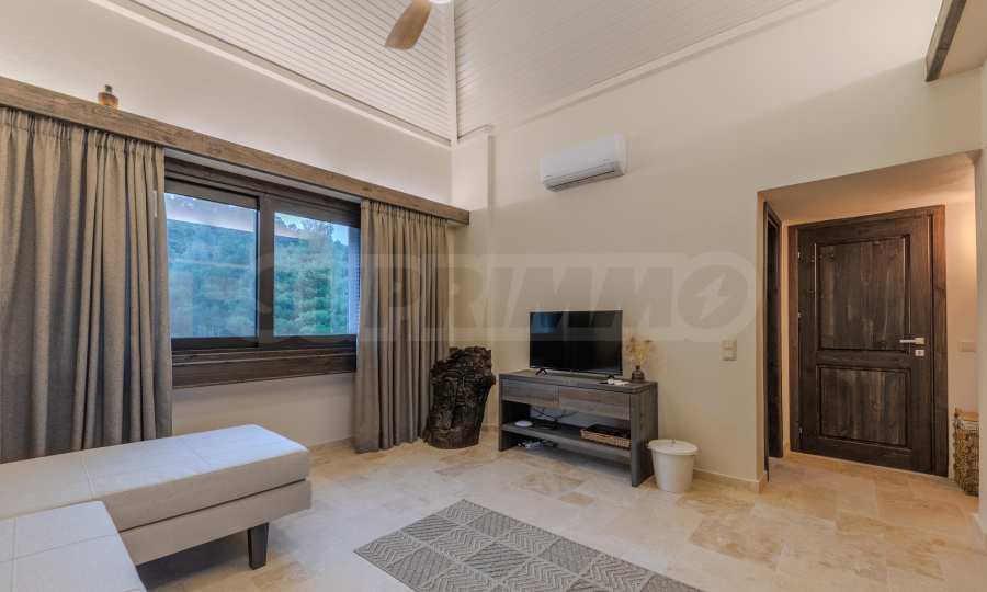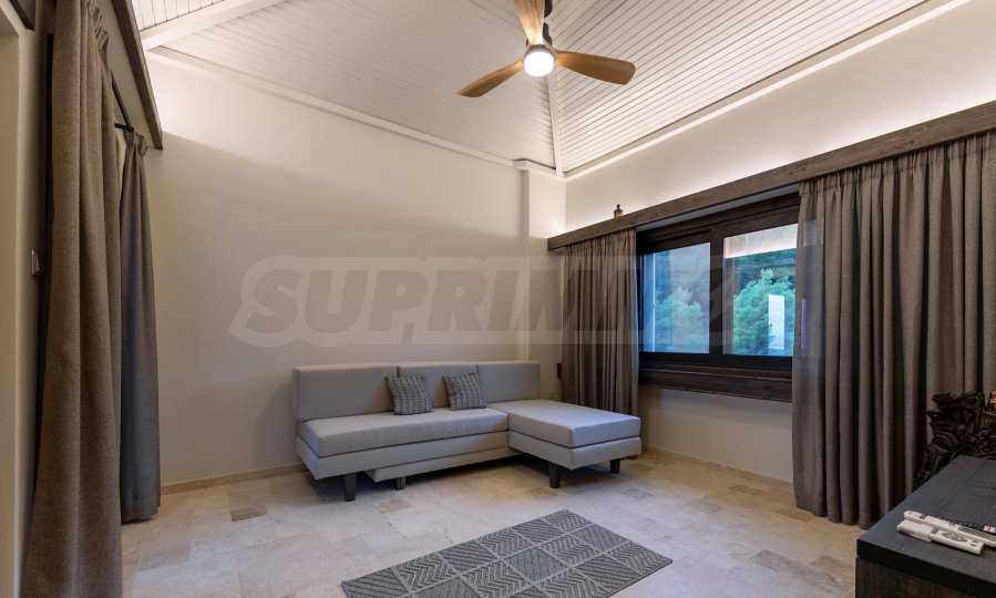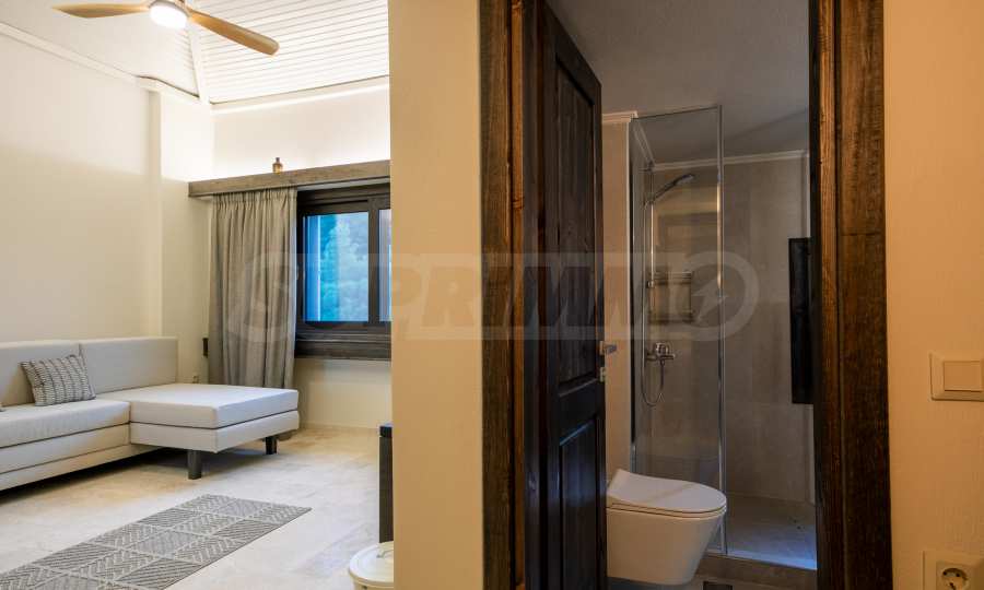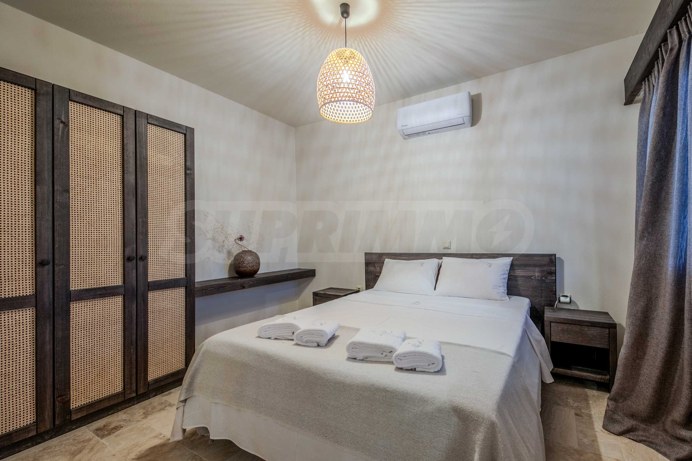 Постройката от 300 кв.м е функционално разделена на 5 самостоятелни апартамента, всеки един разполага със собствена дневна, спалня, баня с тоалетна, също и с кухнески бокс, паралено има възможност за обенияване на апартаментите на 1-во ниво.