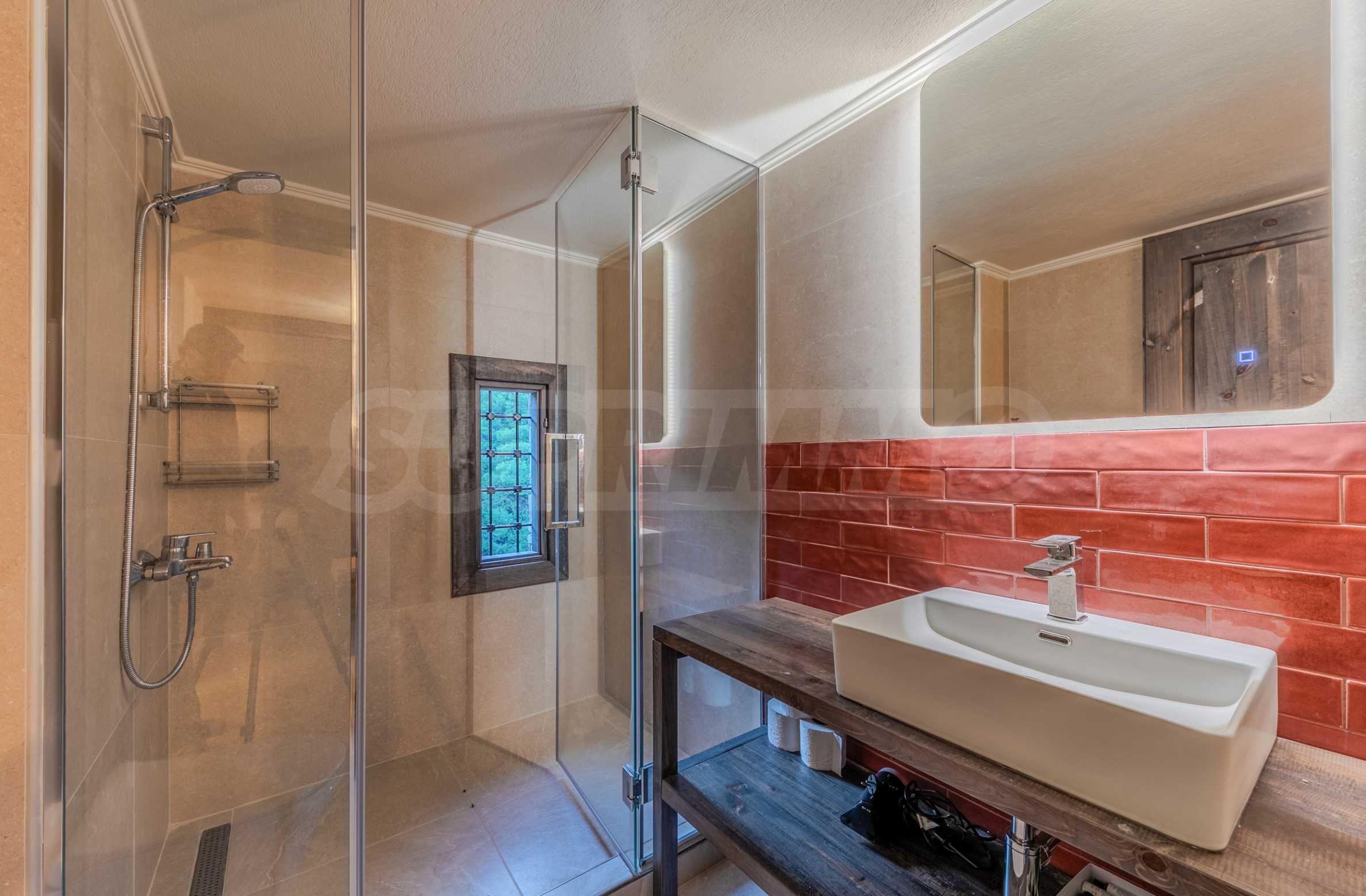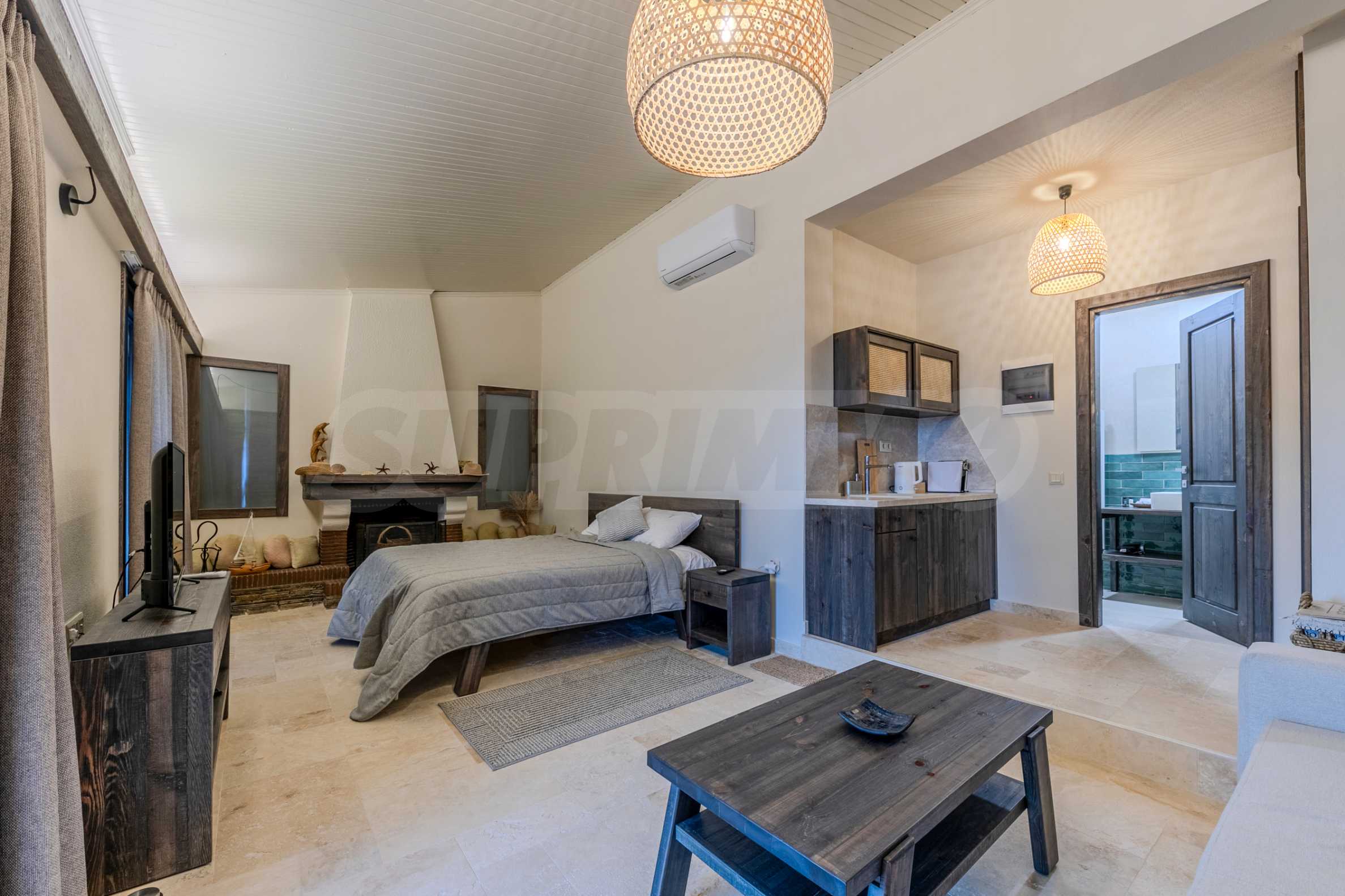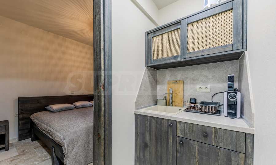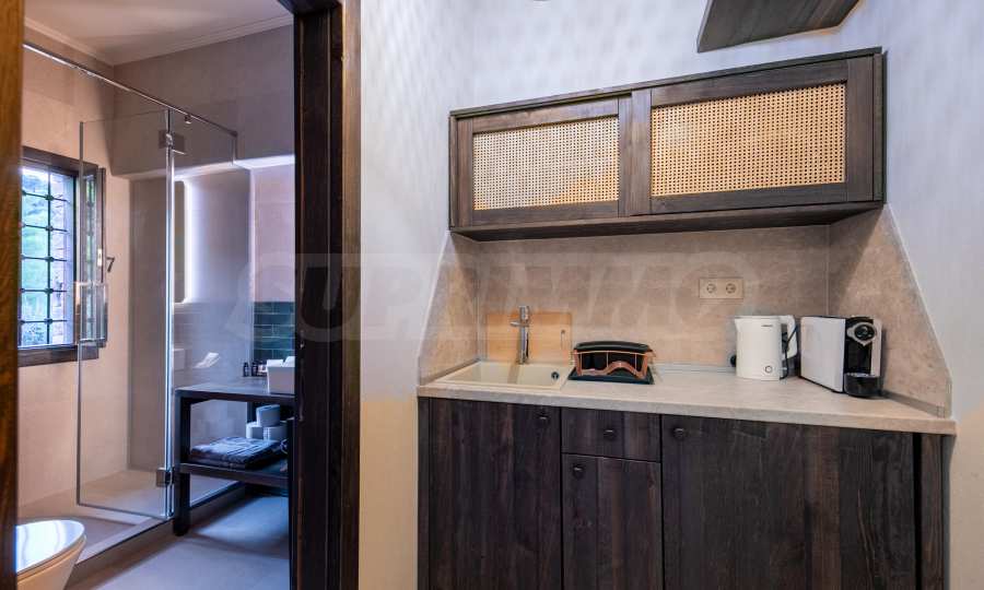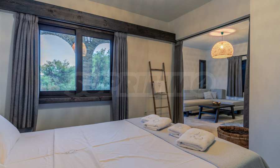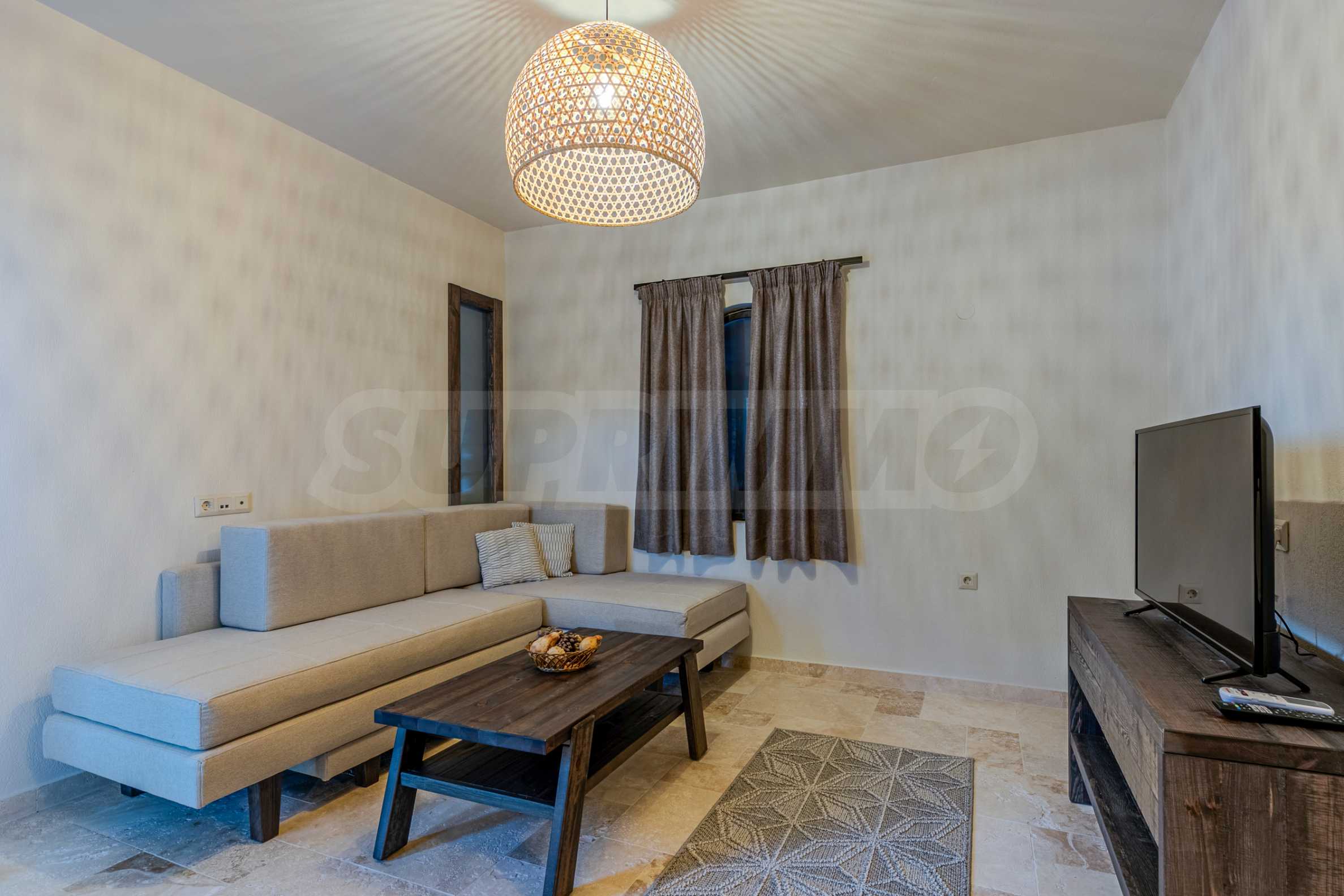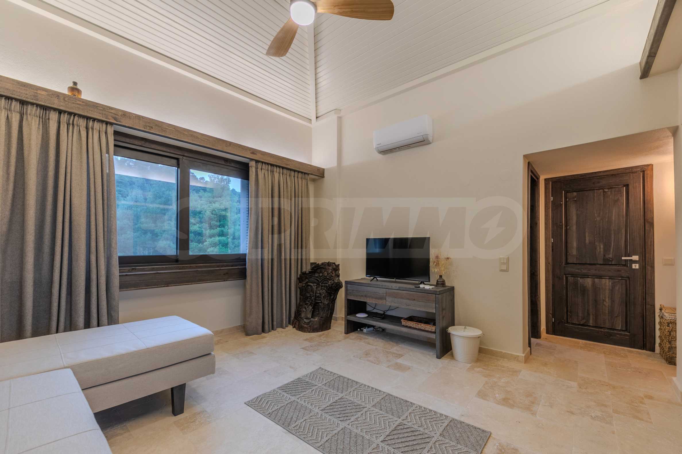 Постройката от 300 кв.м е функционално разделена на 5 самостоятелни апартамента, всеки един разполага със собствена дневна, спалня, баня с тоалетна, също и с кухнески бокс, паралено има възможност за обенияване на апартаментите на 1-во ниво.