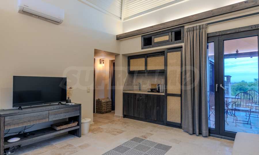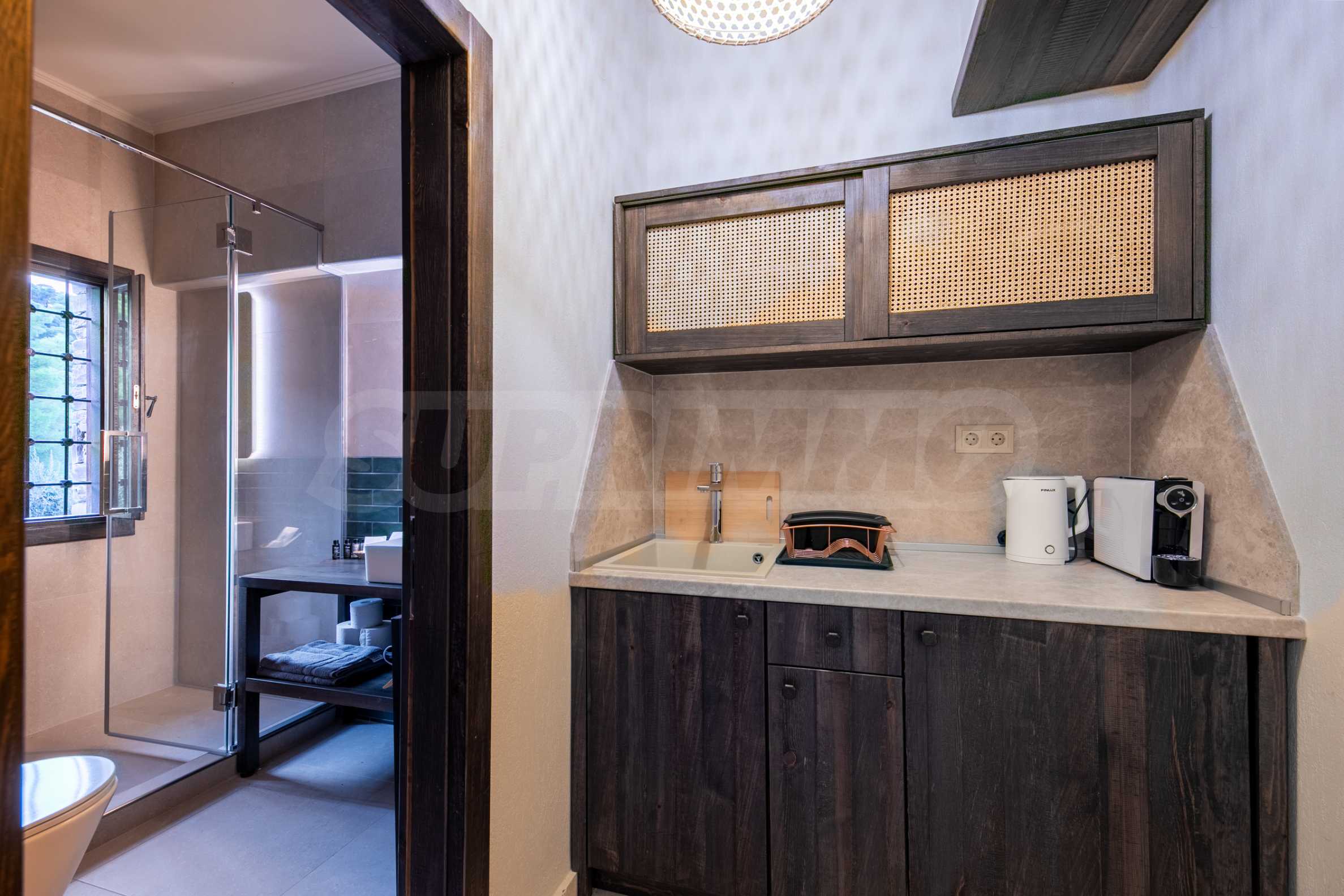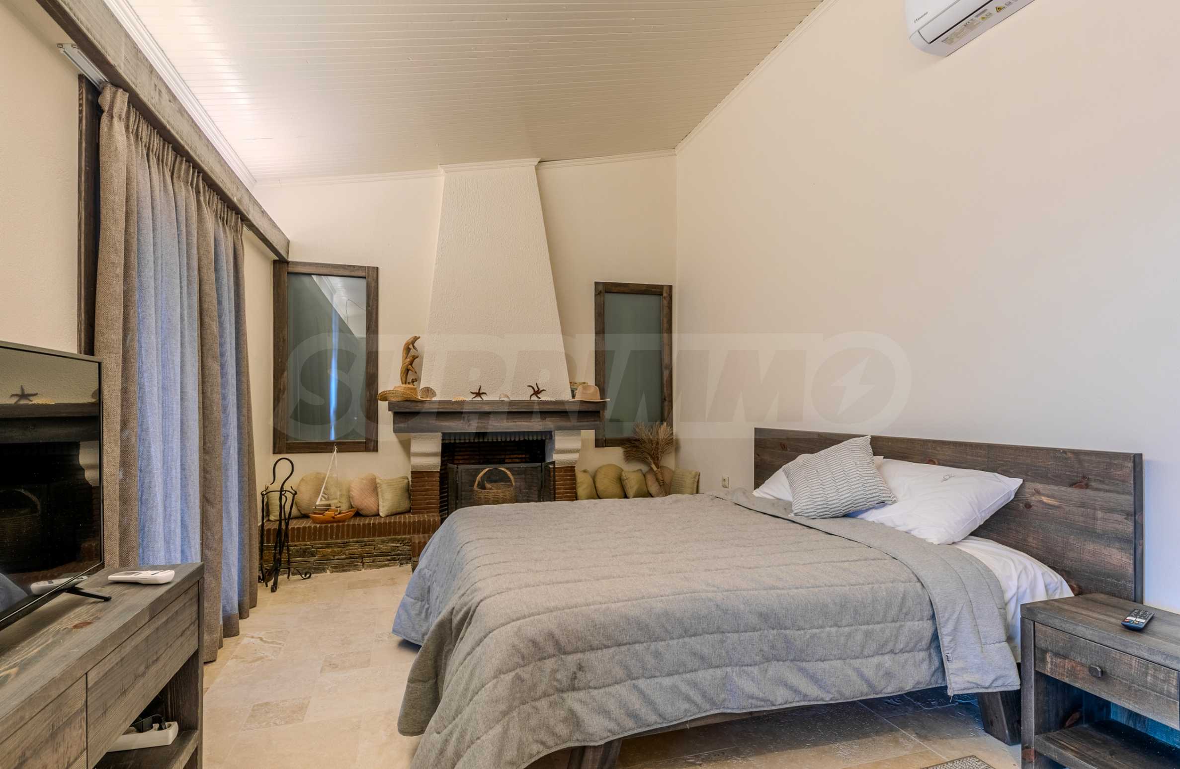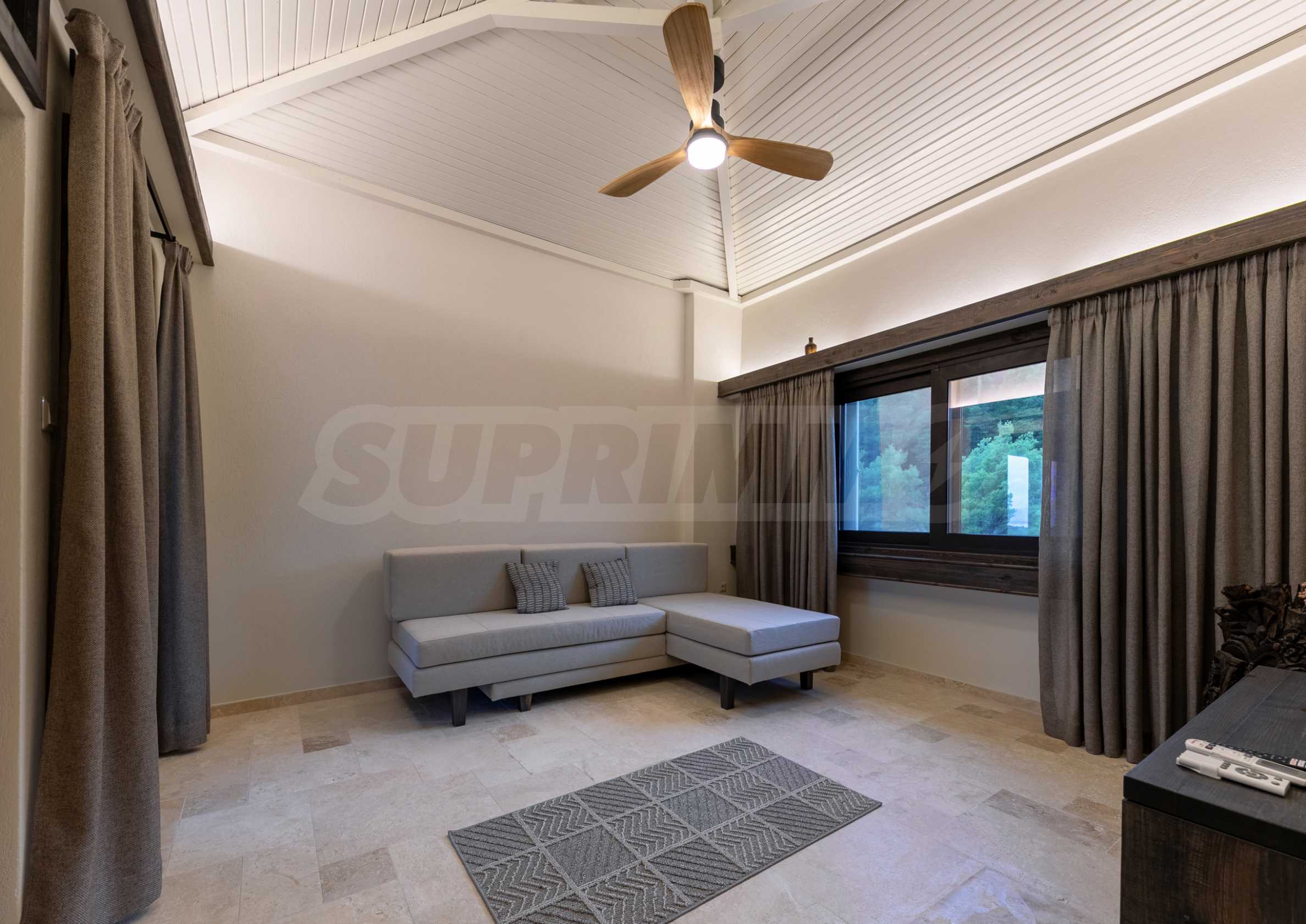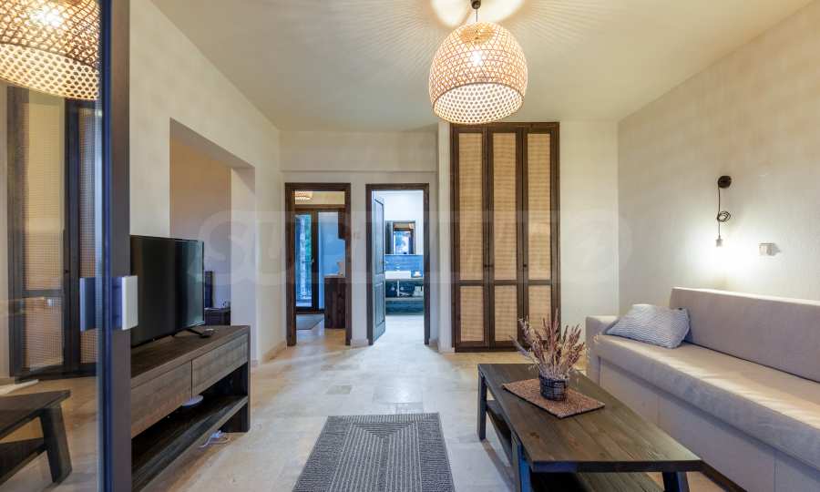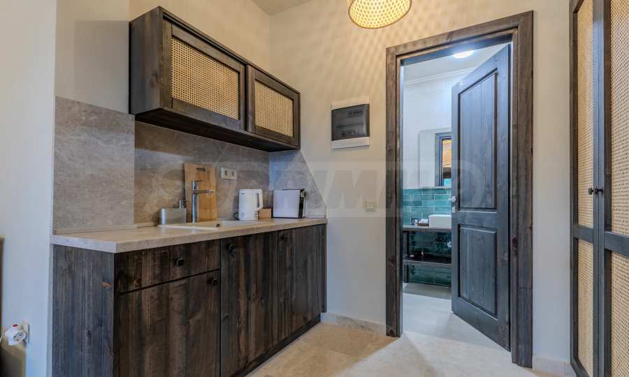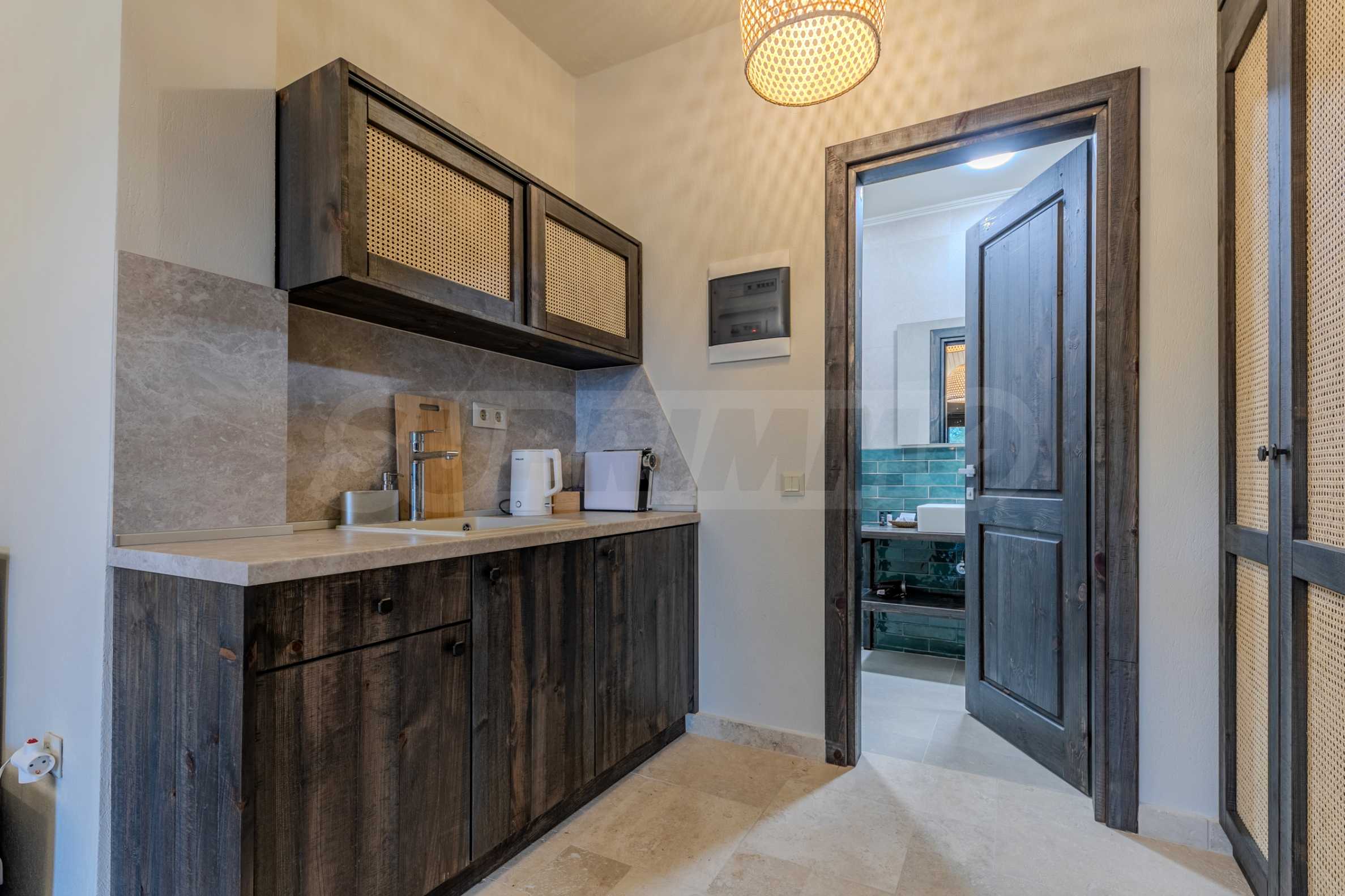 Постройката от 300 кв.м е функционално разделена на 5 самостоятелни апартамента, всеки един разполага със собствена дневна, спалня, баня с тоалетна, също и с кухнески бокс, паралено има възможност за обенияване на апартаментите на 1-во ниво.