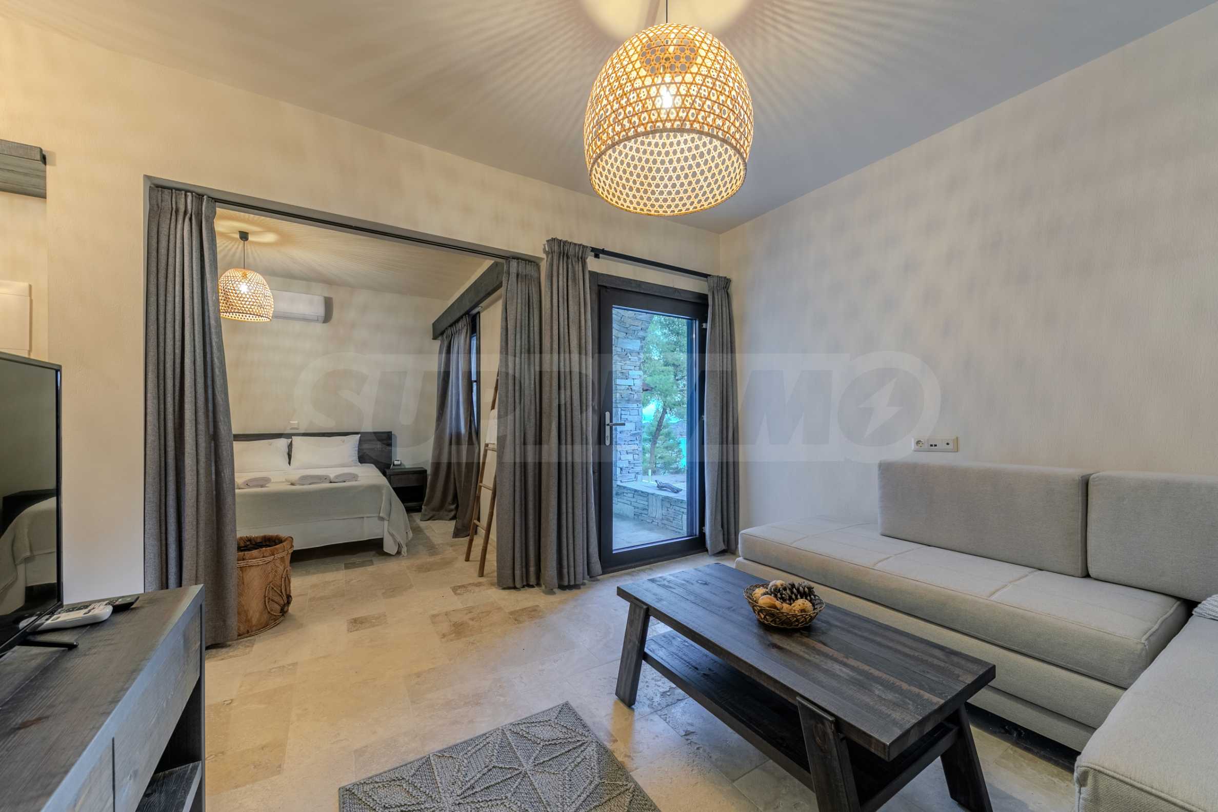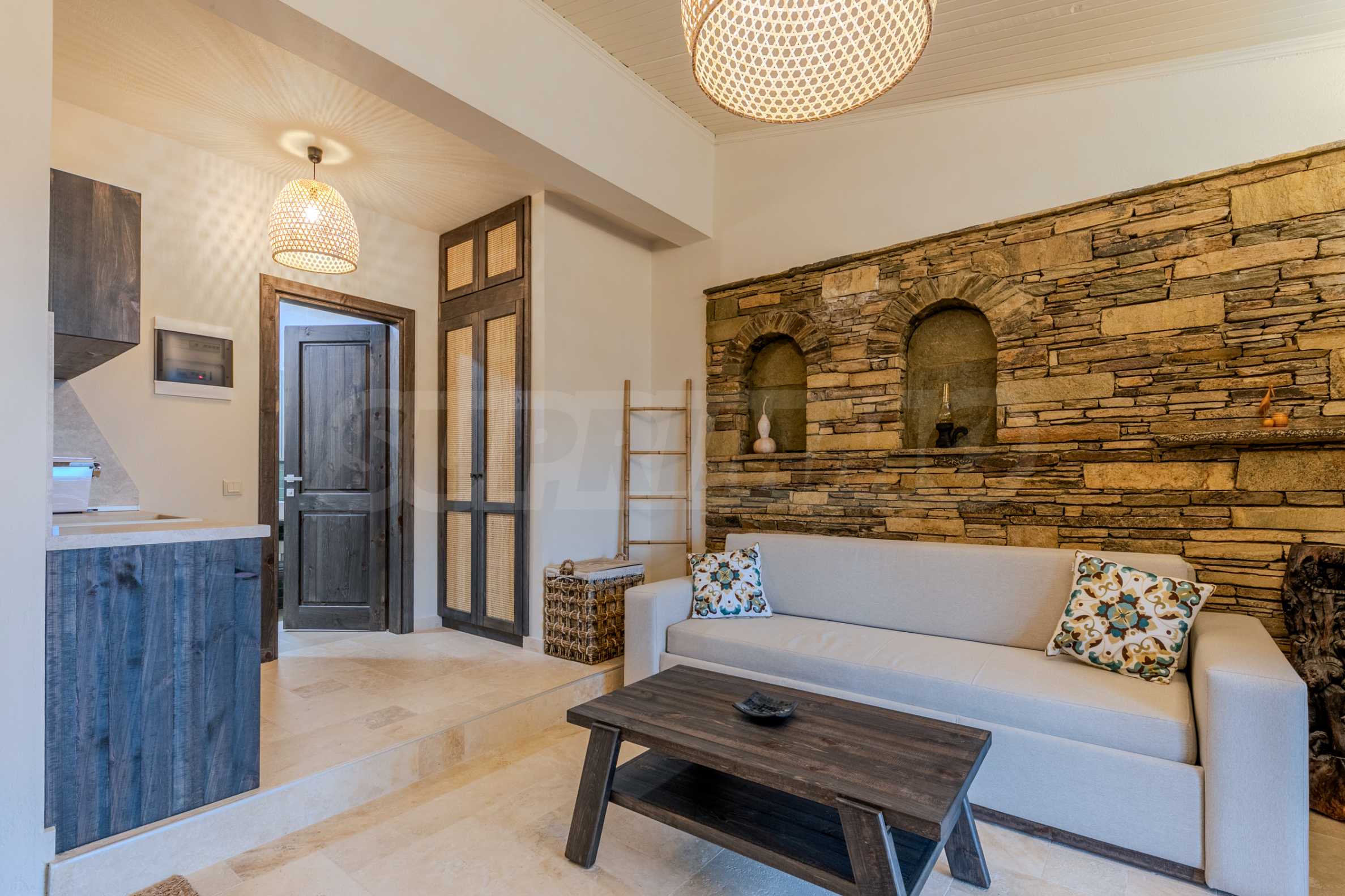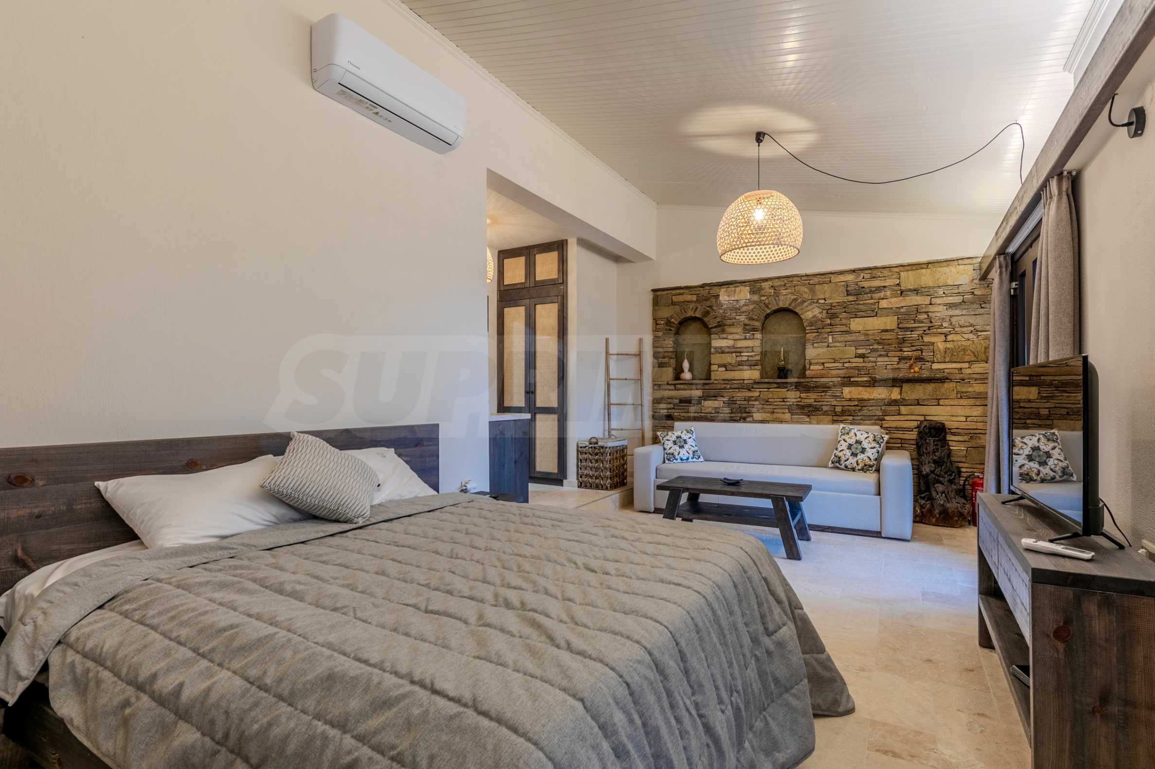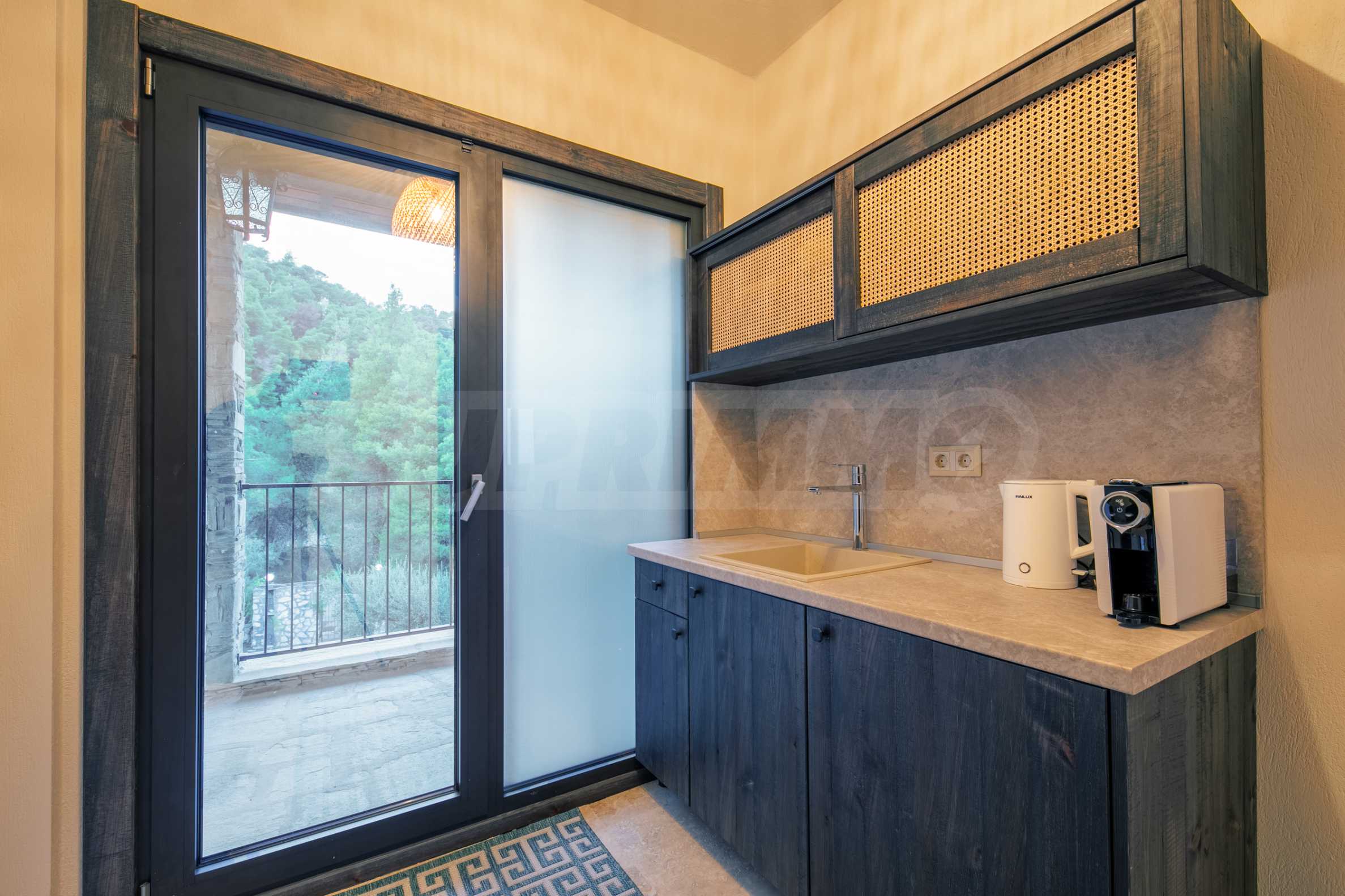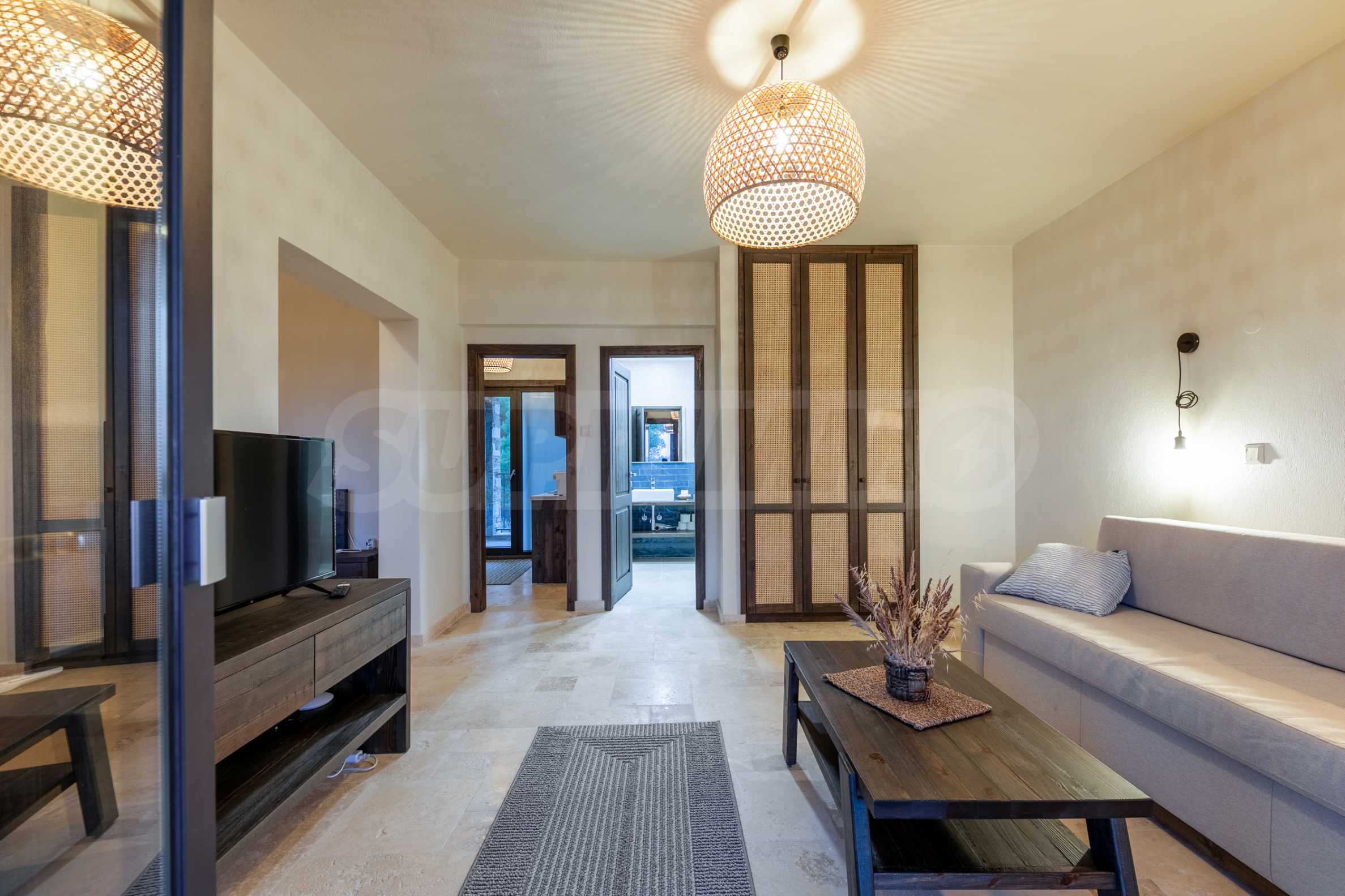 Постройката от 300 кв.м е функционално разделена на 5 самостоятелни апартамента, всеки един разполага със собствена дневна, спалня, баня с тоалетна, също и с кухнески бокс, паралено има възможност за обенияване на апартаментите на 1-во ниво.