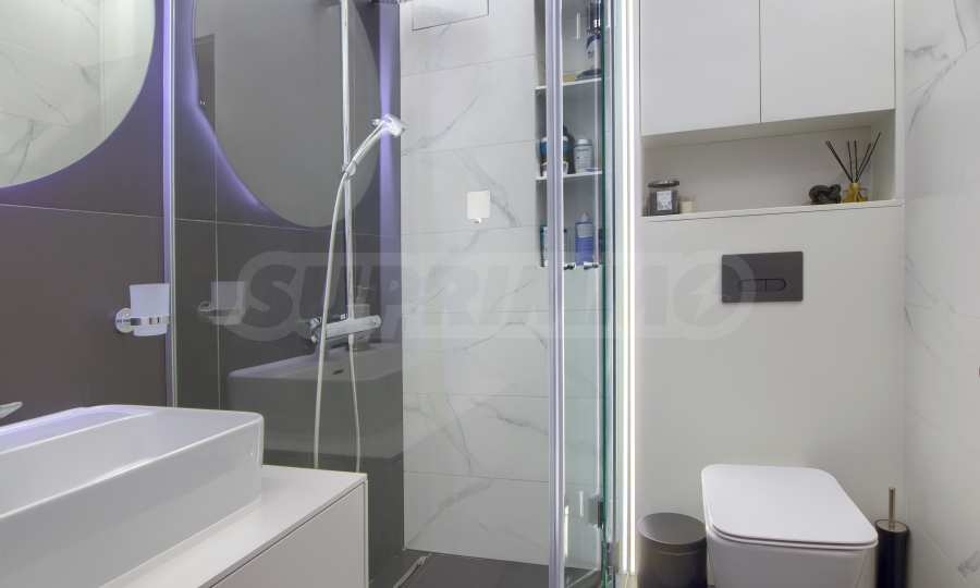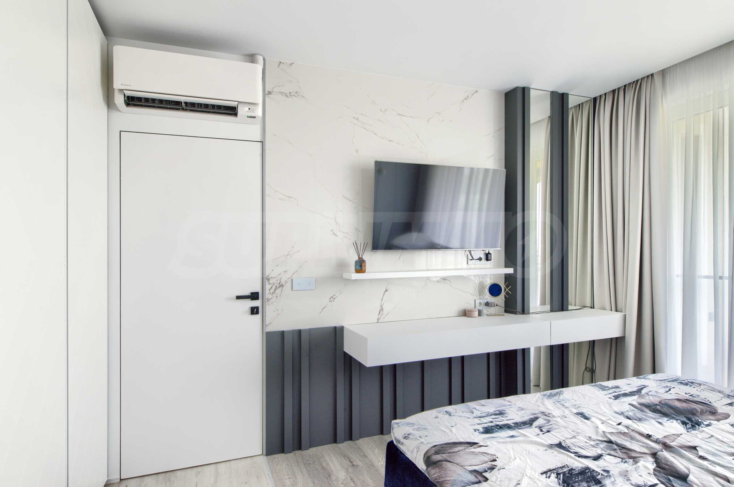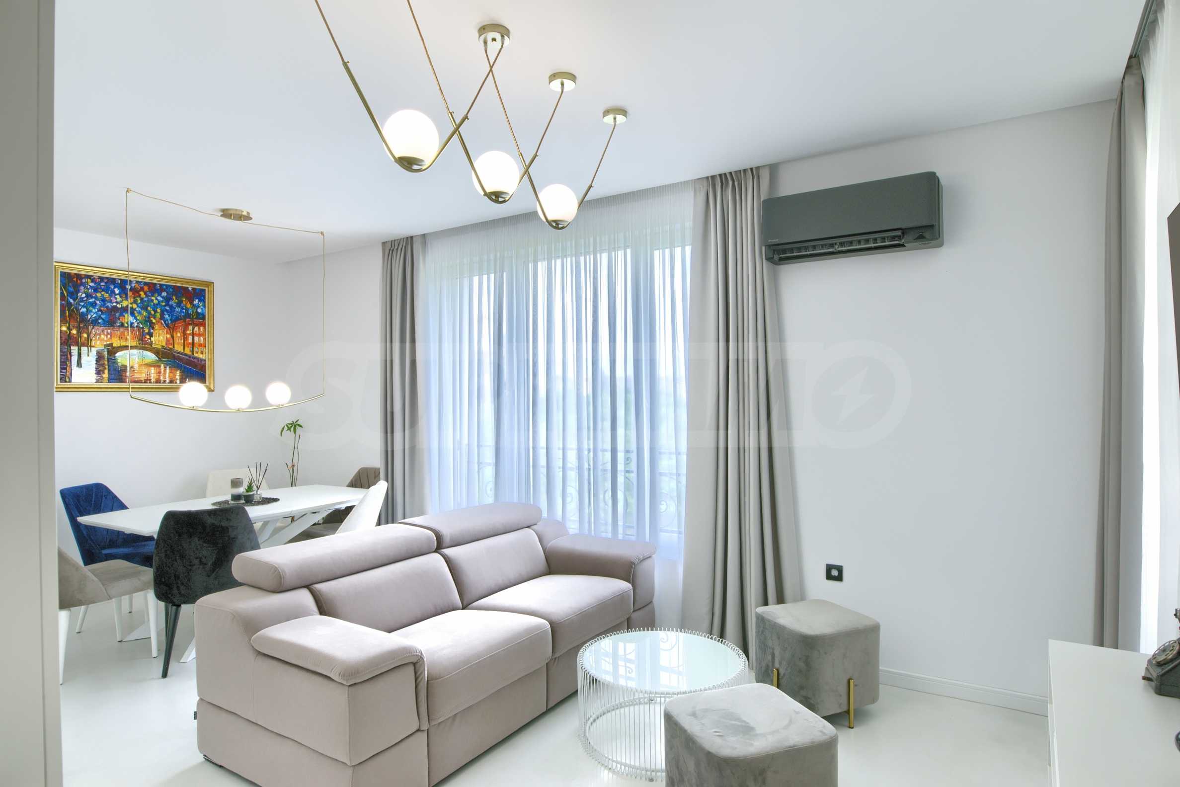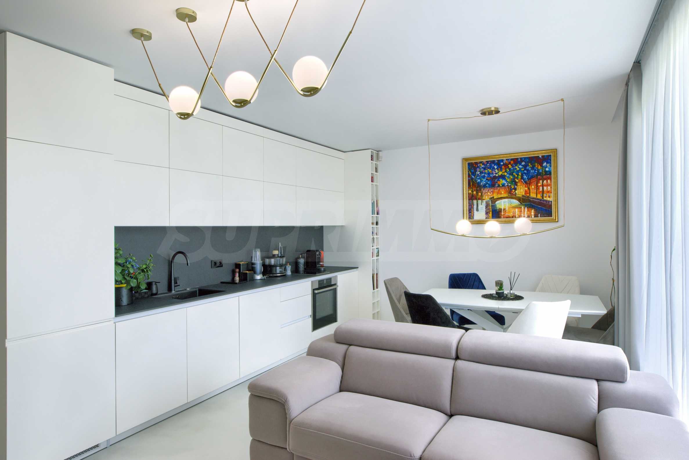 Апартаментът е напълно обзаведен и оборудван с висок клас уреди, готов за нанасяне.